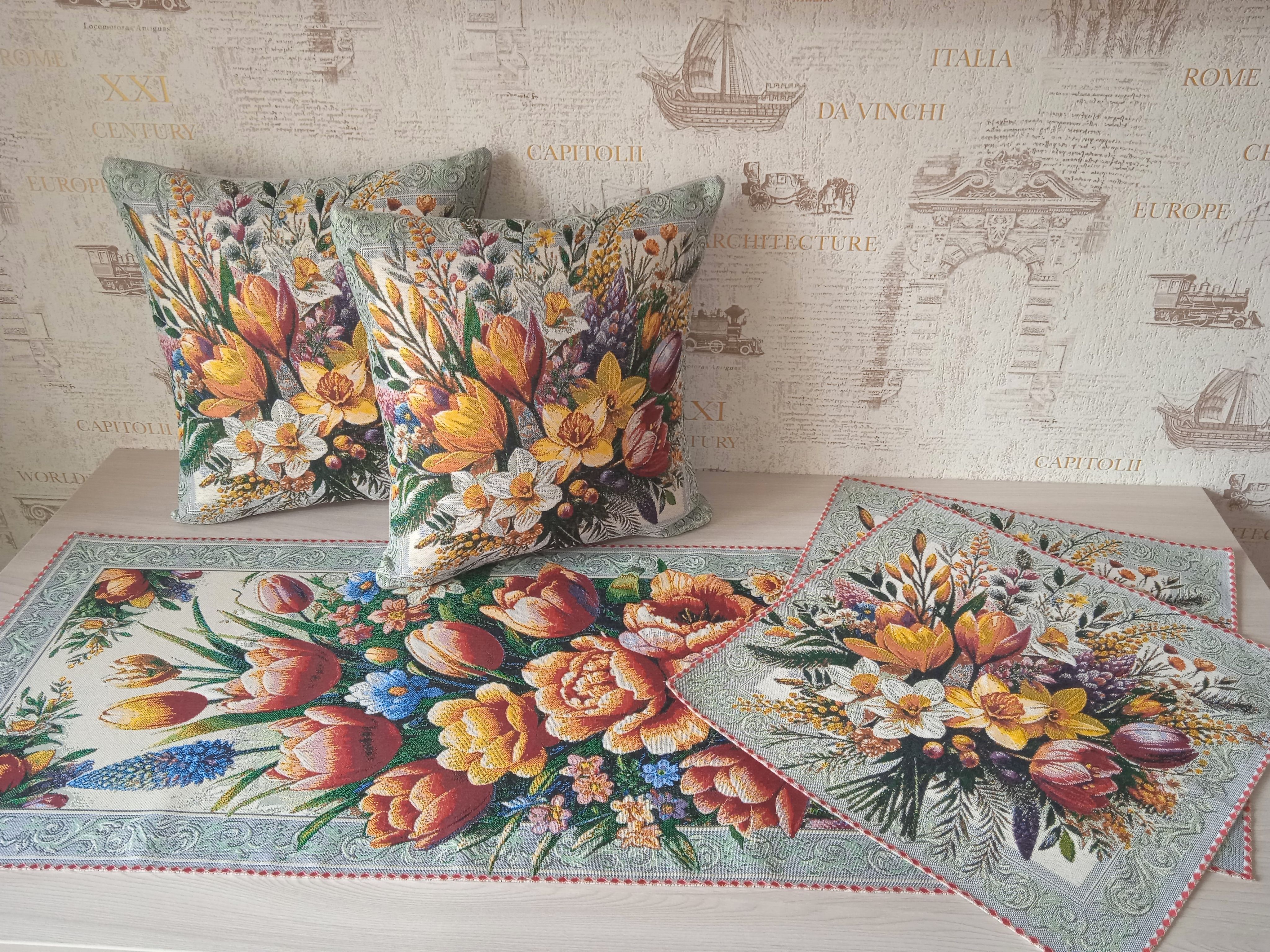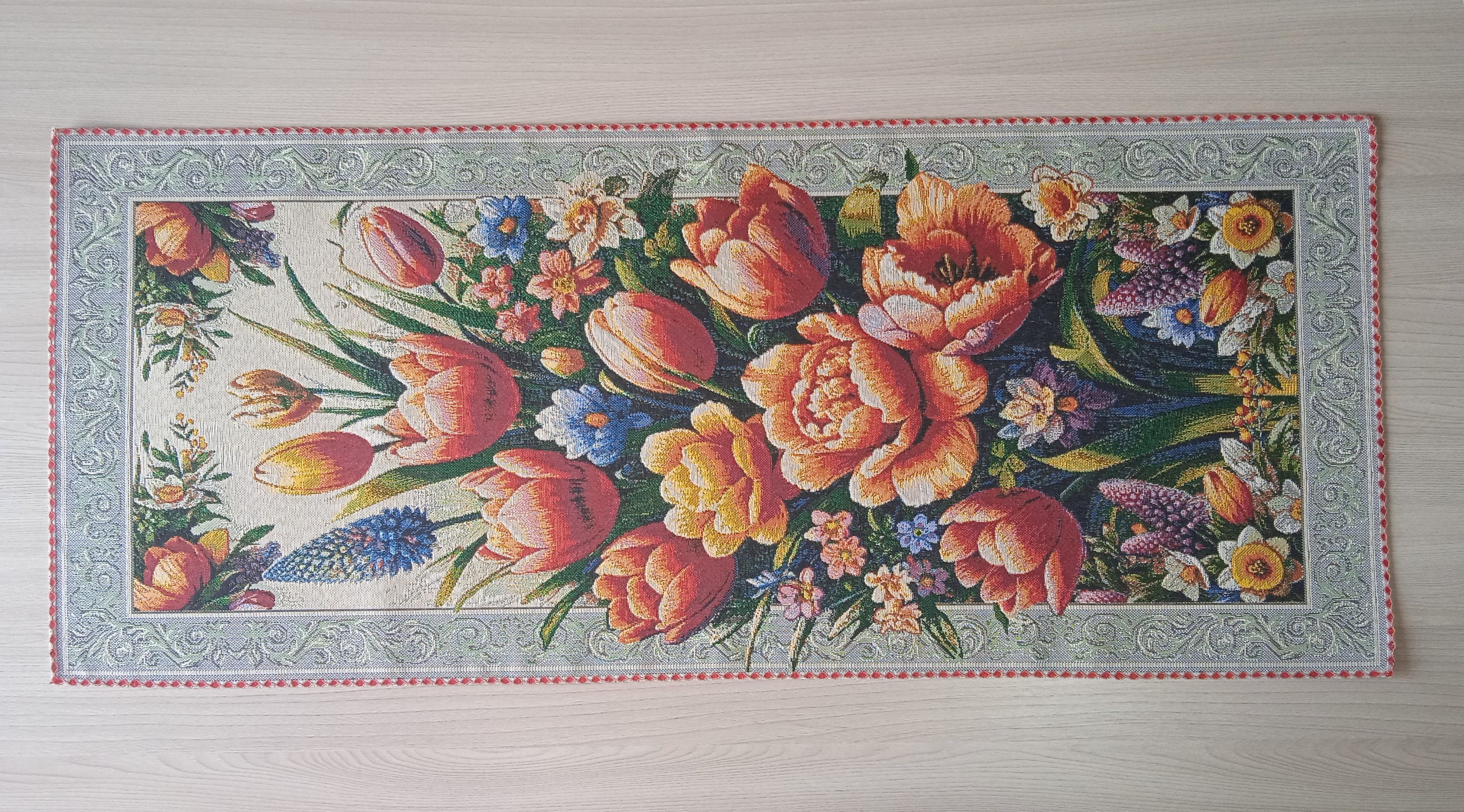 Декоративные гобеленовые дорожки это приятное и полезное украшение для сервировки стола. Размер, цвет и рисунок дорожки можно выбрать по желанию покупателя. Гобеленовые декоративные дорожки не только модный, красивый предмет интерьера но и полезны и практичны в использовании. Они помогут предохранить поверхность мебели от повреждения. Гобеленовые столешницы устойчивы к загрязнению, хорошо стираются при температуре 30 градусов на дают усадки не линяют. Изделия из гобеленовой ткани имеют длительный срок службы и сохраняют первоначальный вид и форму.