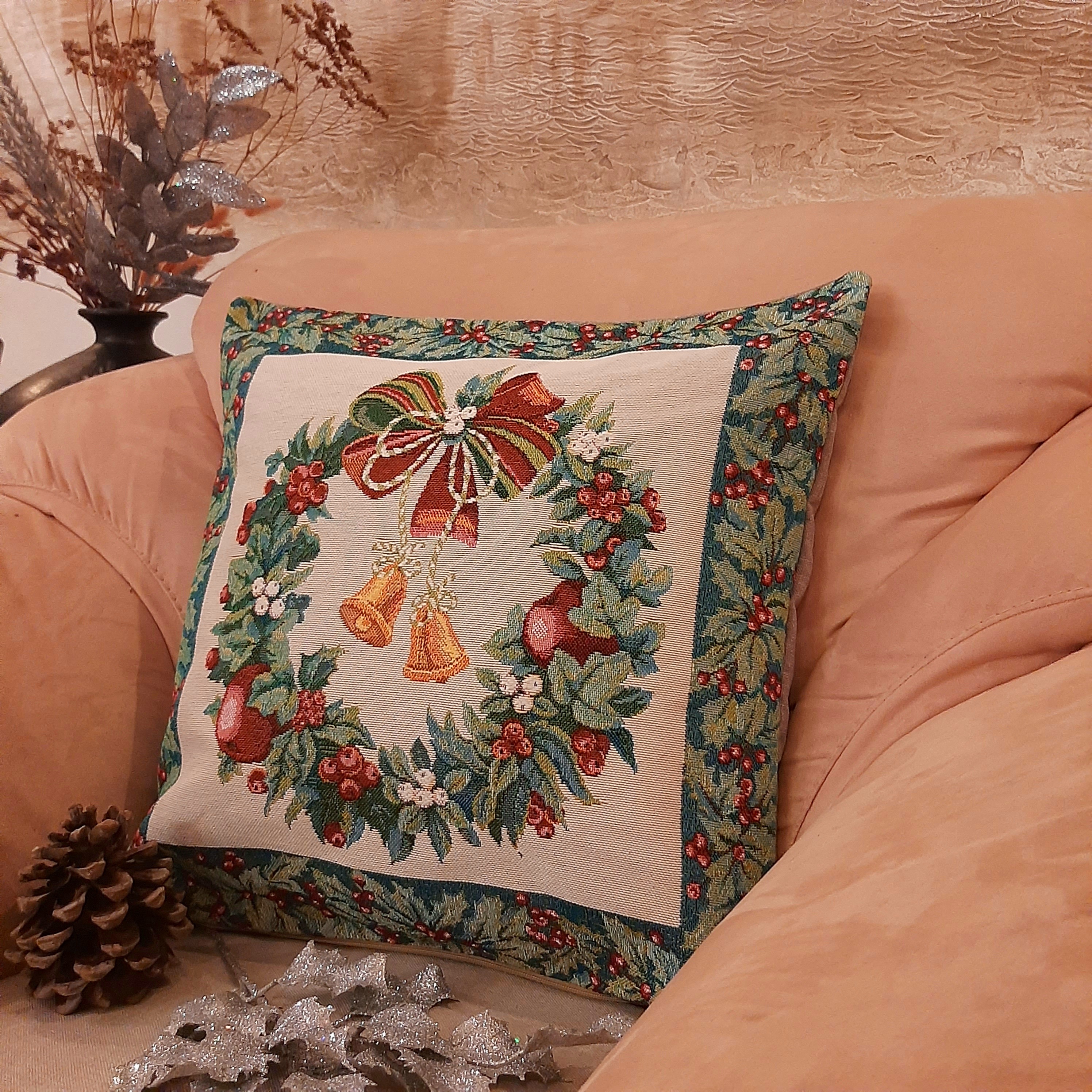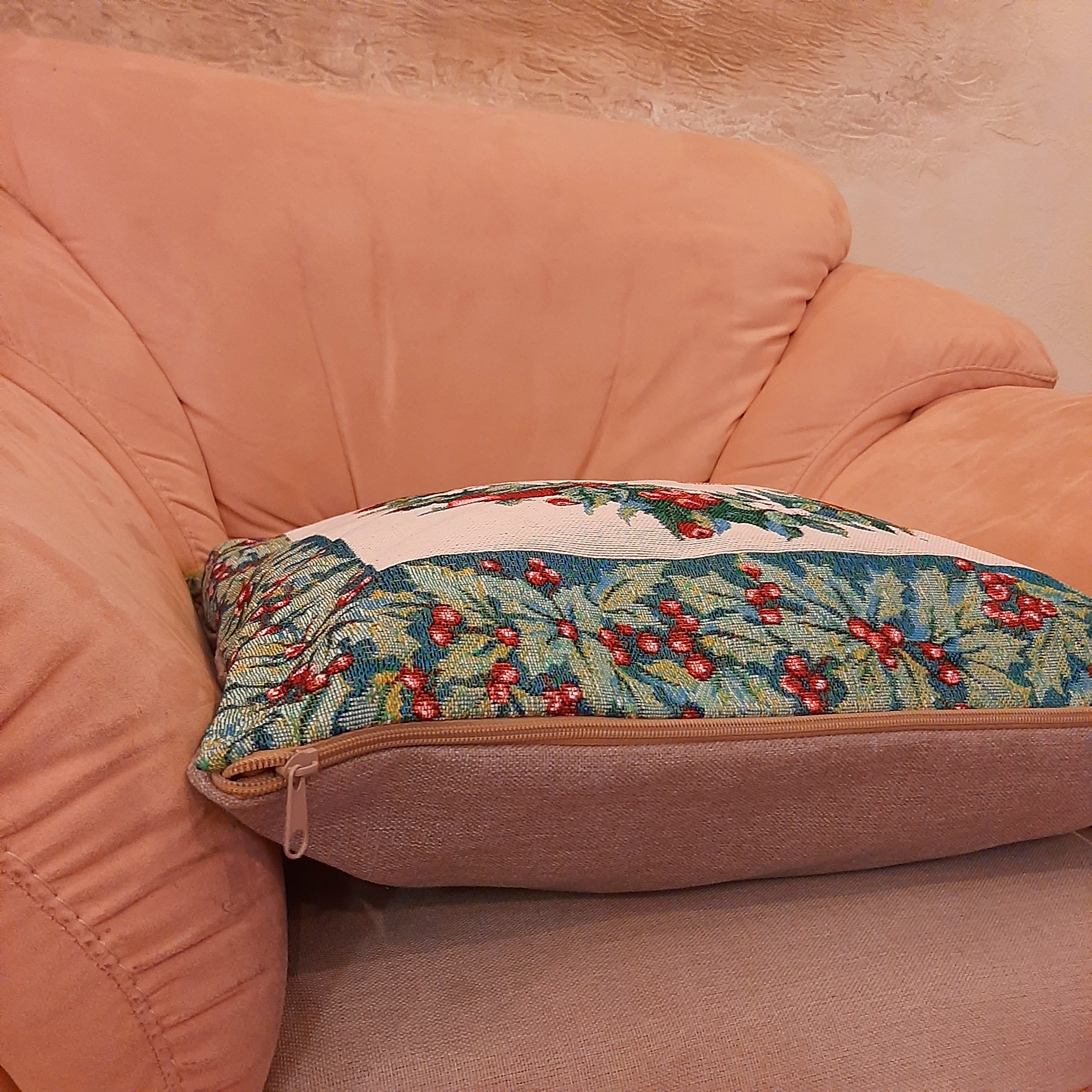 Гобеленовая наволочка для декоративной подушки. Размер наволочки: 47x47см. производство Россия. Изделие собственного производства сшито из отечественной жаккардовой ткани. Задняя часть выполнена из мебельной рогожки так же Российского производства. Все ткани используемые для производства декоративной наволочки производятся с соблюдением ТУ и ГОСТ РФ. Собственное швейное производство позволяет контролировать качество продукции на всех этапах до поступления на склад и предлагать покупателям товары высокого качества по выгодным ценам. Состав ткани 100% полиэстер. Плотность гобелена 380 г/кв.м. Наволочка подходит для подушек размером от 45 до 50 см. Продается без подушки-наполнителя. Подушку-наполнитель так же можно купит у нас. Размер наволочки может отличаться от заявленного +/- 2 см. Допускается деликатная машинная стирка при температуре 30 градусов. Гладить при средней температуре