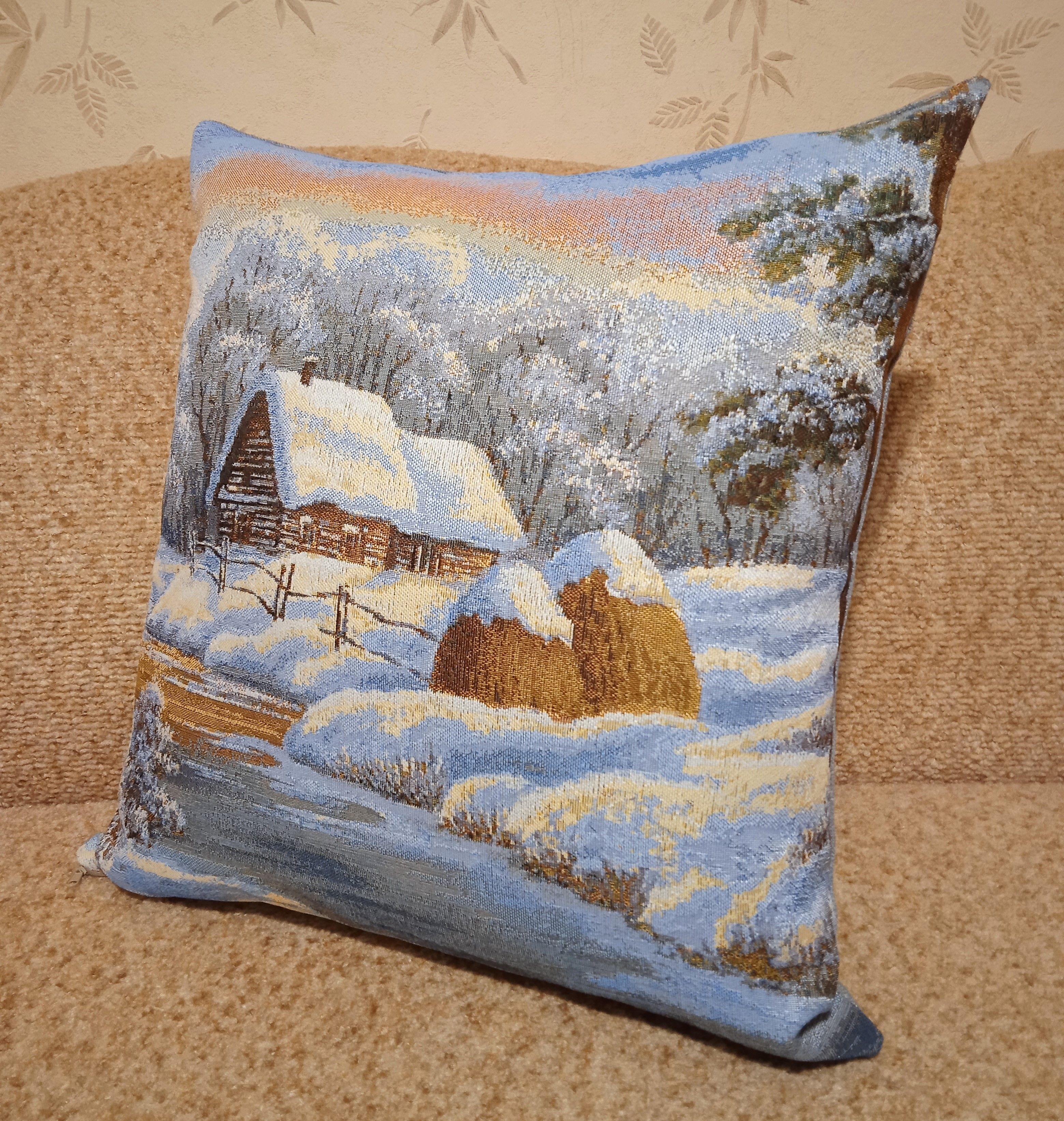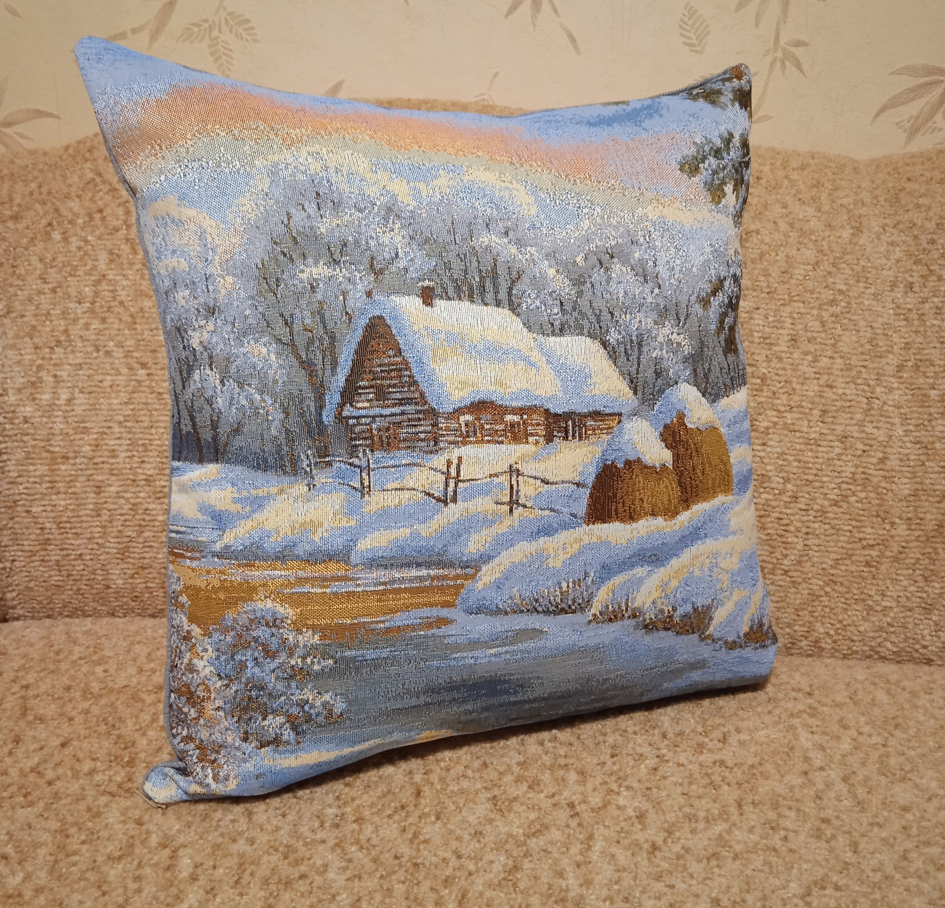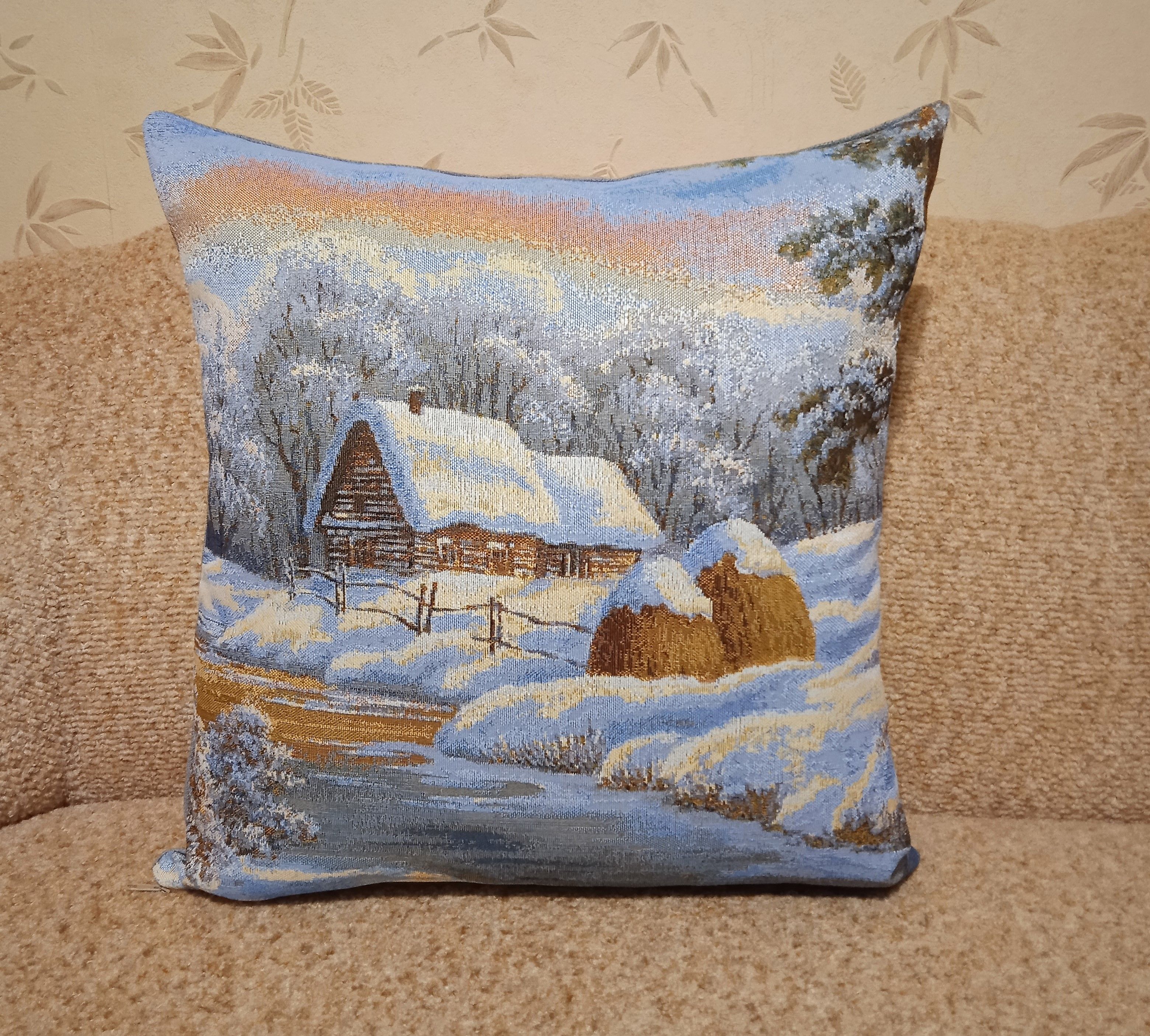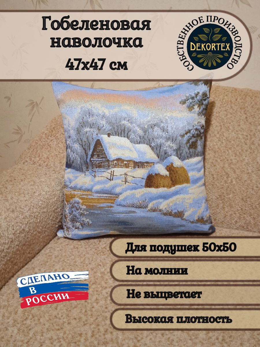 Гобеленовая наволочка для декоративной подушки. Размер наволочки: 47x47см. производство Россия. Изделие собственного производства сшито из отечественной жаккардовой ткани. Задняя часть выполнена из мебельной рогожки так же Российского производства. Все ткани используемые для производства декоративной наволочки производятся с соблюдением ТУ и ГОСТ РФ. Собственное швейное производство позволяет контролировать качество продукции на всех этапах до поступления на склад и предлагать покупателям товары высокого качества по выгодным ценам. Состав ткани 100% полиэстер. Плотность гобелена 380 г/кв.м. Наволочка подходит для подушек размером от 45 до 50 см. Продается без подушки-наполнителя. Подушку-наполнитель так же можно купит у нас. Размер наволочки может отличаться от заявленного +/- 2 см. Допускается деликатная машинная стирка при температуре 30 градусов. Гладить при средней температуре.