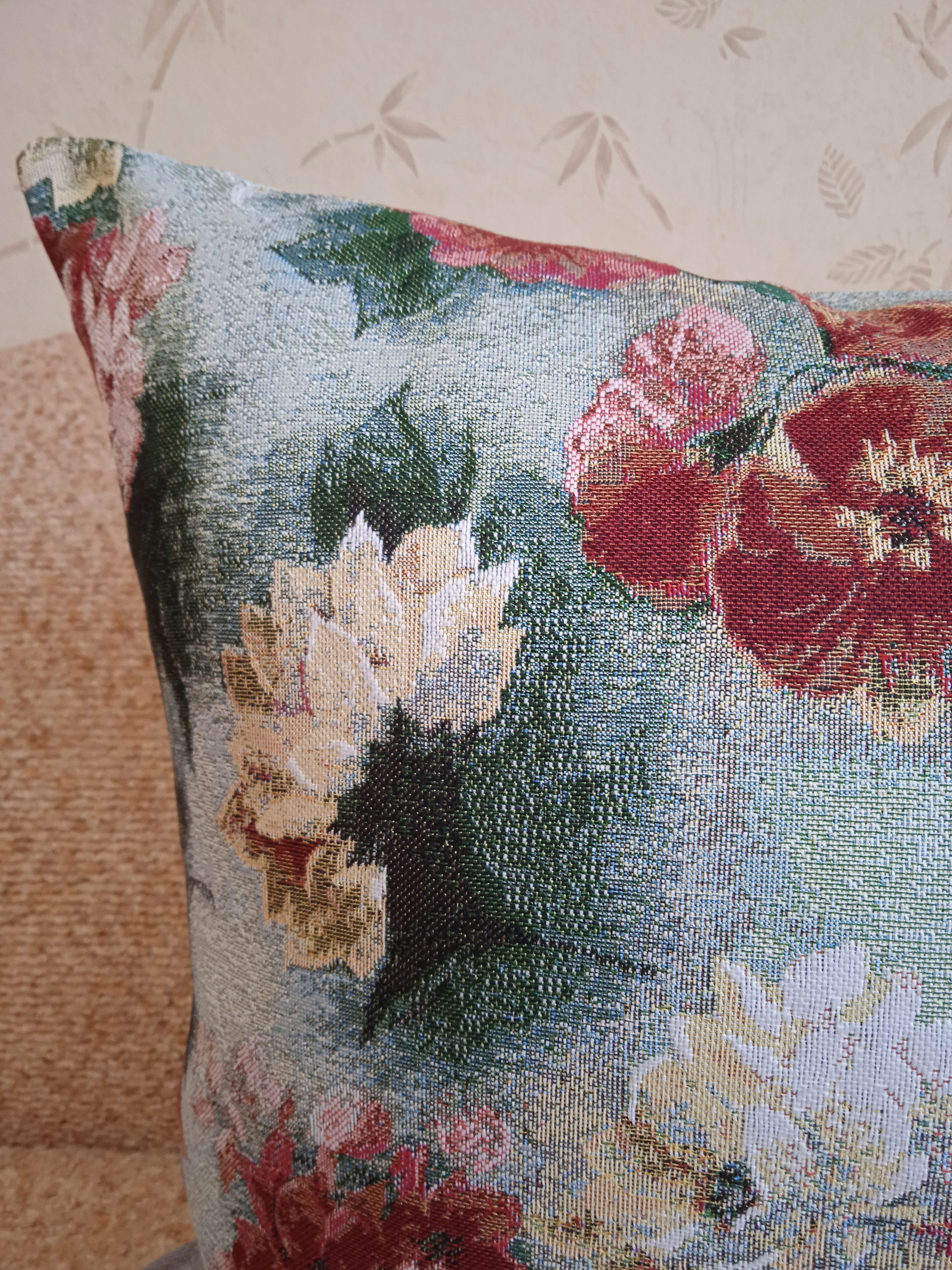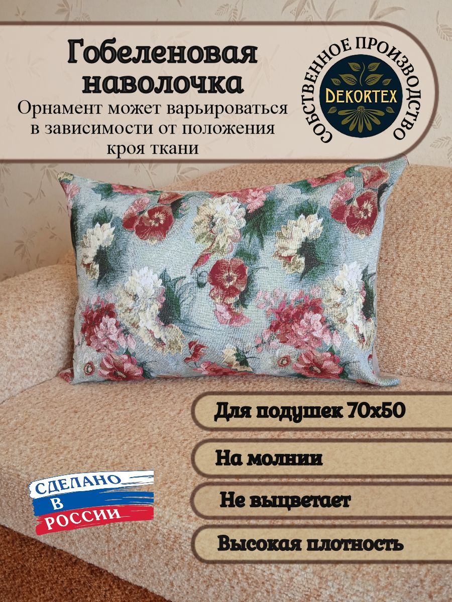 Гобеленовый чехол для декоративной подушки. Размер чехла: 68x47 см. производство Россия. Изделие собственного производства сшито из отечественной жаккардовой ткани. Задняя часть выполнена из мебельной рогожки так же Российского производства. Все ткани используемые для производства декоративного чехла производятся с соблюдением ТУ и ГОСТ Р.Ф. Собственное швейное производство позволяет контролировать качество продукции на всех этапах до поступления на склад и предлагать покупателям товары высокого качества по выгодным ценам. Состав ткани 100% полиэстер. Плотность гобелена 380 г/кв.м. Продается без подушки-наполнителя. Подушку-наполнитель так же можно купить у нас. Размер чехла может отличаться от заявленного +/- 2 см. Подходит для подушки 70х50. Допускается деликатная машинная стирка при температуре 30 градусов. Гладить при средней температуре.