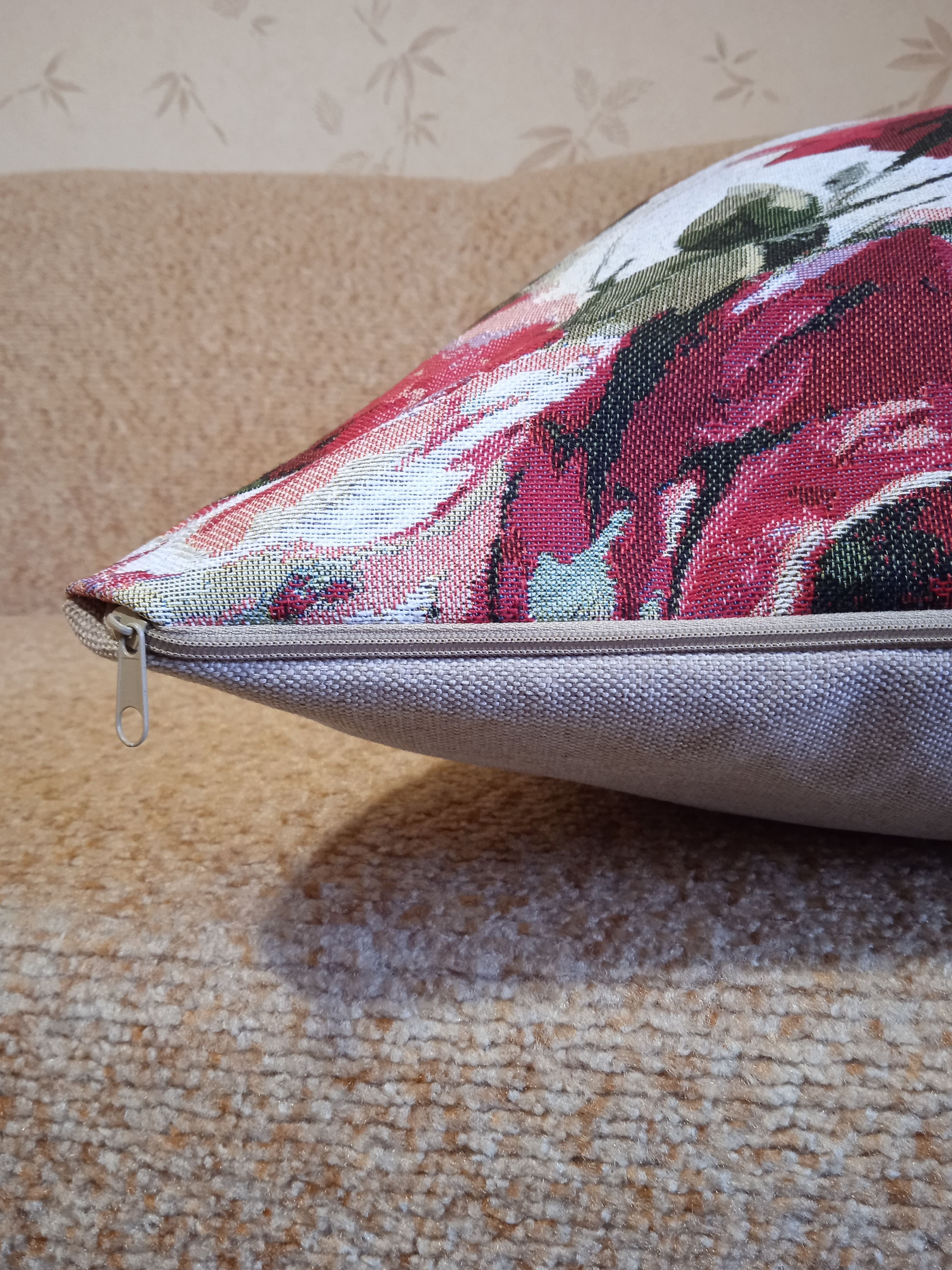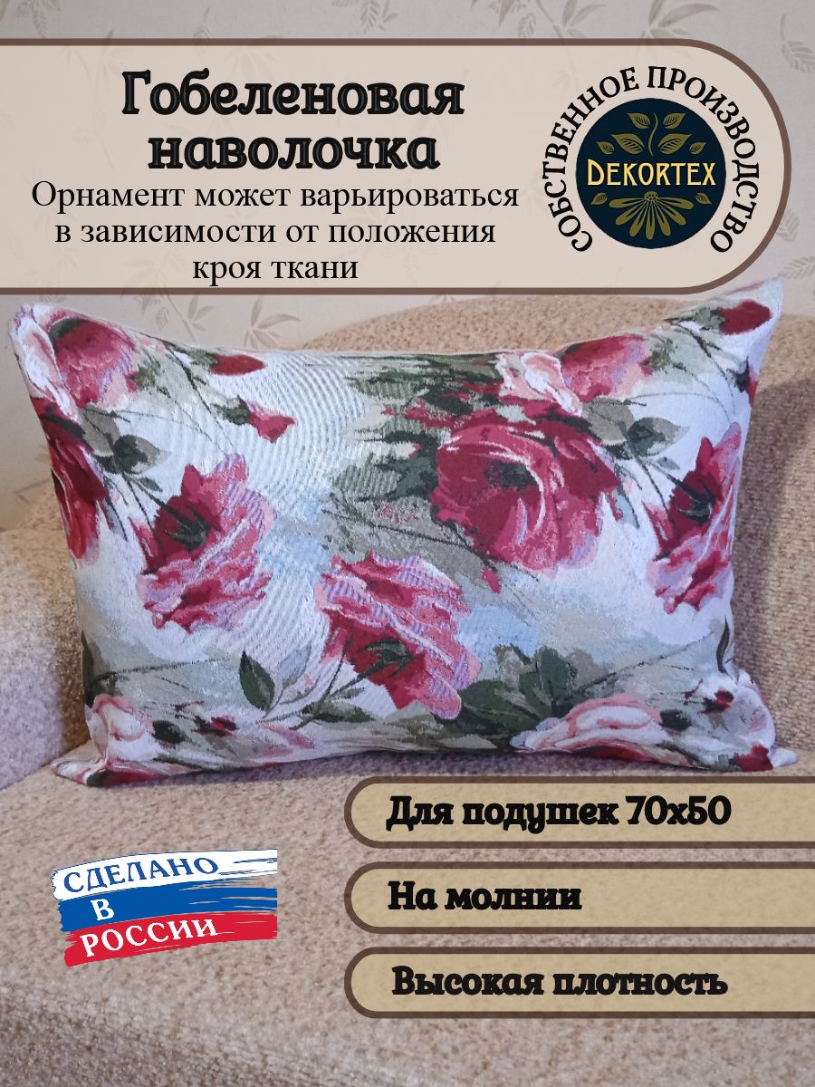 Гобеленовый чехол для декоративной подушки. Размер чехла: 68x47 см. производство Россия. Изделие собственного производства сшито из отечественной жаккардовой ткани. Задняя часть выполнена из мебельной рогожки так же Российского производства. Все ткани используемые для производства декоративного чехла производятся с соблюдением ТУ и ГОСТ Р.Ф. Собственное швейное производство позволяет контролировать качество продукции на всех этапах до поступления на склад и предлагать покупателям товары высокого качества по выгодным ценам. Состав ткани 100% полиэстер. Плотность гобелена 380 г/кв.м. Продается без подушки-наполнителя. Подушку-наполнитель так же можно купить у нас. Размер чехла может отличаться от заявленного +/- 2 см. Подходит для подушки 70х50. Допускается деликатная машинная стирка при температуре 30 градусов. Гладить при средней температуре.