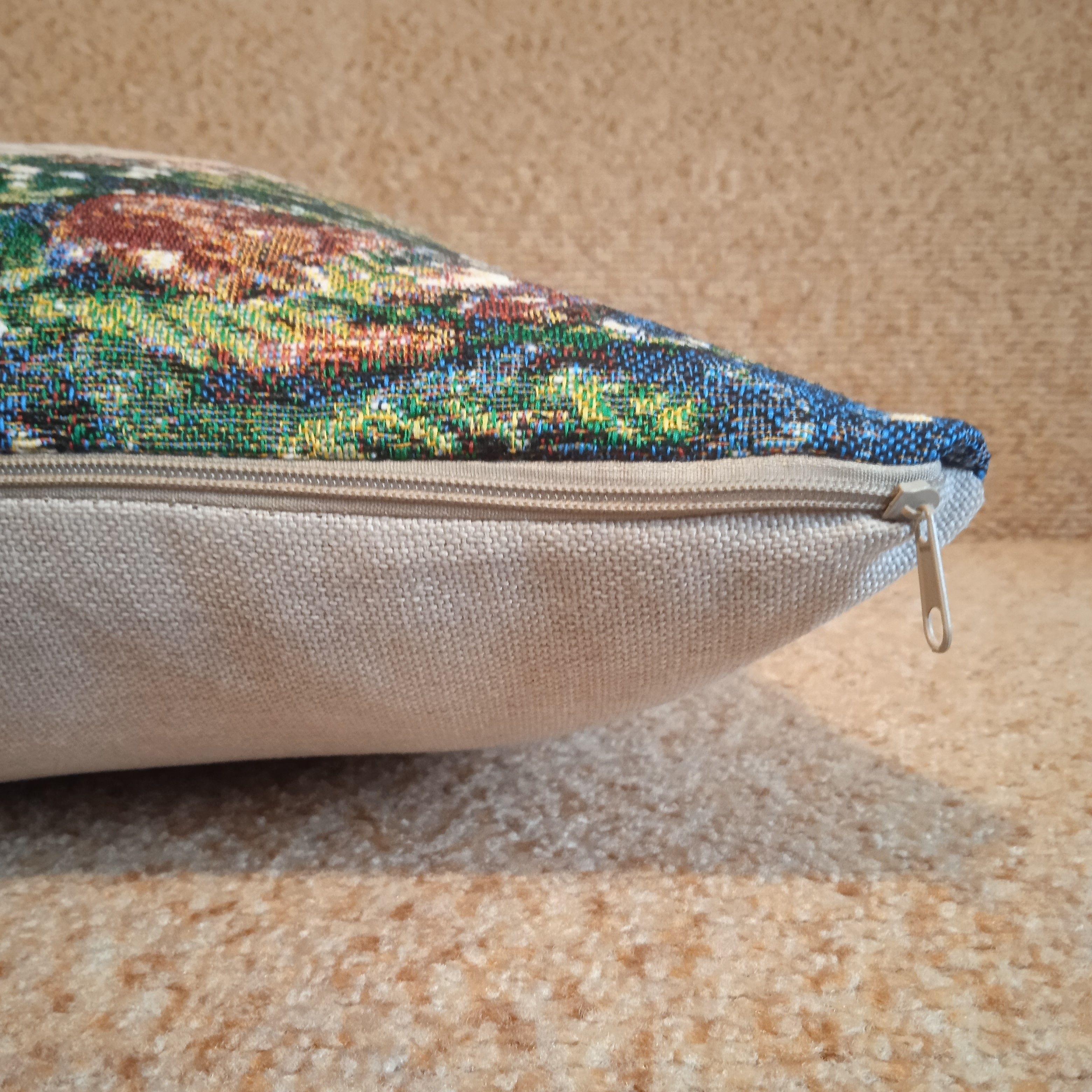 Гобеленовая наволочка для декоративной подушки. Размер наволочки: 47x47см. производство Россия. Изделие собственного производства сшито из отечественной жаккардовой ткани. Задняя часть выполнена из мебельной рогожки так же Российского производства. Все ткани используемые для производства декоративной наволочки производятся с соблюдением ТУ и ГОСТ РФ. Собственное швейное производство позволяет контролировать качество продукции на всех этапах до поступления на склад и предлагать покупателям товары высокого качества по выгодным ценам. Состав ткани 100% полиэстер. Плотность гобелена 380 г/кв.м. Наволочка подходит для подушек размером от 45 до 50 см. Продается без подушки-наполнителя. Подушку-наполнитель так же можно купит у нас. Размер наволочки может отличаться от заявленного +/- 2 см. Допускается деликатная машинная стирка при температуре 30 градусов. Гладить при средней температуре.