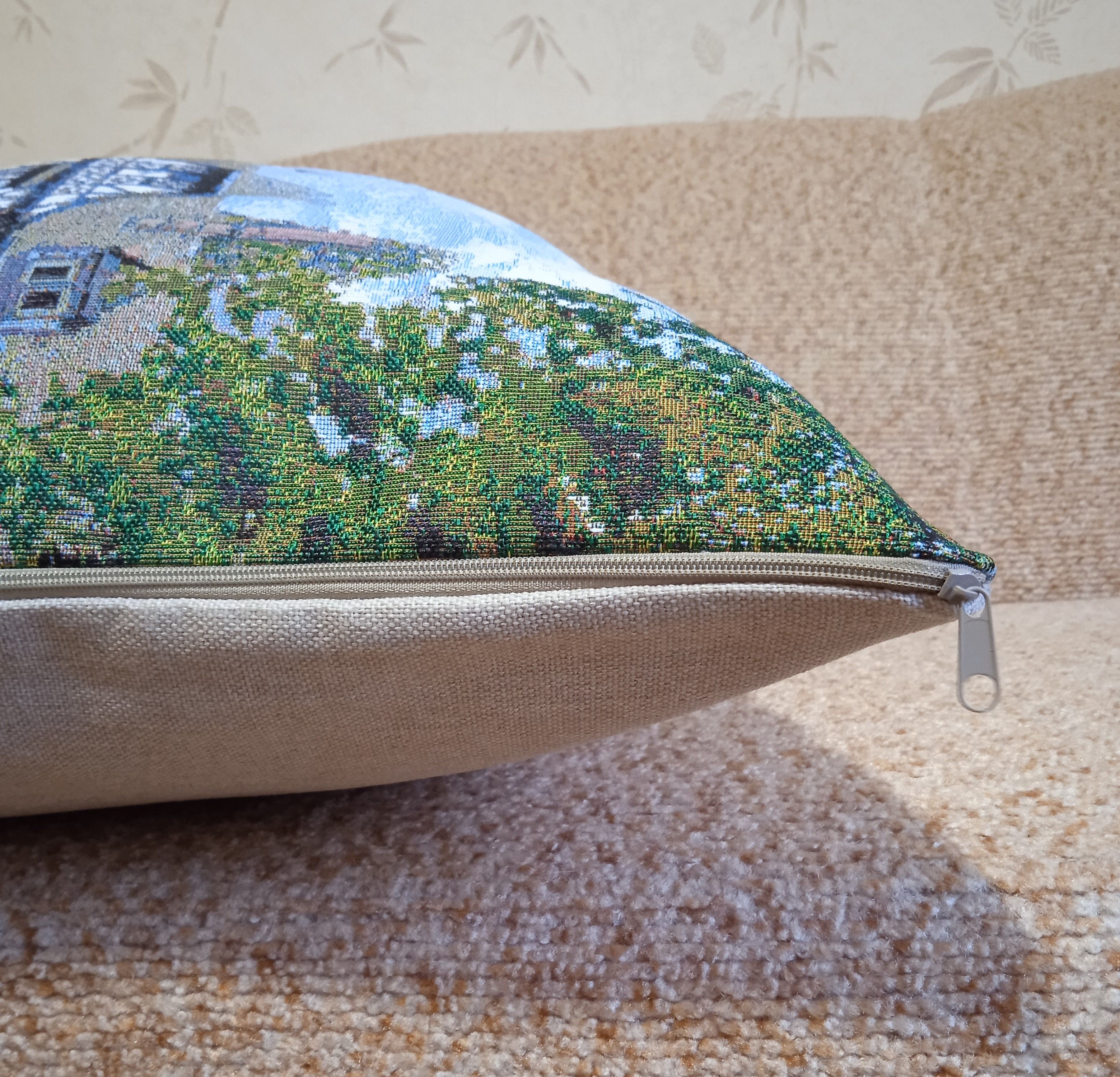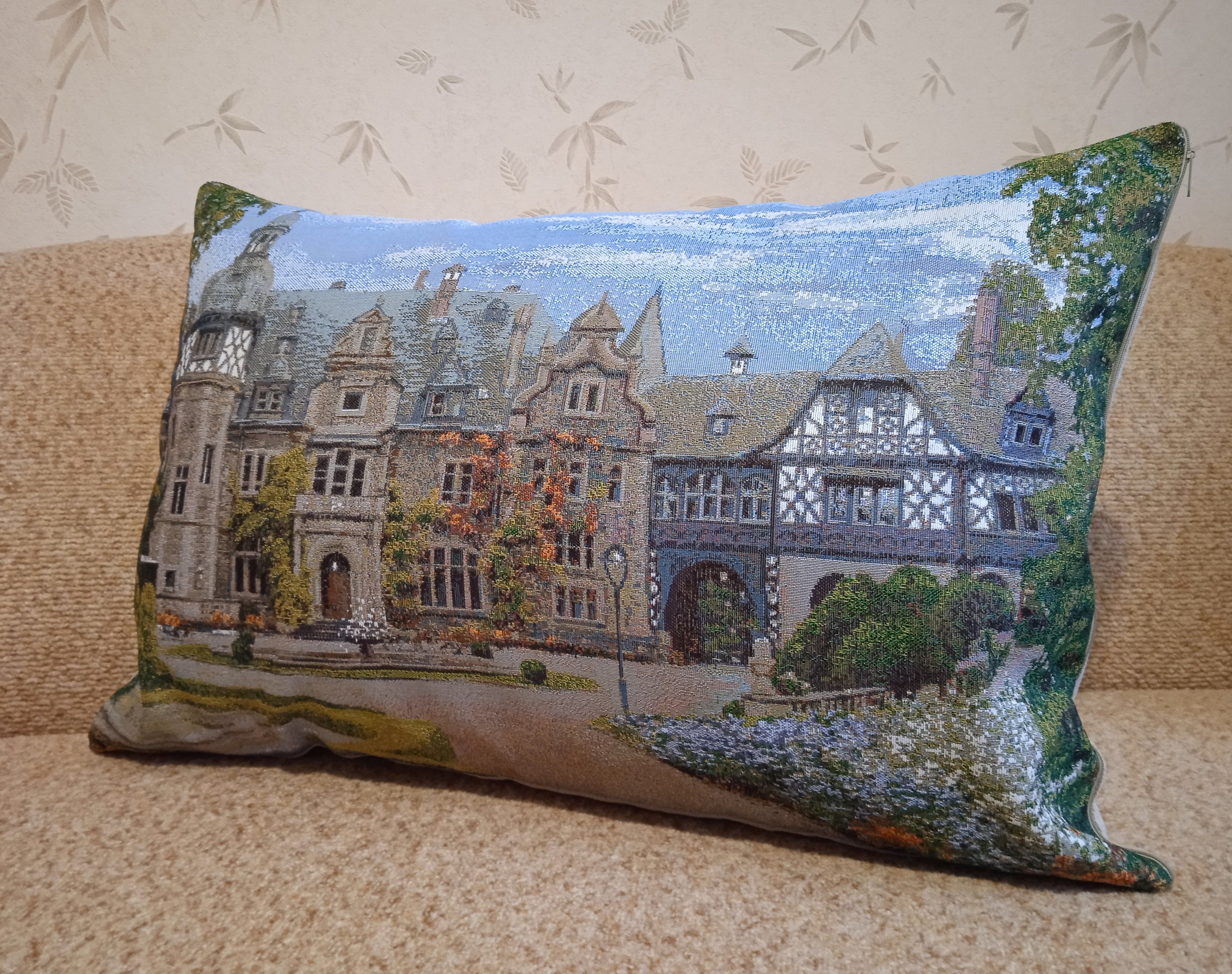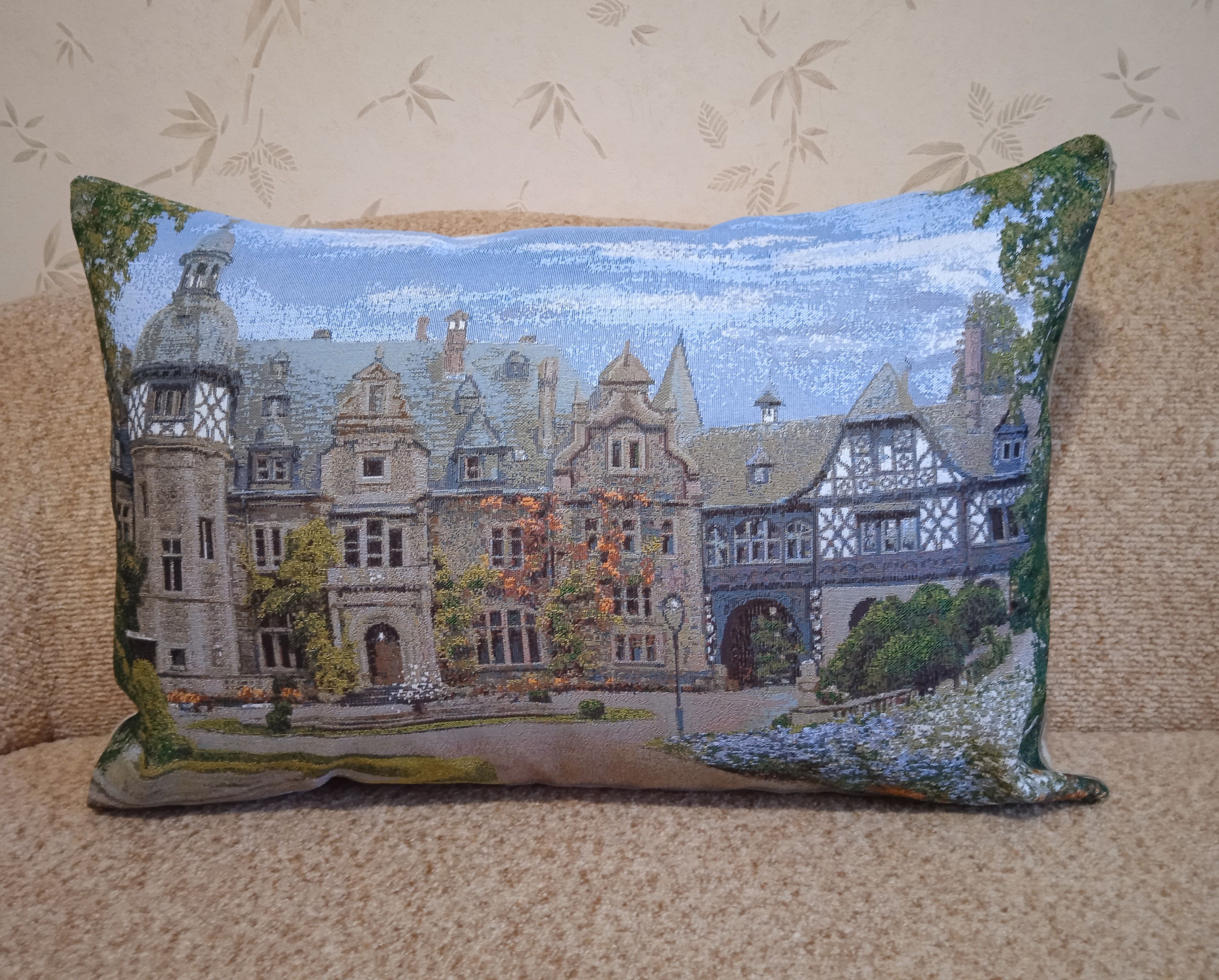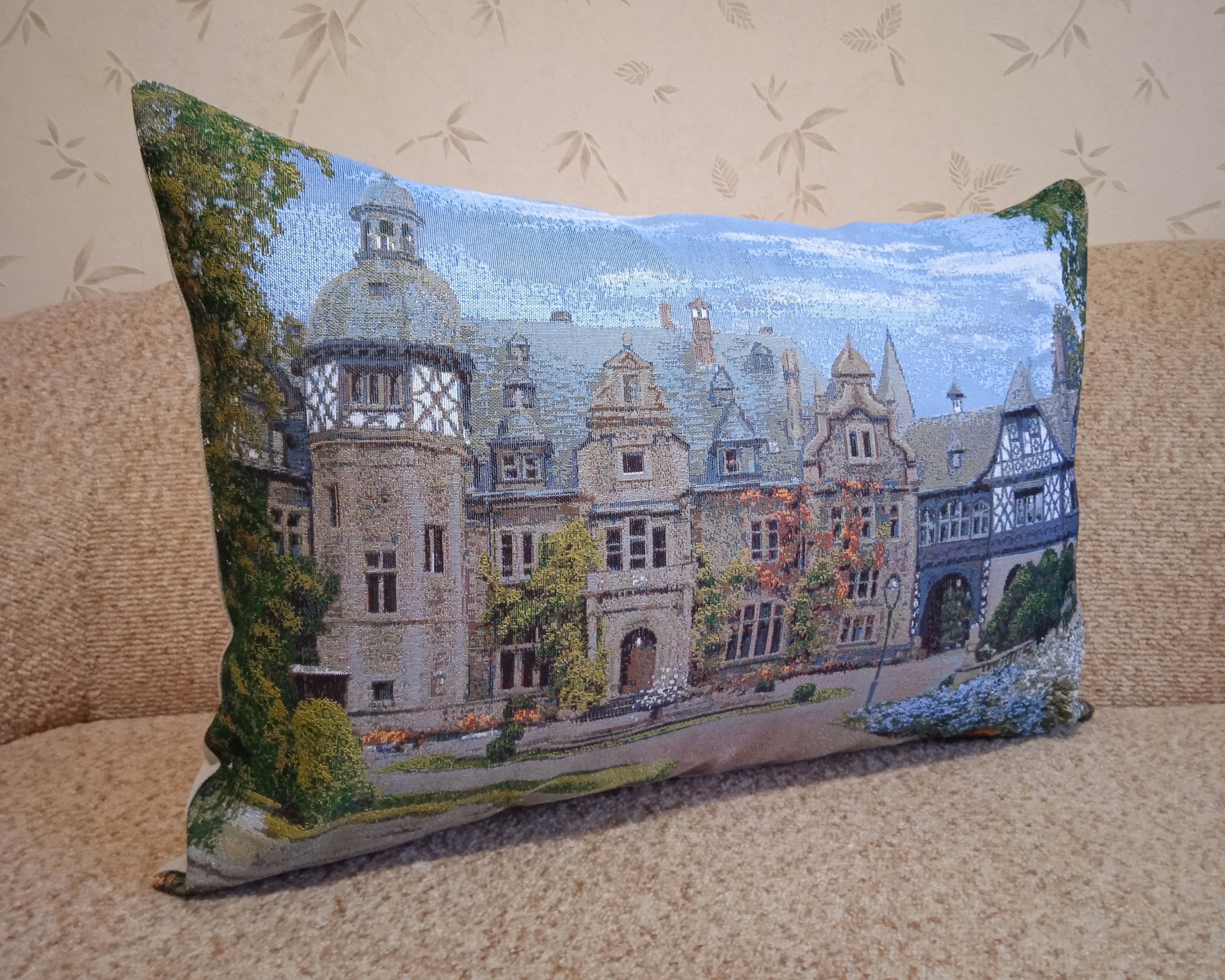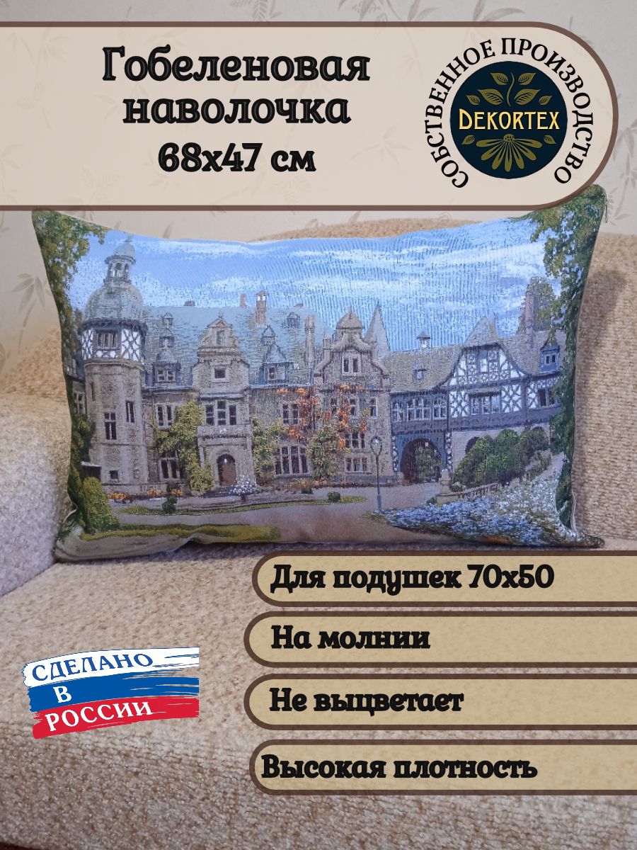 Гобеленовый чехол для декоративной подушки. Размер чехла: 68x47 см. производство Россия. Изделие собственного производства сшито из отечественной жаккардовой ткани. Задняя часть выполнена из мебельной рогожки так же Российского производства. Все ткани используемые для производства декоративного чехла производятся с соблюдением ТУ и ГОСТ Р.Ф. Собственное швейное производство позволяет контролировать качество продукции на всех этапах до поступления на склад и предлагать покупателям товары высокого качества по выгодным ценам. Состав ткани 100% полиэстер. Плотность гобелена 380 г/кв.м. Продается без подушки-наполнителя. Подушку-наполнитель так же можно купить у нас. Размер чехла может отличаться от заявленного +/- 2 см. Подходит для подушки 70х50. Допускается деликатная машинная стирка при температуре 30 градусов. Гладить при средней температуре.