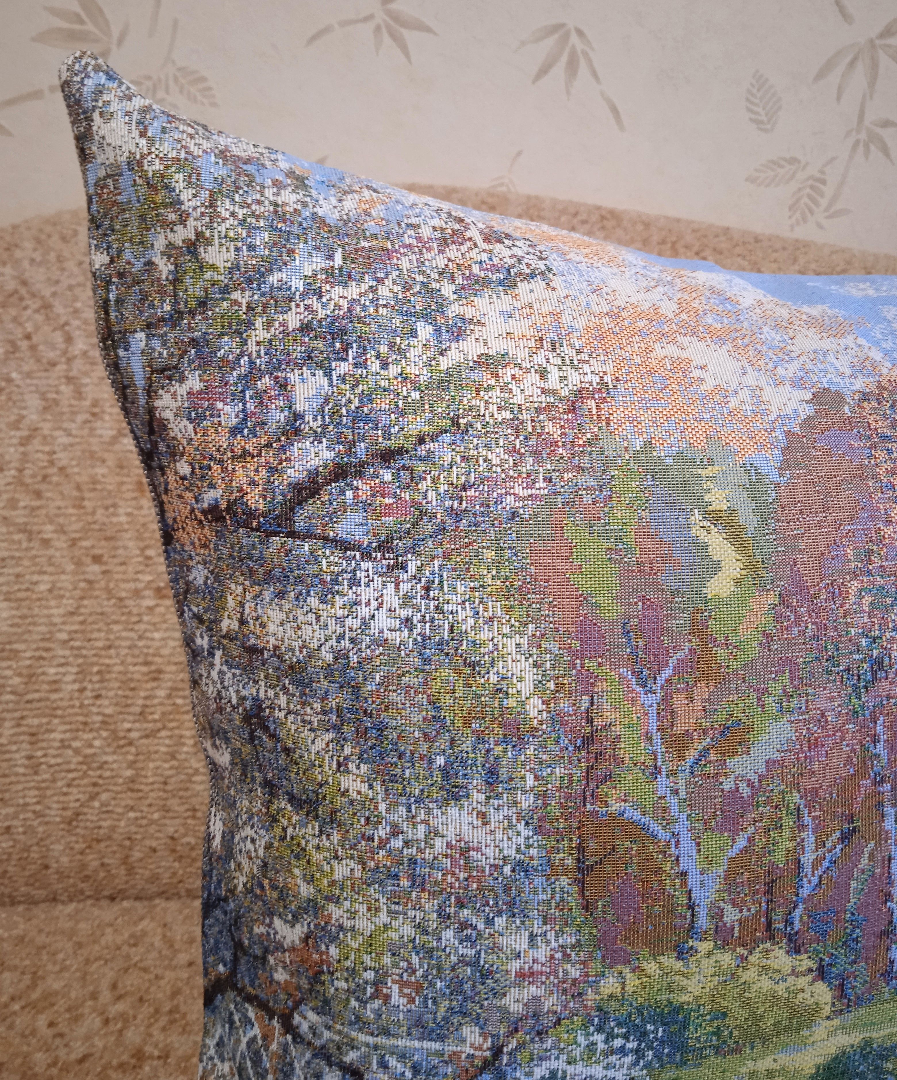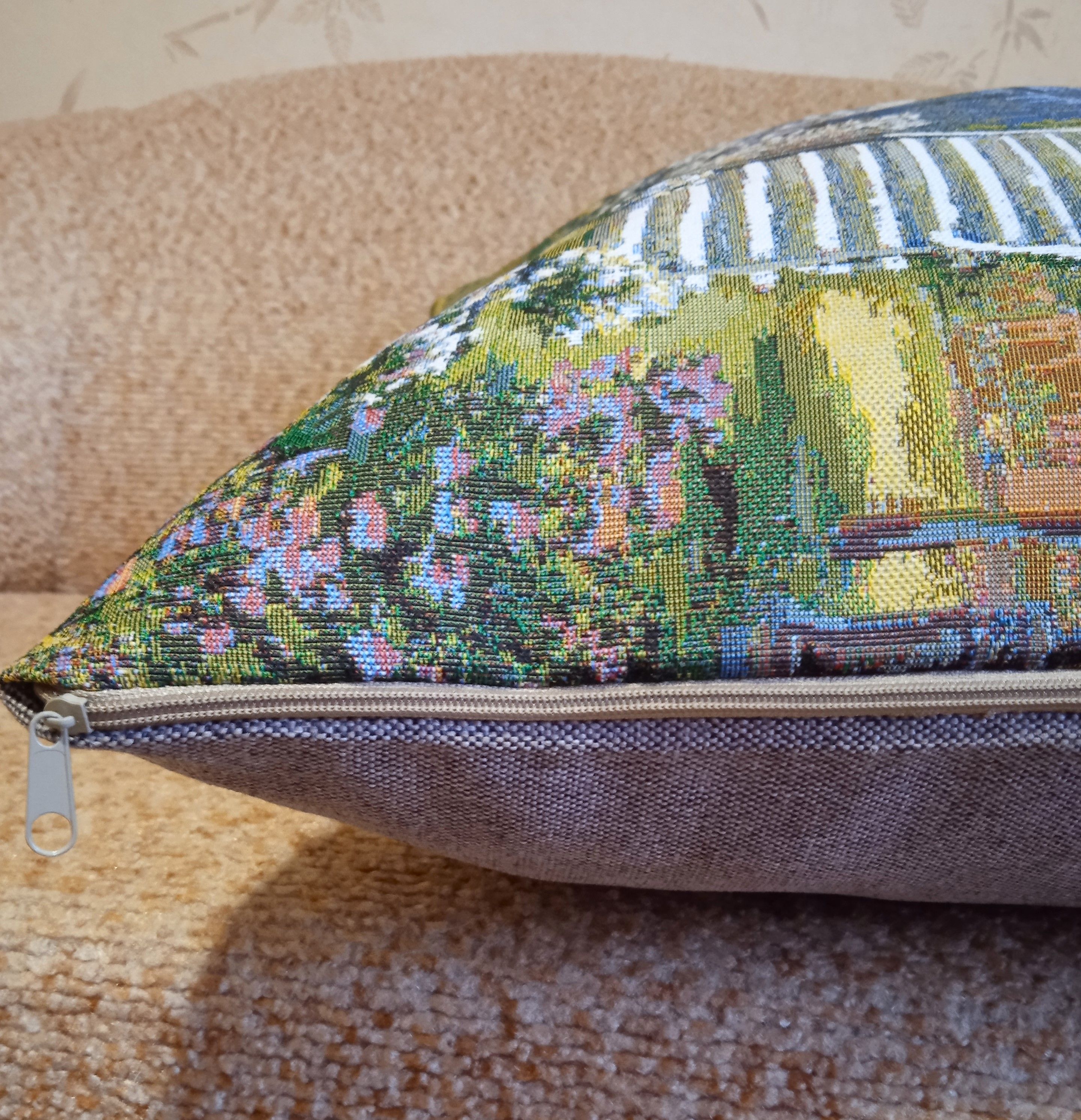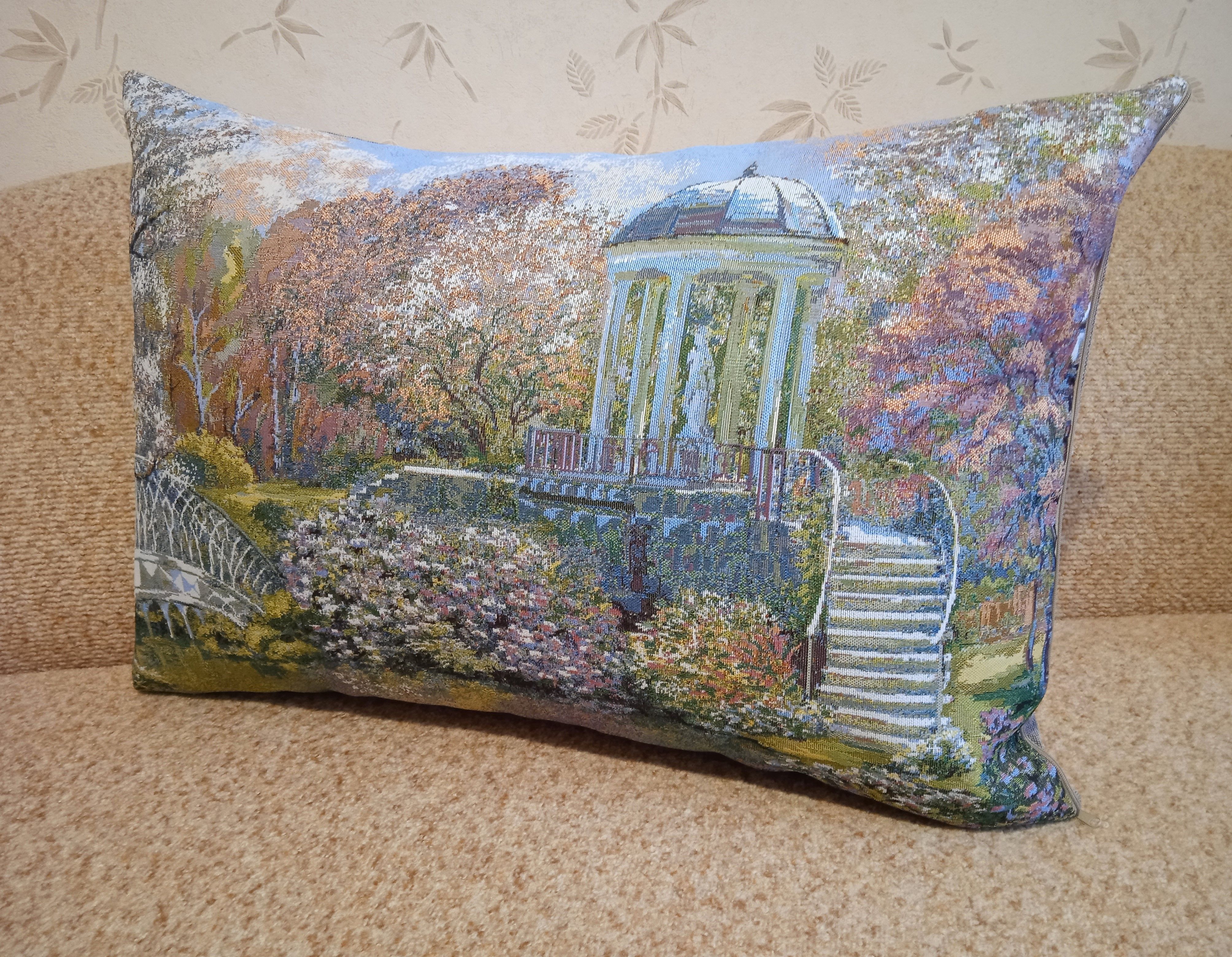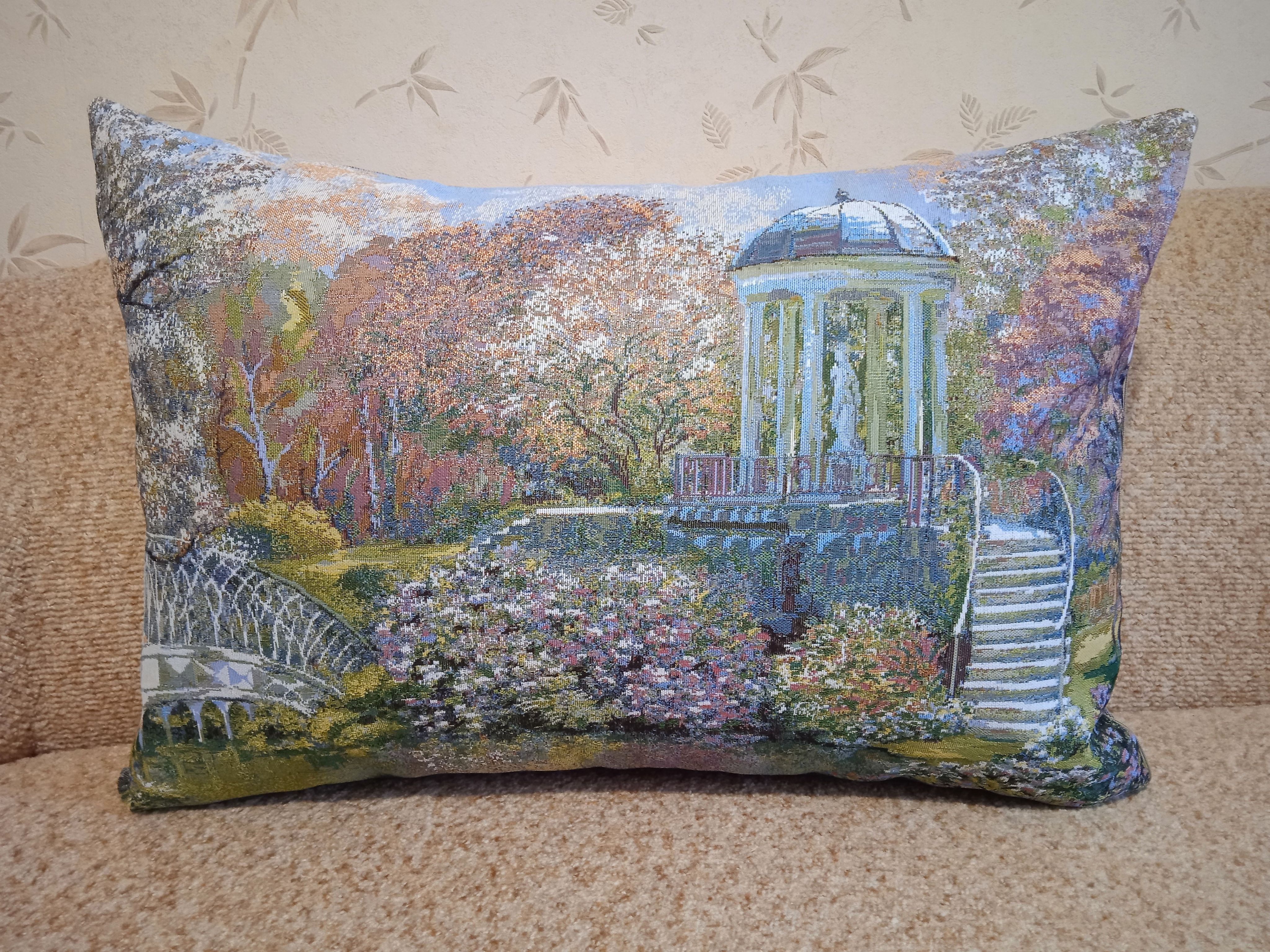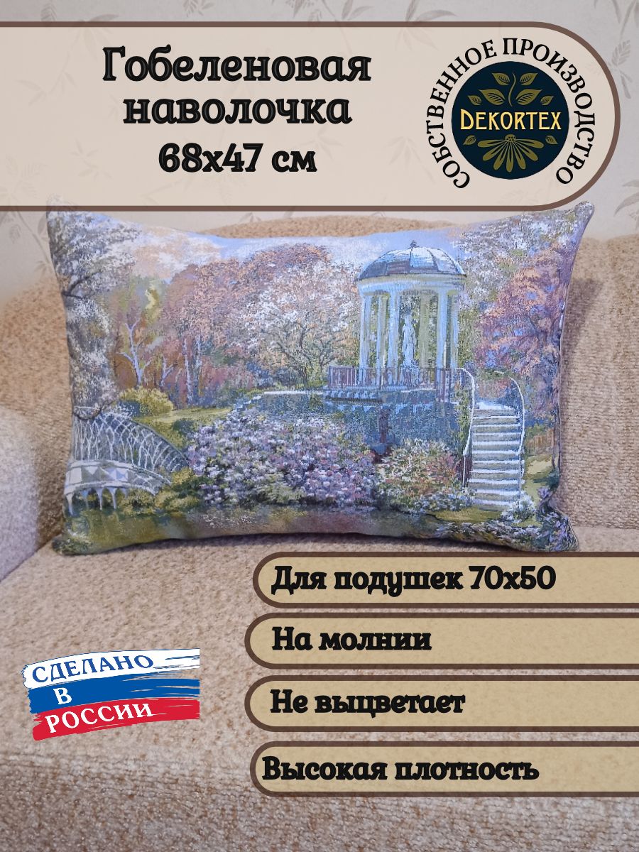 Гобеленовый чехол для декоративной подушки. Размер чехла: 68x47 см. производство Россия. Изделие собственного производства сшито из отечественной жаккардовой ткани. Задняя часть выполнена из мебельной рогожки так же Российского производства. Все ткани используемые для производства декоративного чехла производятся с соблюдением ТУ и ГОСТ Р.Ф. Собственное швейное производство позволяет контролировать качество продукции на всех этапах до поступления на склад и предлагать покупателям товары высокого качества по выгодным ценам. Состав ткани 100% полиэстер. Плотность гобелена 380 г/кв.м. Продается без подушки-наполнителя. Подушку-наполнитель так же можно купить у нас. Размер чехла может отличаться от заявленного +/- 2 см. Подходит для подушки 70х50. Допускается деликатная машинная стирка при температуре 30 градусов. Гладить при средней температуре.