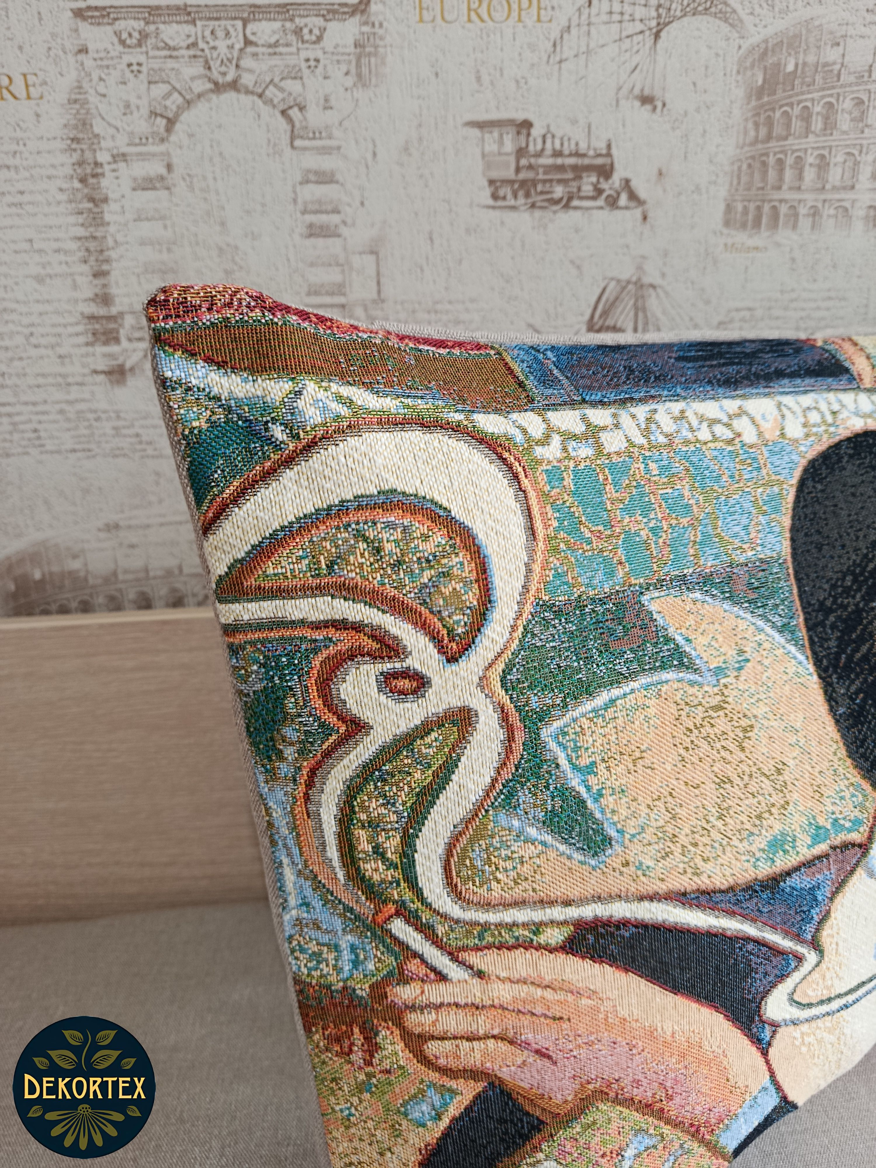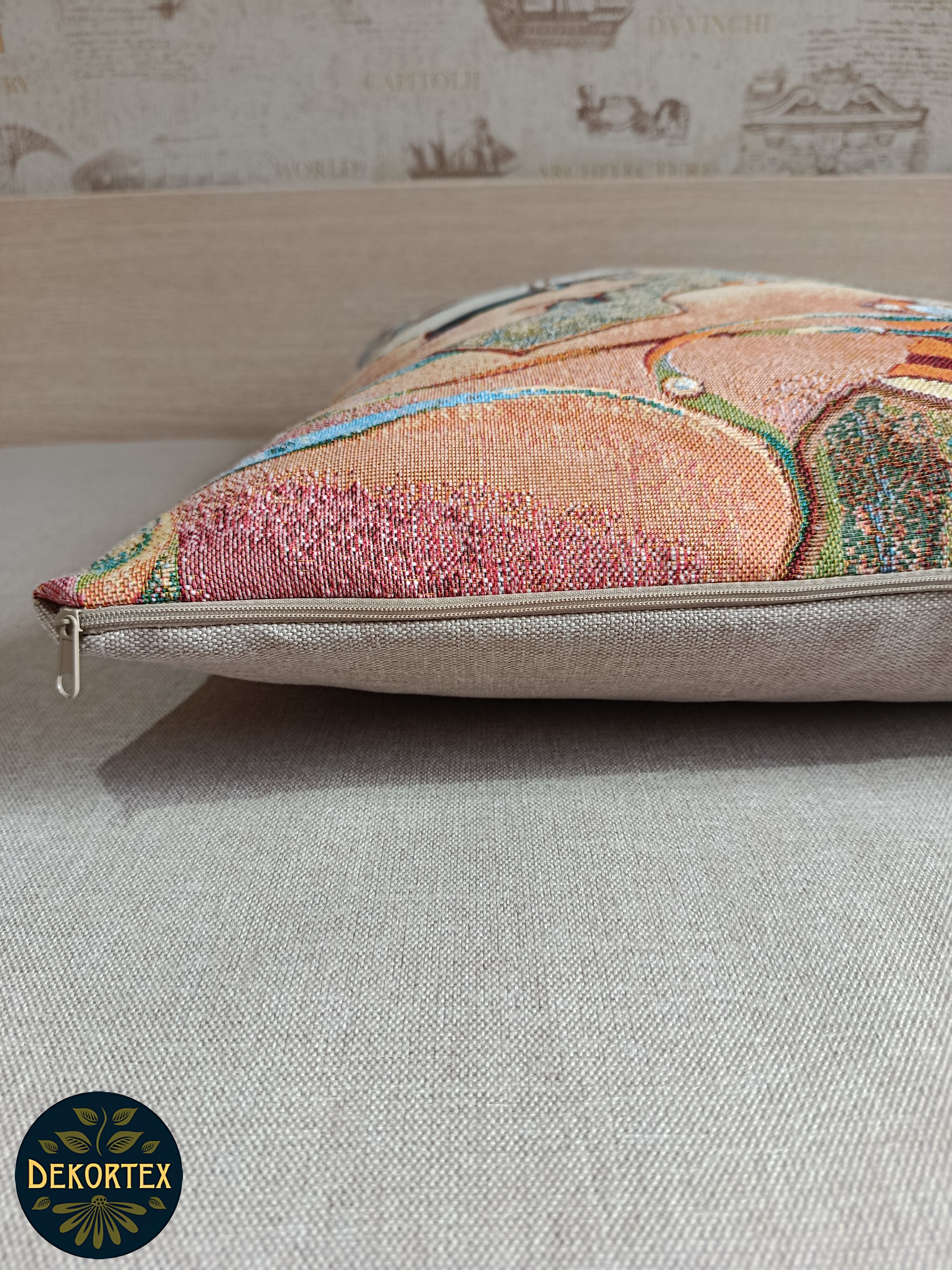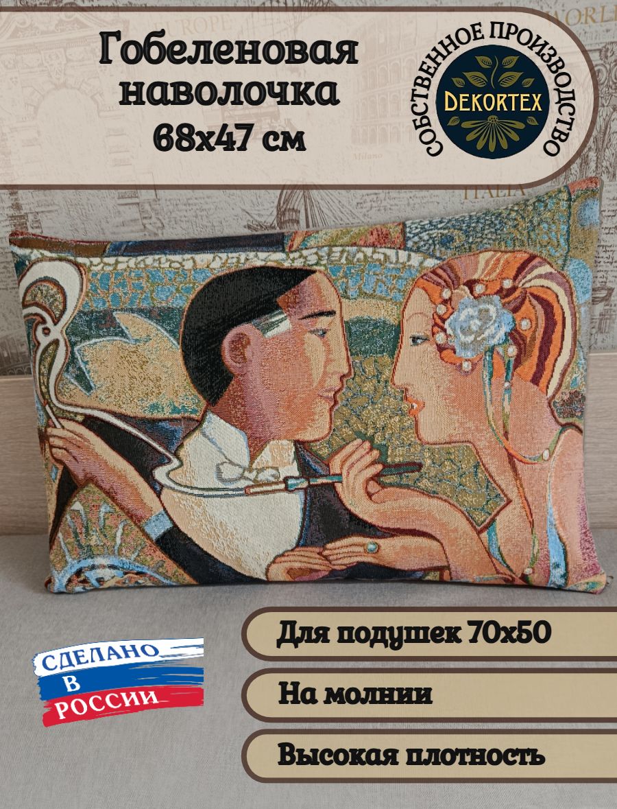 Гобеленовый чехол для декоративной подушки. Размер чехла: 68x47 см. производство Россия. Изделие собственного производства сшито из отечественной жаккардовой ткани. Задняя часть выполнена из мебельной рогожки так же Российского производства. Все ткани используемые для производства декоративного чехла производятся с соблюдением ТУ и ГОСТ Р.Ф. Собственное швейное производство позволяет контролировать качество продукции на всех этапах до поступления на склад и предлагать покупателям товары высокого качества по выгодным ценам. Состав ткани 100% полиэстер. Плотность гобелена 380 г/кв.м. Продается без подушки-наполнителя. Подушку-наполнитель так же можно купить у нас. Размер чехла может отличаться от заявленного +/- 2 см. Подходит для подушки 70х50. Допускается деликатная машинная стирка при температуре 30 градусов. Гладить при средней температуре.