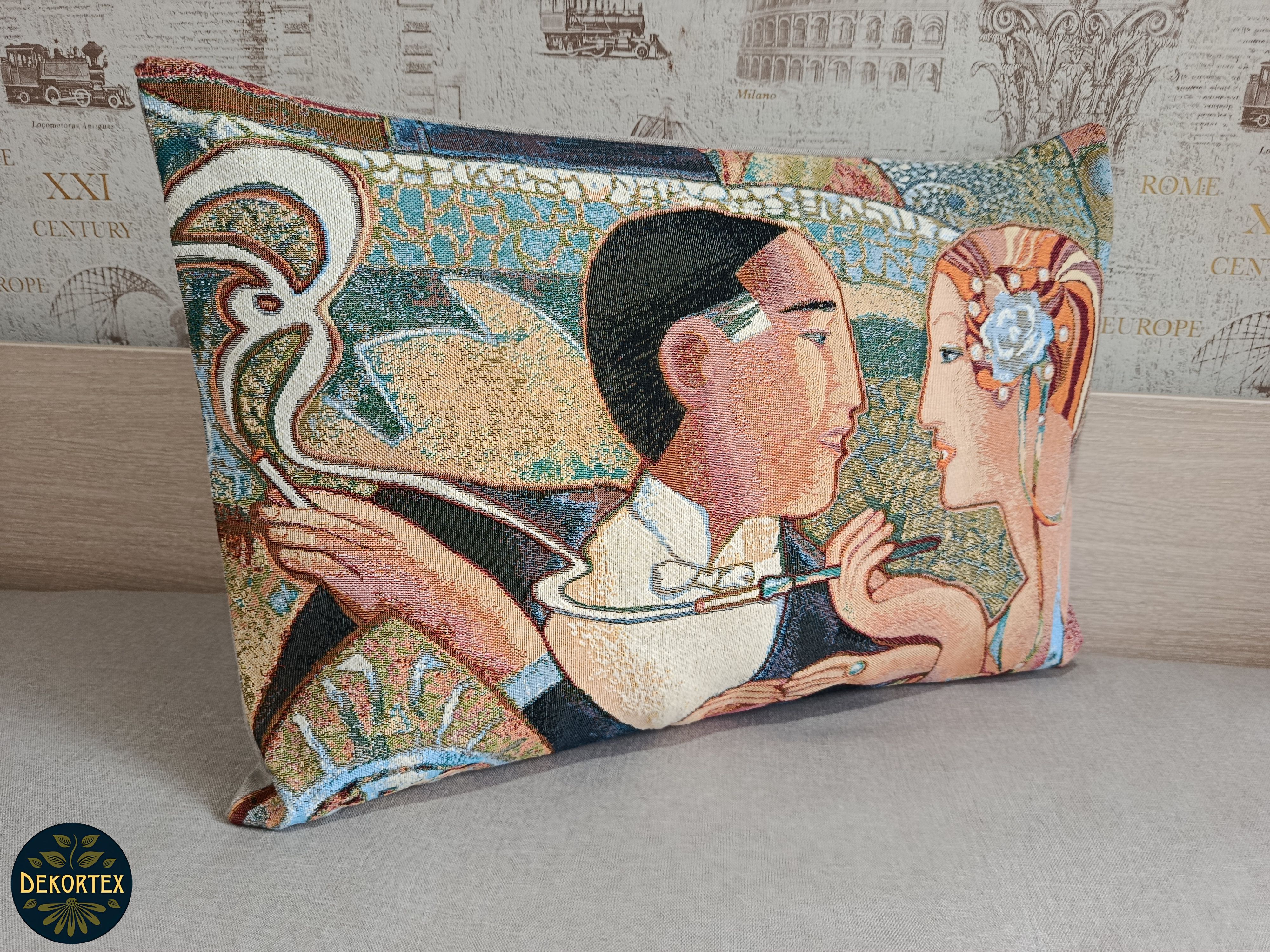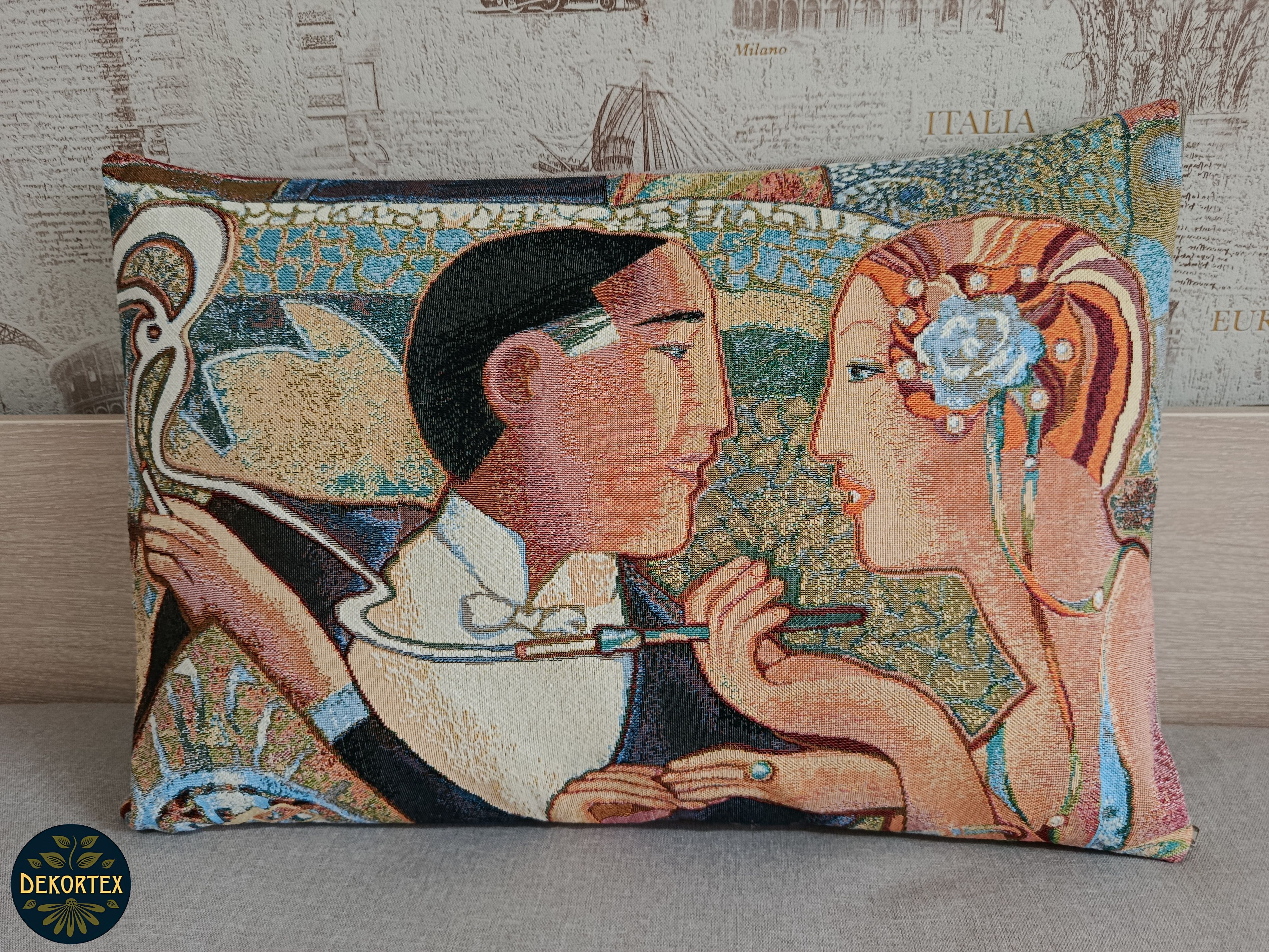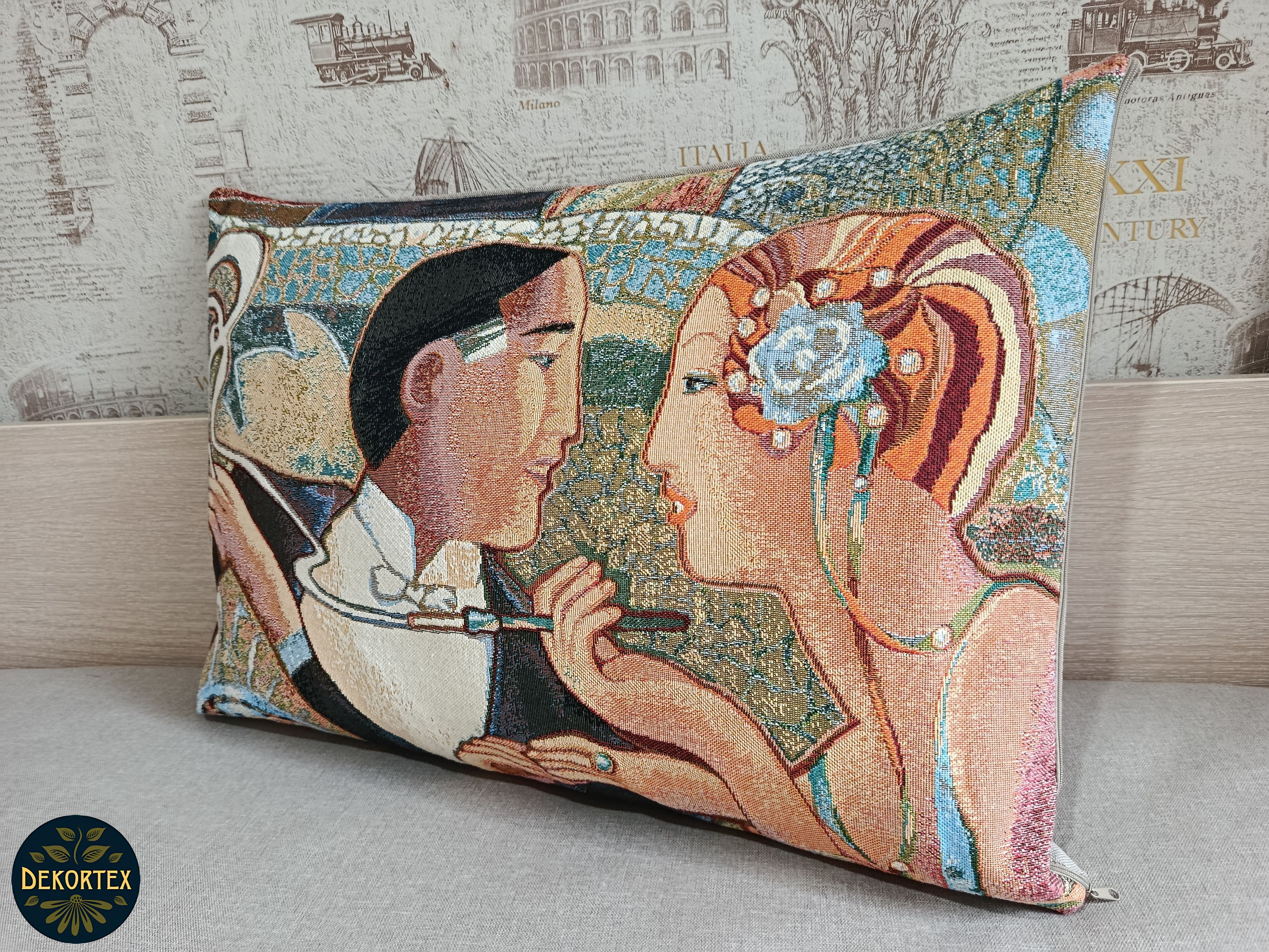 Гобеленовый чехол для декоративной подушки. Размер чехла: 68x47 см. производство Россия. Изделие собственного производства сшито из отечественной жаккардовой ткани. Задняя часть выполнена из мебельной рогожки так же Российского производства. Все ткани используемые для производства декоративного чехла производятся с соблюдением ТУ и ГОСТ Р.Ф. Собственное швейное производство позволяет контролировать качество продукции на всех этапах до поступления на склад и предлагать покупателям товары высокого качества по выгодным ценам. Состав ткани 100% полиэстер. Плотность гобелена 380 г/кв.м. Продается без подушки-наполнителя. Подушку-наполнитель так же можно купить у нас. Размер чехла может отличаться от заявленного +/- 2 см. Подходит для подушки 70х50. Допускается деликатная машинная стирка при температуре 30 градусов. Гладить при средней температуре.