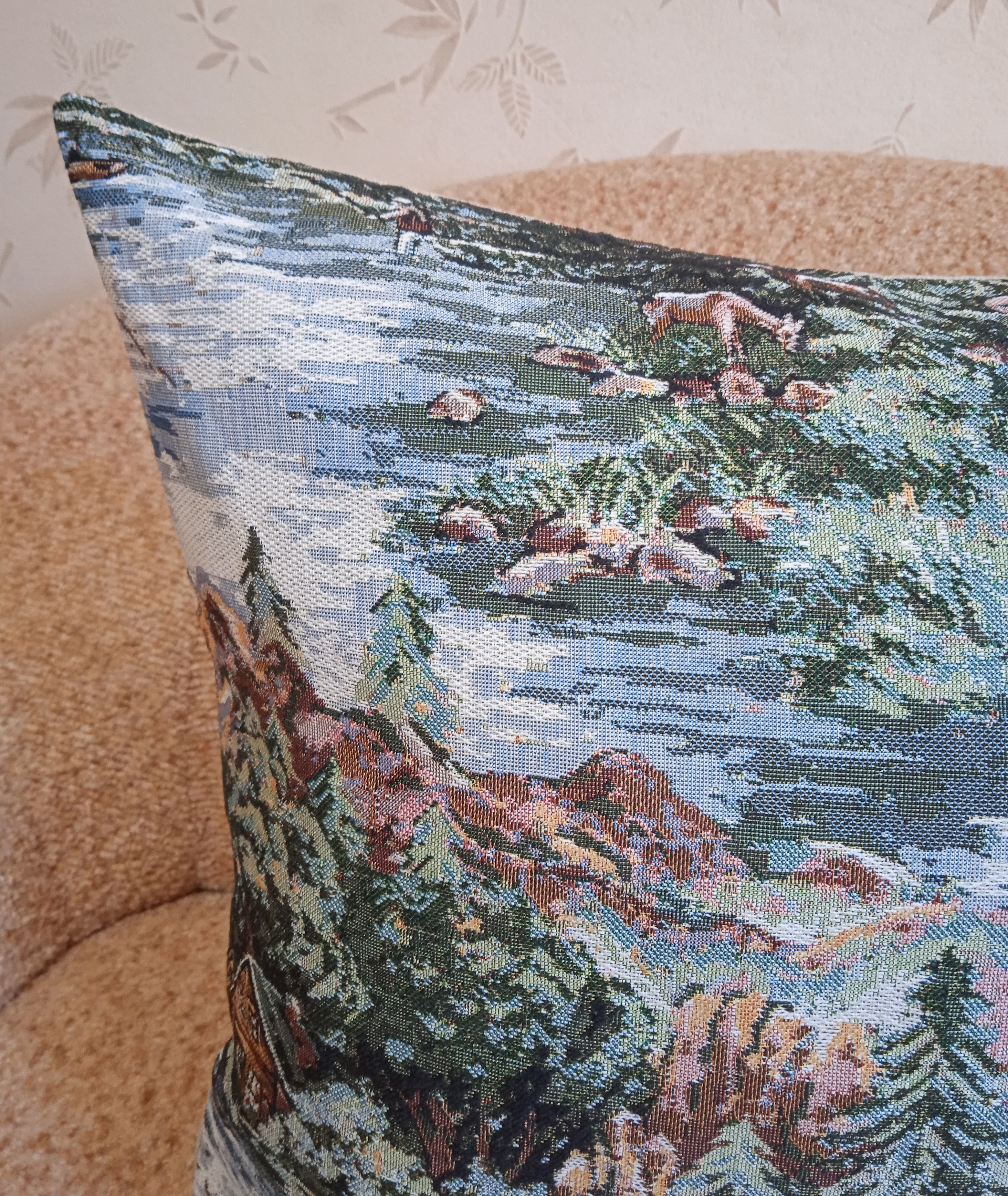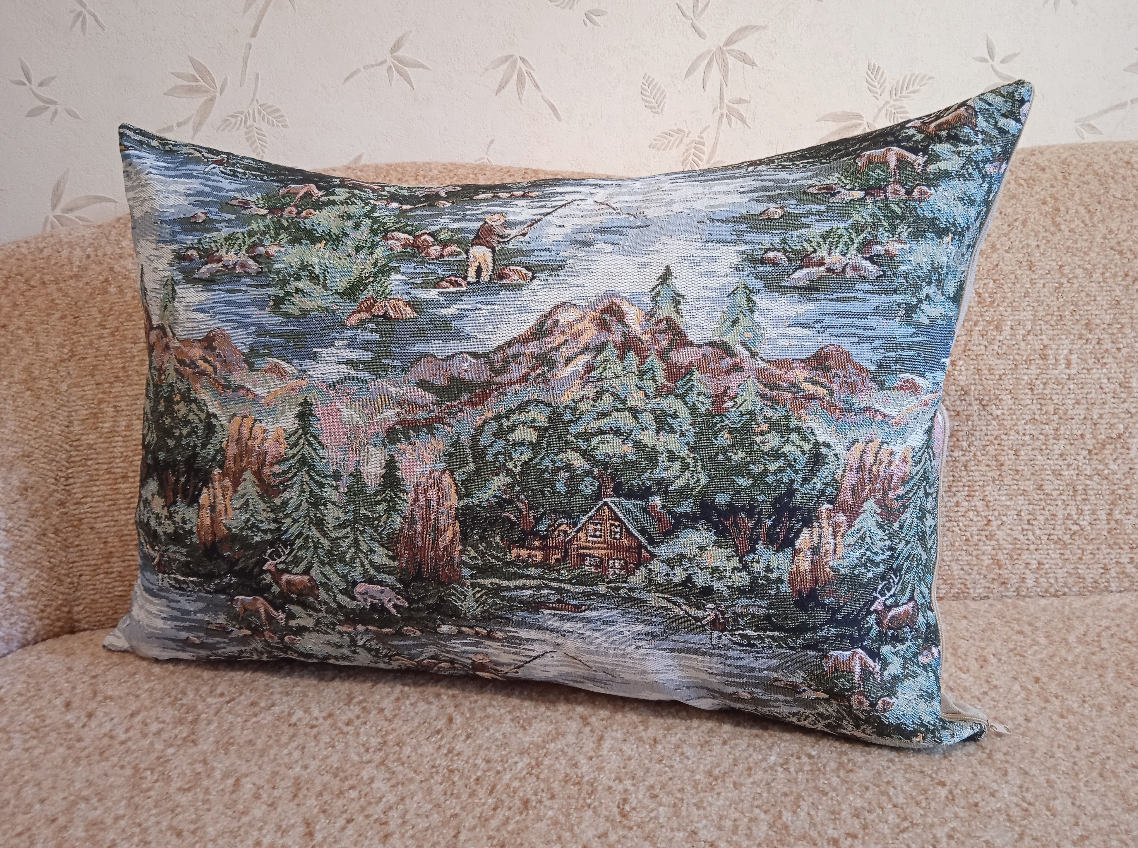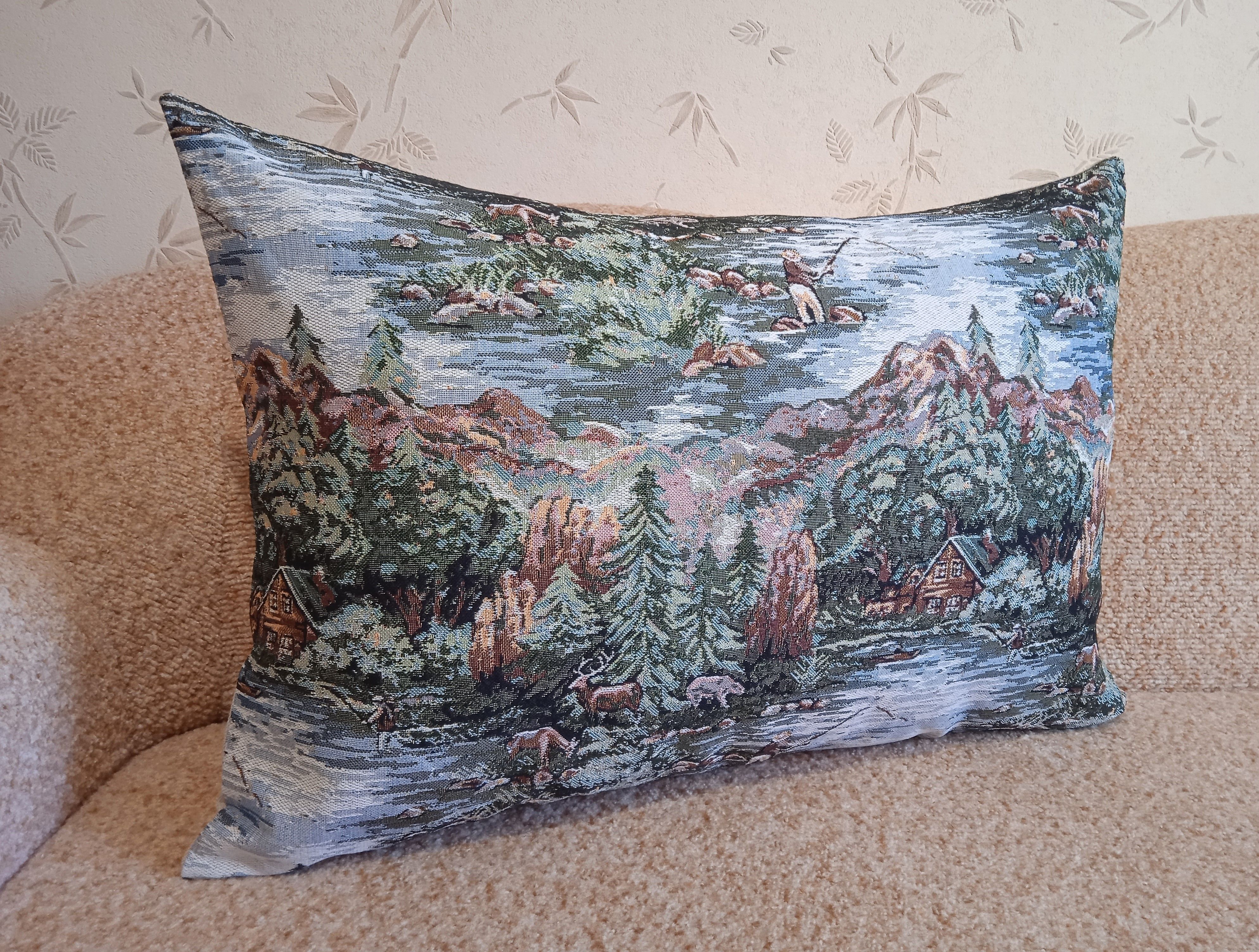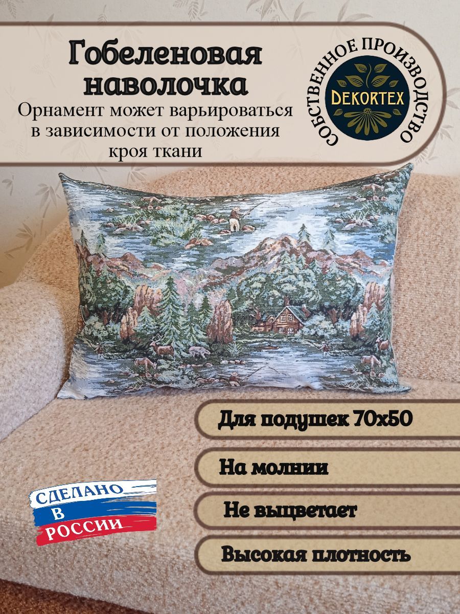 Гобеленовый чехол для декоративной подушки. Размер чехла: 68x47 см. производство Россия. Изделие собственного производства сшито из отечественной жаккардовой ткани. Задняя часть выполнена из мебельной рогожки так же Российского производства. Все ткани используемые для производства декоративного чехла производятся с соблюдением ТУ и ГОСТ Р.Ф. Собственное швейное производство позволяет контролировать качество продукции на всех этапах до поступления на склад и предлагать покупателям товары высокого качества по выгодным ценам. Состав ткани 100% полиэстер. Плотность гобелена 380 г/кв.м. Продается без подушки-наполнителя. Подушку-наполнитель так же можно купить у нас. Размер чехла может отличаться от заявленного +/- 2 см. Подходит для подушки 70х50. Допускается деликатная машинная стирка при температуре 30 градусов. Гладить при средней температуре.