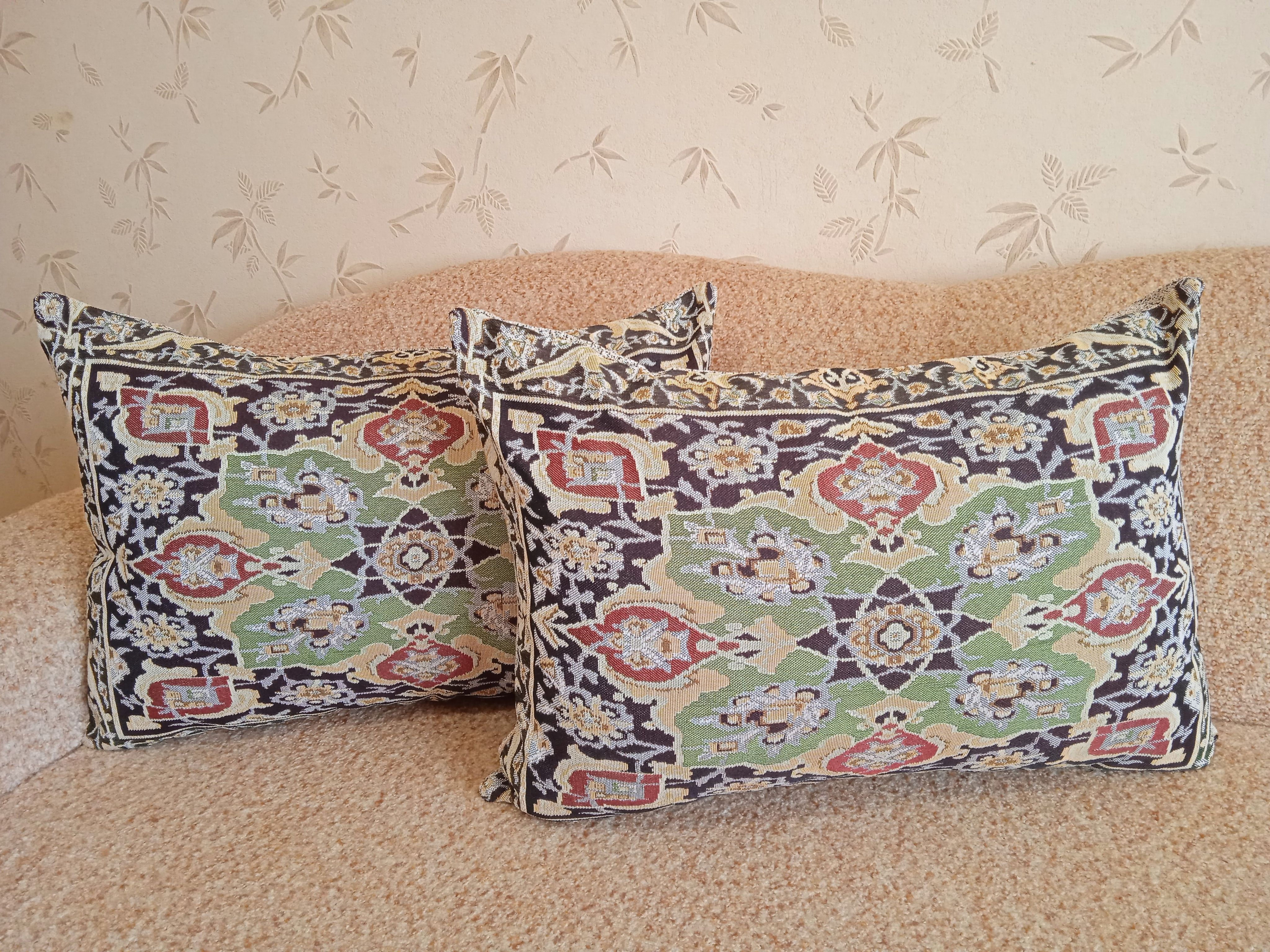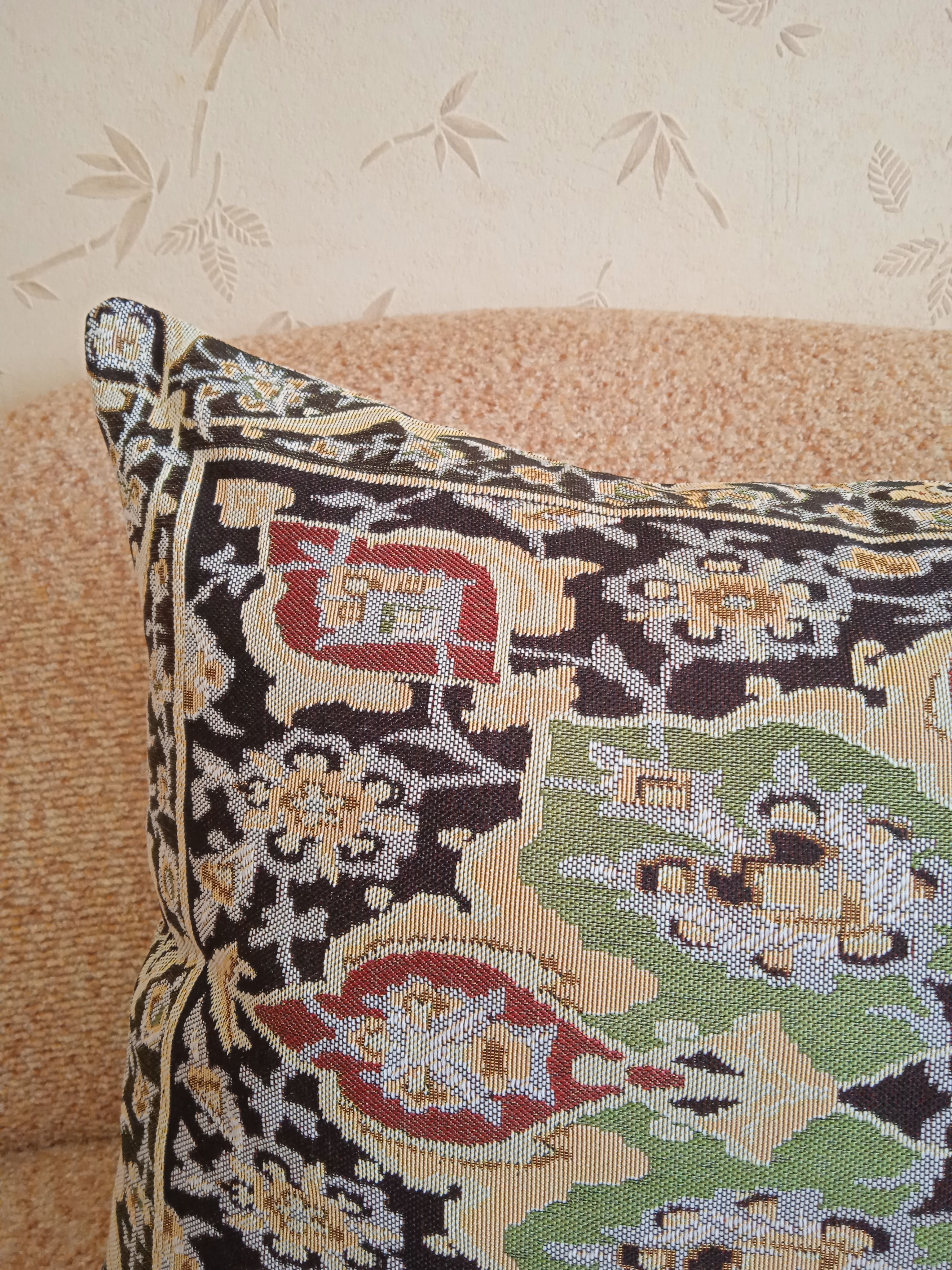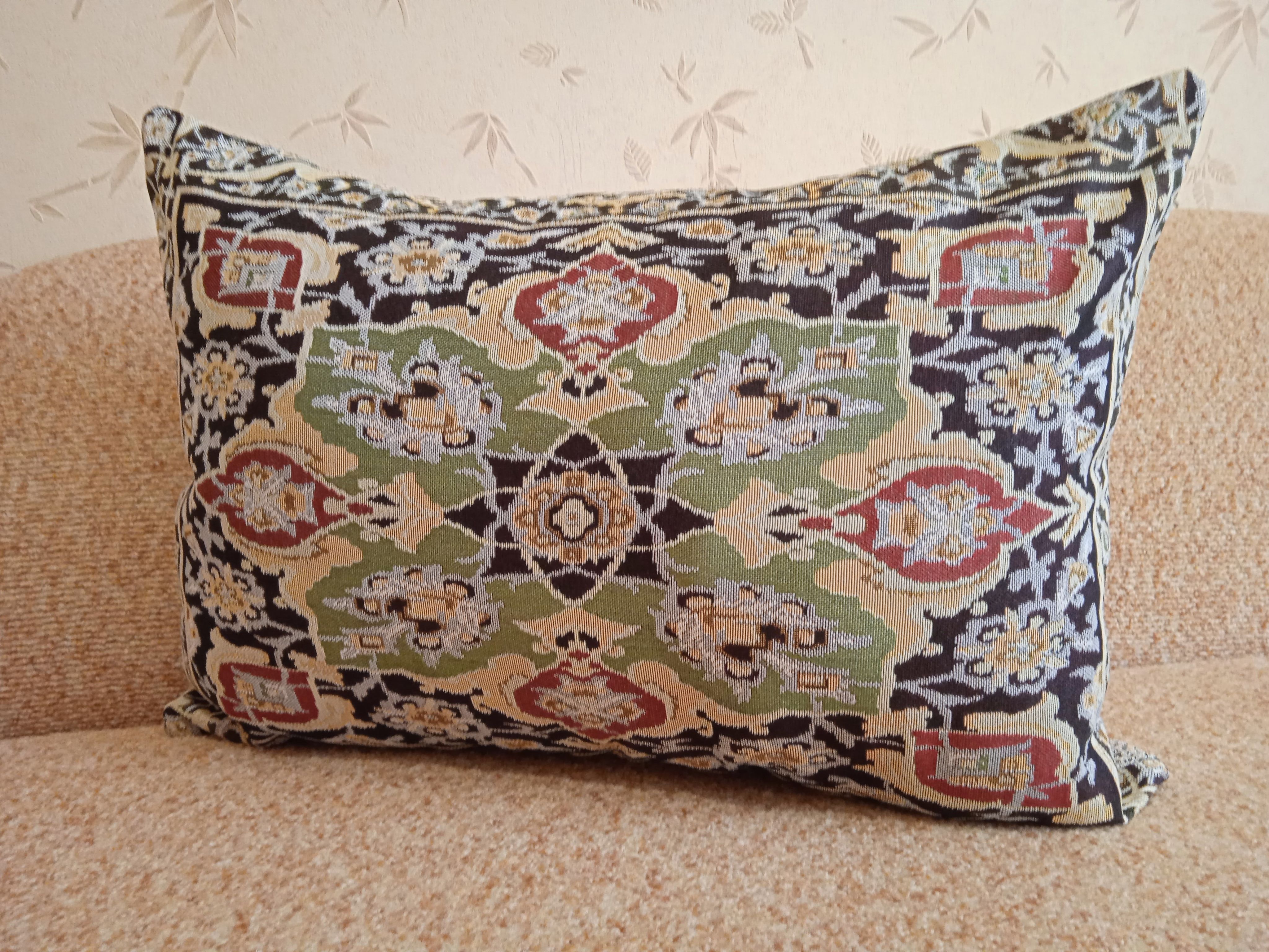 Гобеленовый чехол для декоративной подушки. Размер чехла: 68x47 см. производство Россия. Изделие собственного производства сшито из отечественной жаккардовой ткани. Задняя часть выполнена из мебельной рогожки так же Российского производства. Все ткани используемые для производства декоративного чехла производятся с соблюдением ТУ и ГОСТ Р.Ф. Собственное швейное производство позволяет контролировать качество продукции на всех этапах до поступления на склад и предлагать покупателям товары высокого качества по выгодным ценам. Состав ткани 100% полиэстер. Плотность гобелена 380 г/кв.м. Продается без подушки-наполнителя. Подушку-наполнитель так же можно купить у нас. Размер чехла может отличаться от заявленного +/- 2 см. Подходит для подушки 70х50. Допускается деликатная машинная стирка при температуре 30 градусов. Гладить при средней температуре.