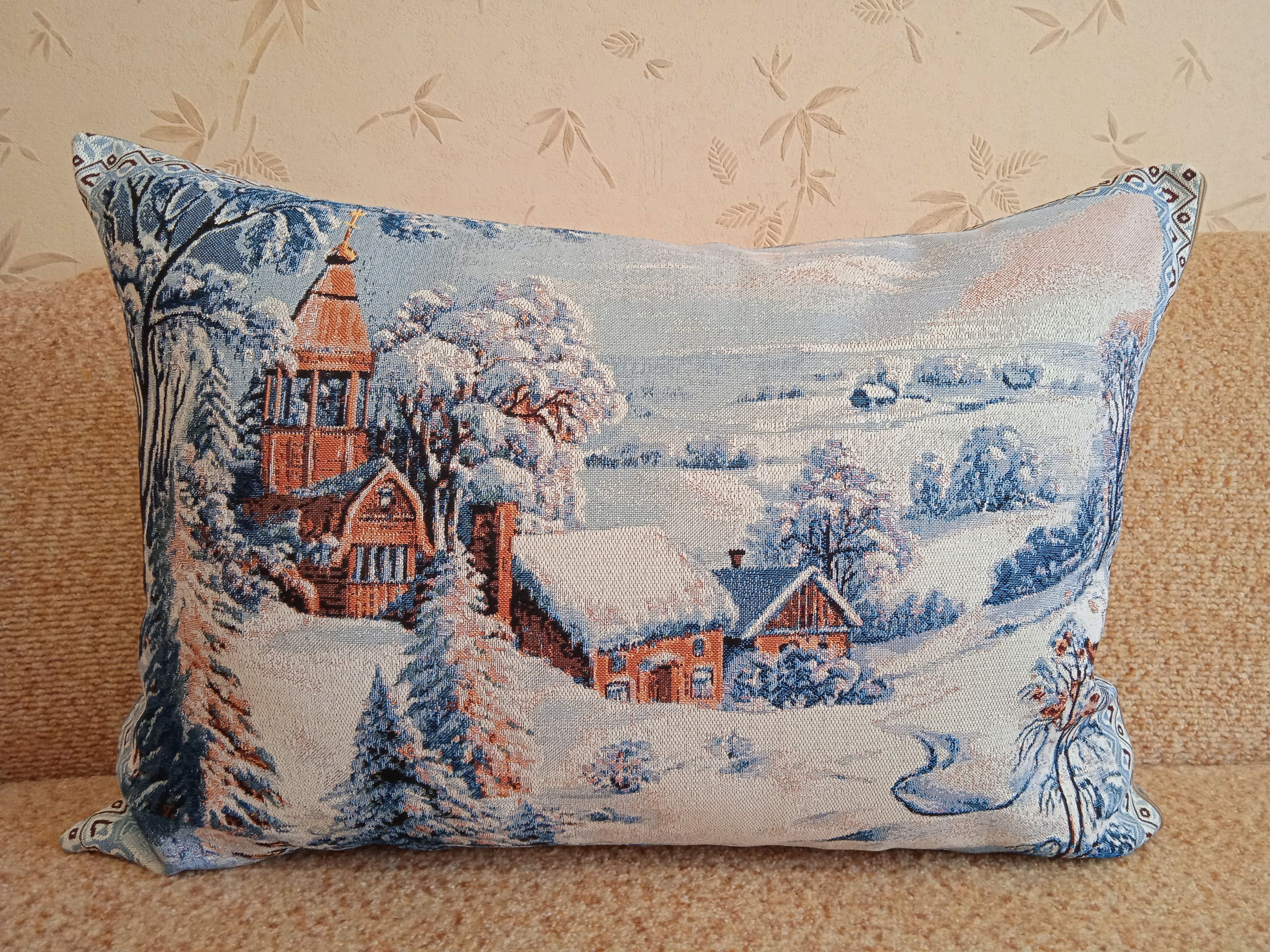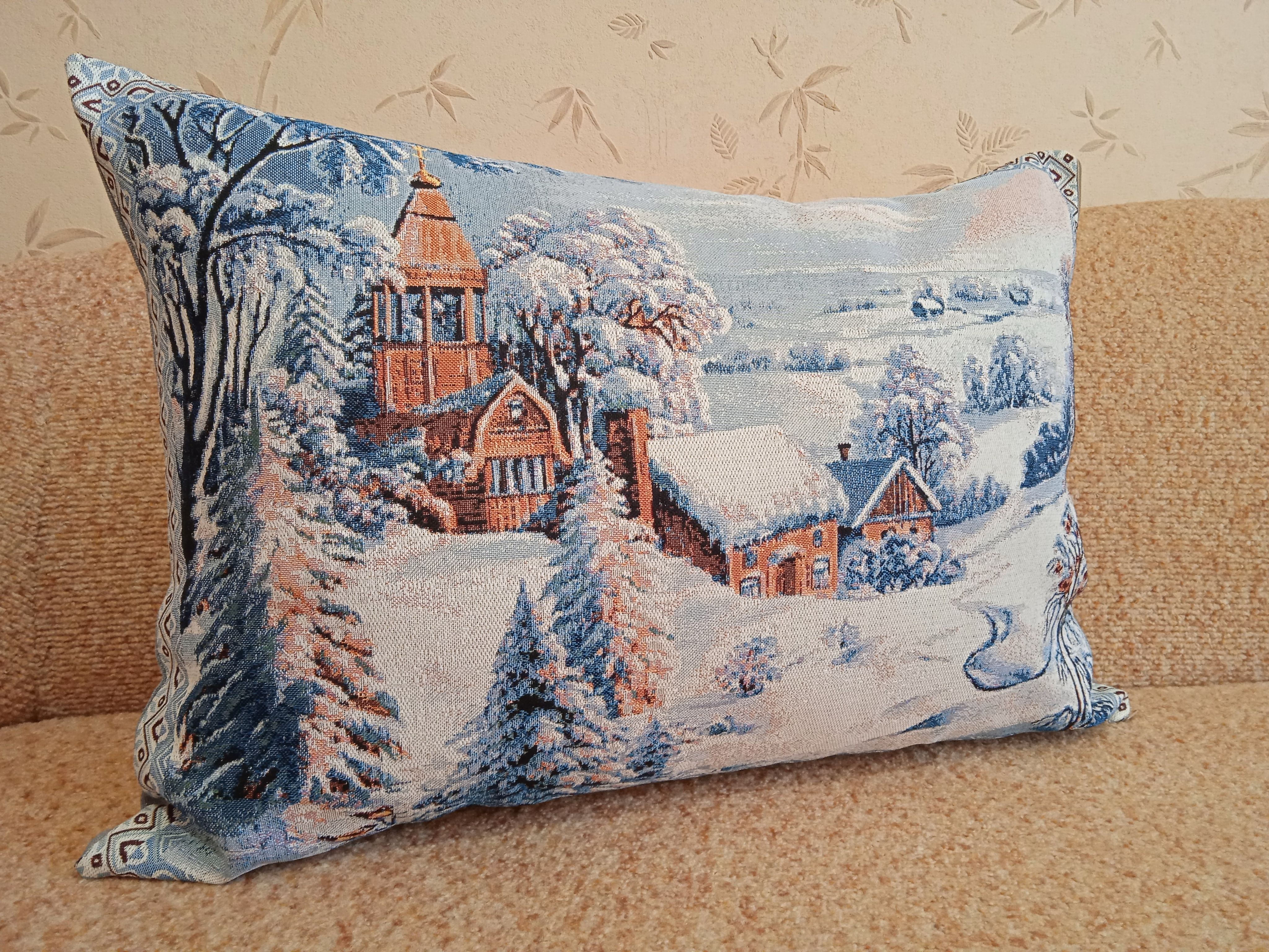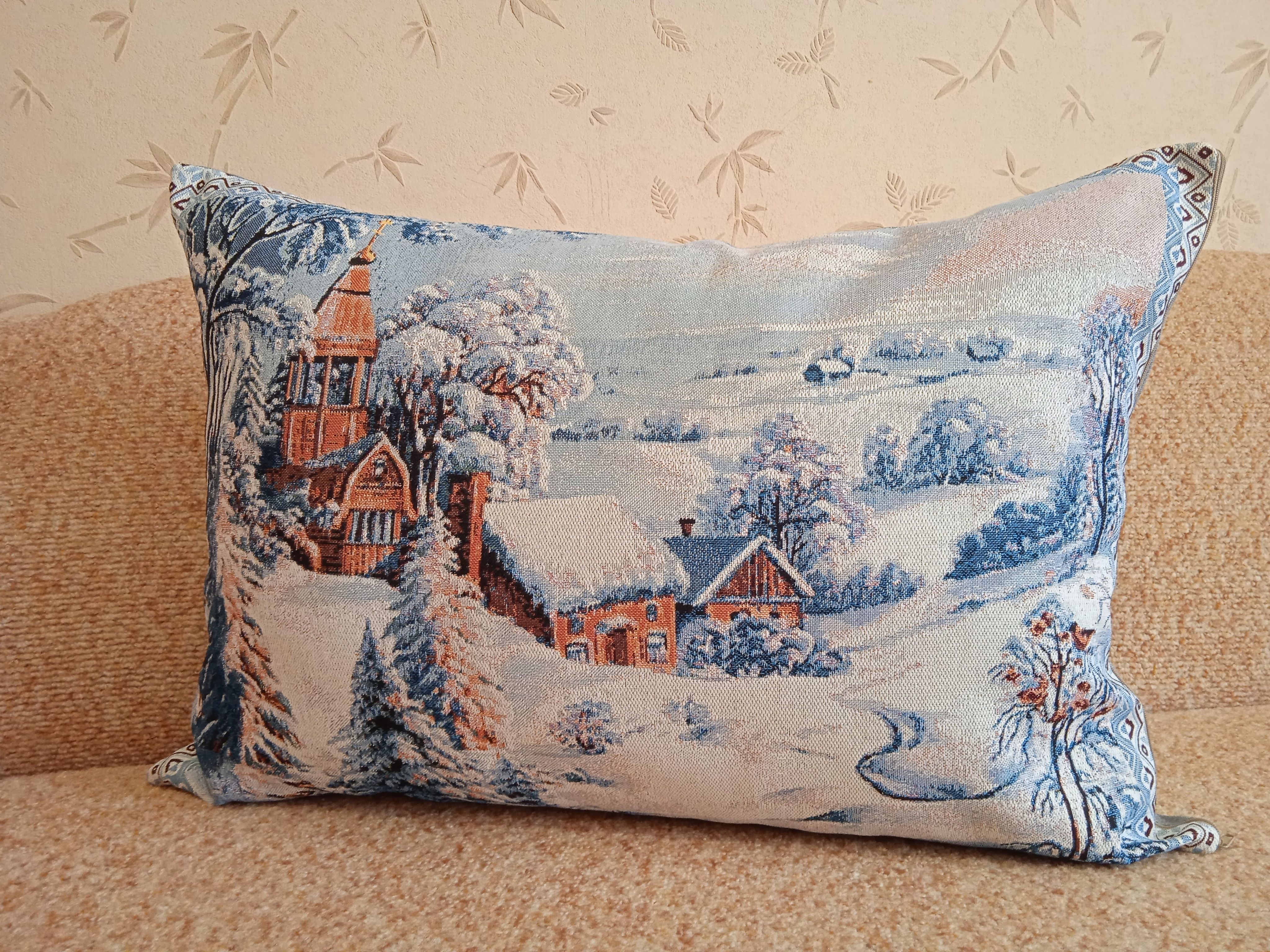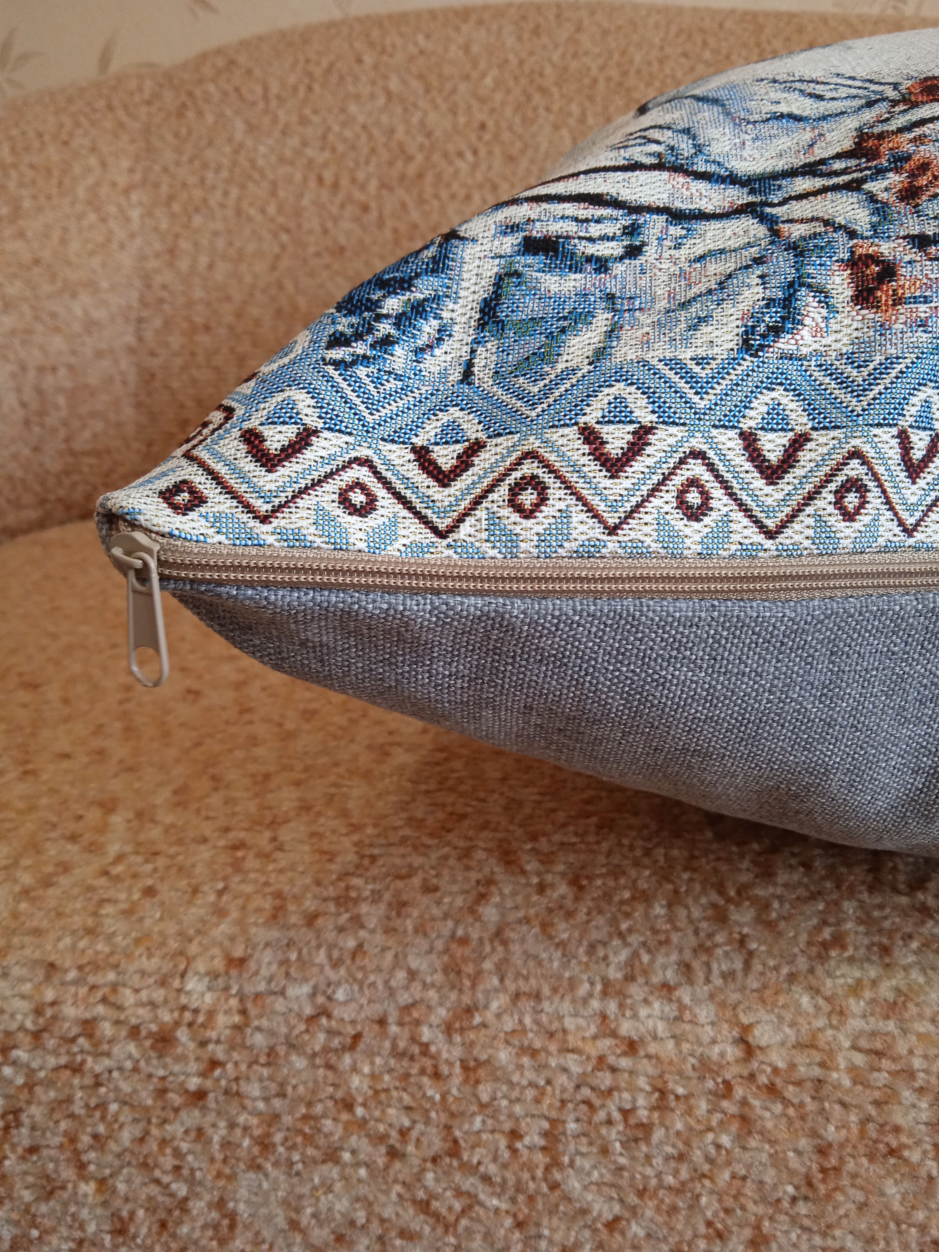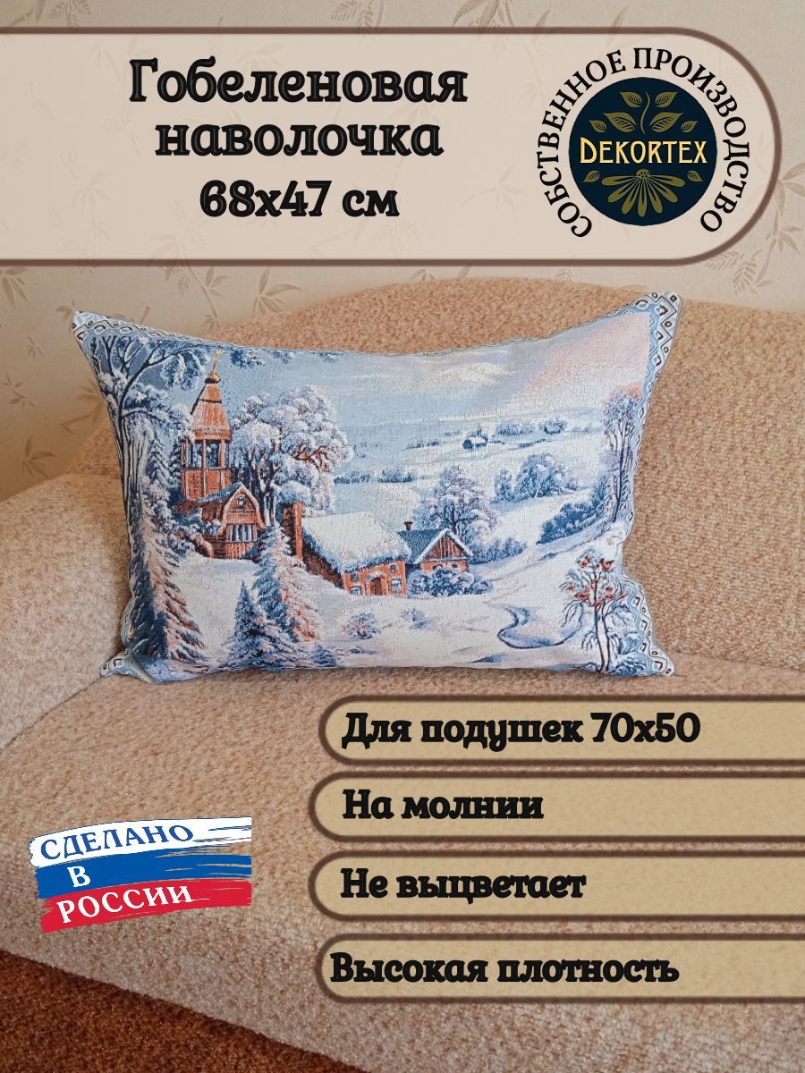 Гобеленовый чехол для декоративной подушки. Размер чехла: 68x47 см. производство Россия. Изделие собственного производства сшито из отечественной жаккардовой ткани. Задняя часть выполнена из мебельной рогожки так же Российского производства. Все ткани используемые для производства декоративного чехла производятся с соблюдением ТУ и ГОСТ Р.Ф. Собственное швейное производство позволяет контролировать качество продукции на всех этапах до поступления на склад и предлагать покупателям товары высокого качества по выгодным ценам. Состав ткани 100% полиэстер. Плотность гобелена 380 г/кв.м. Продается без подушки-наполнителя. Подушку-наполнитель так же можно купить у нас. Размер чехла может отличаться от заявленного +/- 2 см. Подходит для подушки 70х50. Допускается деликатная машинная стирка при температуре 30 градусов. Гладить при средней температуре.