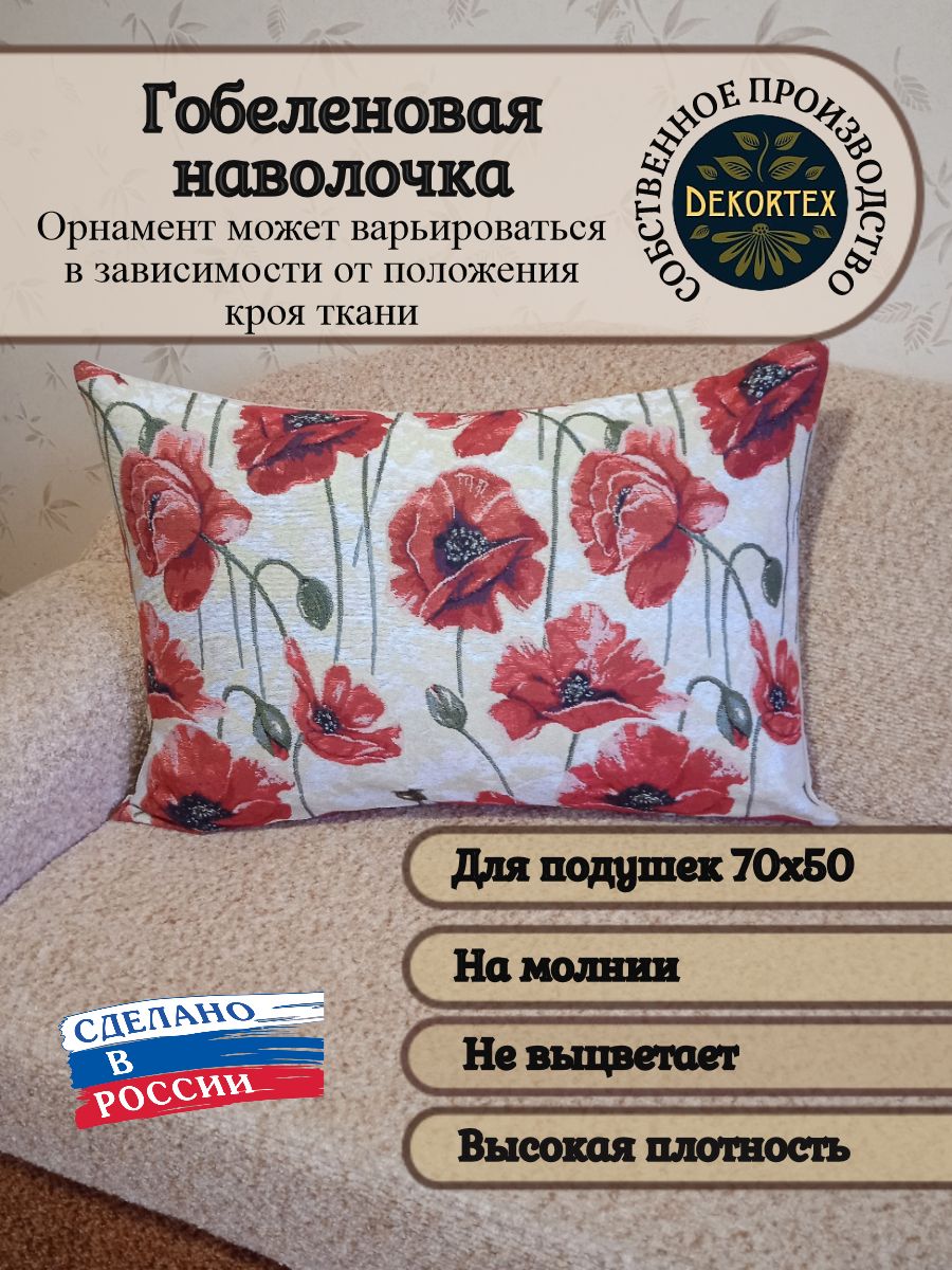 Гобеленовый чехол для декоративной подушки. Размер чехла: 68x47 см. производство Россия. Изделие собственного производства сшито из отечественной жаккардовой ткани. Задняя часть выполнена из мебельной рогожки так же Российского производства. Все ткани используемые для производства декоративного чехла производятся с соблюдением ТУ и ГОСТ Р.Ф. Собственное швейное производство позволяет контролировать качество продукции на всех этапах до поступления на склад и предлагать покупателям товары высокого качества по выгодным ценам. Состав ткани 100% полиэстер. Плотность гобелена 380 г/кв.м. Продается без подушки-наполнителя. Подушку-наполнитель так же можно купить у нас. Размер чехла может отличаться от заявленного +/- 2 см. Подходит для подушки 70х50. Допускается деликатная машинная стирка при температуре 30 градусов. Гладить при средней температуре.