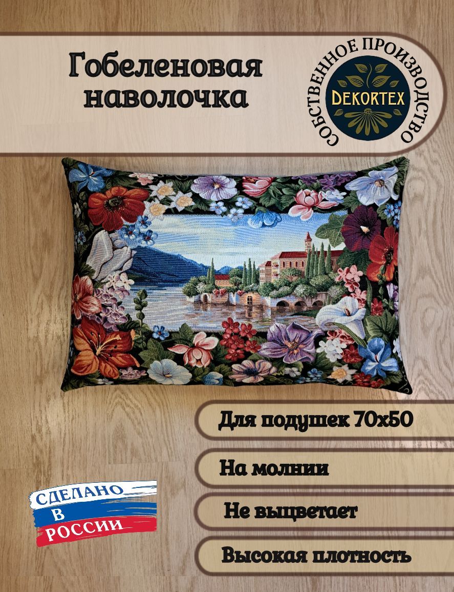 Гобеленовый чехол для декоративной подушки. Размер чехла: 68x47 см. производство Россия. Изделие собственного производства сшито из отечественной жаккардовой ткани. Задняя часть выполнена из мебельной рогожки так же Российского производства. Все ткани используемые для производства декоративного чехла производятся с соблюдением ТУ и ГОСТ Р.Ф. Собственное швейное производство позволяет контролировать качество продукции на всех этапах до поступления на склад и предлагать покупателям товары высокого качества по выгодным ценам. Состав ткани 100% полиэстер. Плотность гобелена 380 г/кв.м. Продается без подушки-наполнителя. Подушку-наполнитель так же можно купить у нас. Размер чехла может отличаться от заявленного +/- 2 см. Подходит для подушки 70х50. Допускается деликатная машинная стирка при температуре 30 градусов. Гладить при средней температуре.