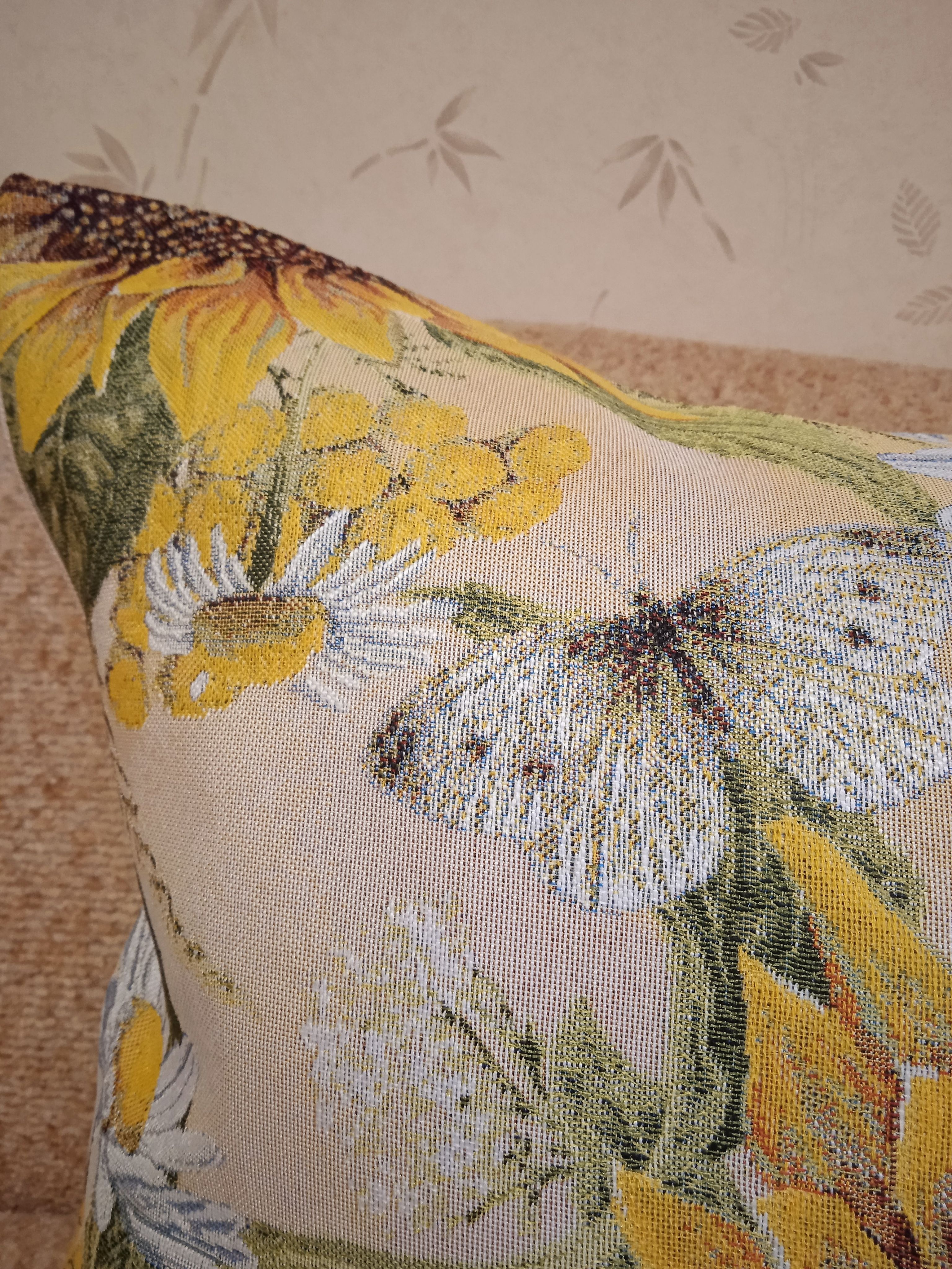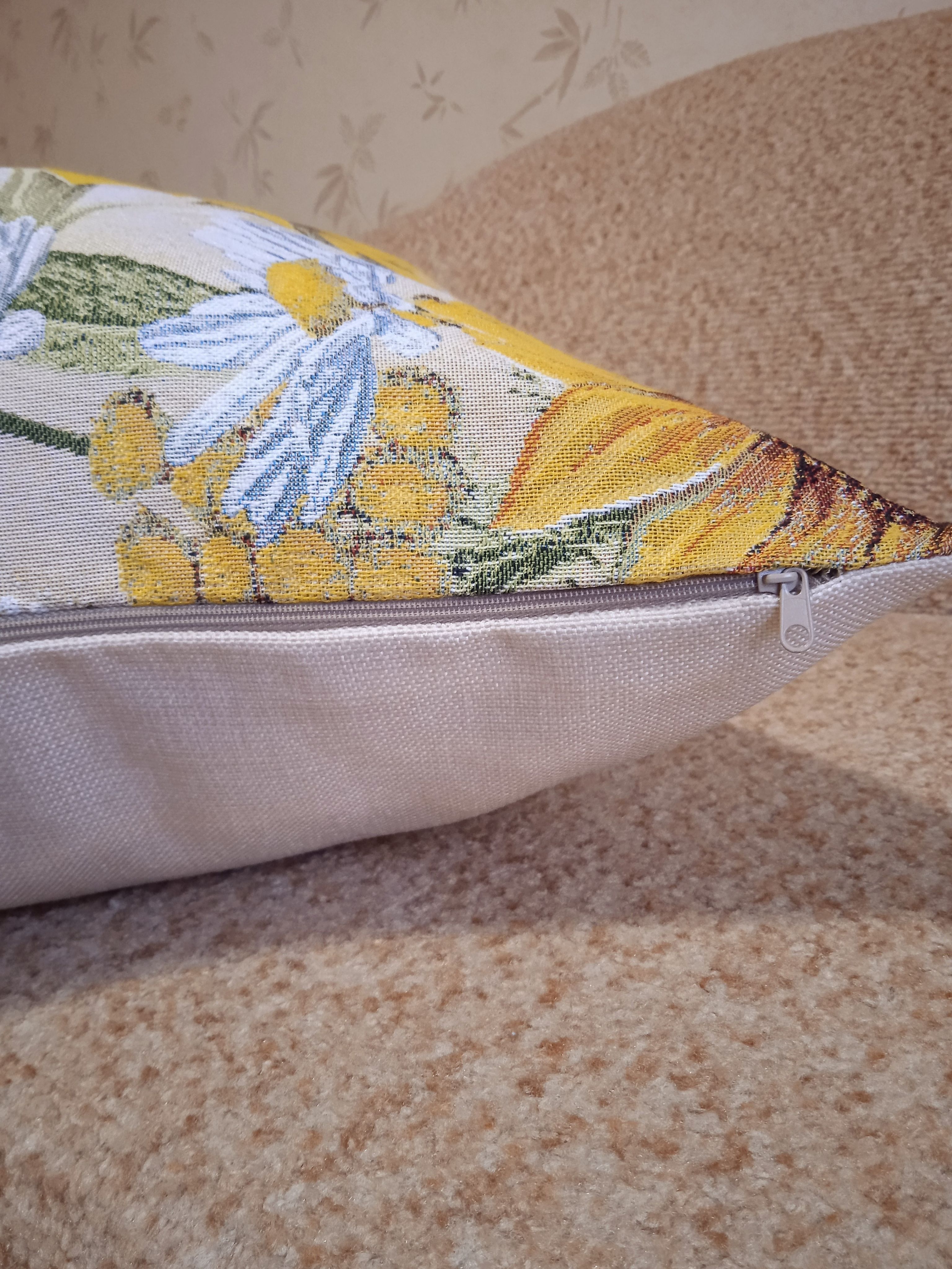 Гобеленовый чехол для декоративной подушки. Размер чехла: 68x47 см. производство Россия. Изделие собственного производства сшито из отечественной жаккардовой ткани. Задняя часть выполнена из мебельной рогожки так же Российского производства. Все ткани используемые для производства декоративного чехла производятся с соблюдением ТУ и ГОСТ Р.Ф. Собственное швейное производство позволяет контролировать качество продукции на всех этапах до поступления на склад и предлагать покупателям товары высокого качества по выгодным ценам. Состав ткани 100% полиэстер. Плотность гобелена 380 г/кв.м. Продается без подушки-наполнителя. Подушку-наполнитель так же можно купить у нас. Размер чехла может отличаться от заявленного +/- 2 см. Допускается деликатная машинная стирка при температуре 30 градусов. Гладить при средней температуре.