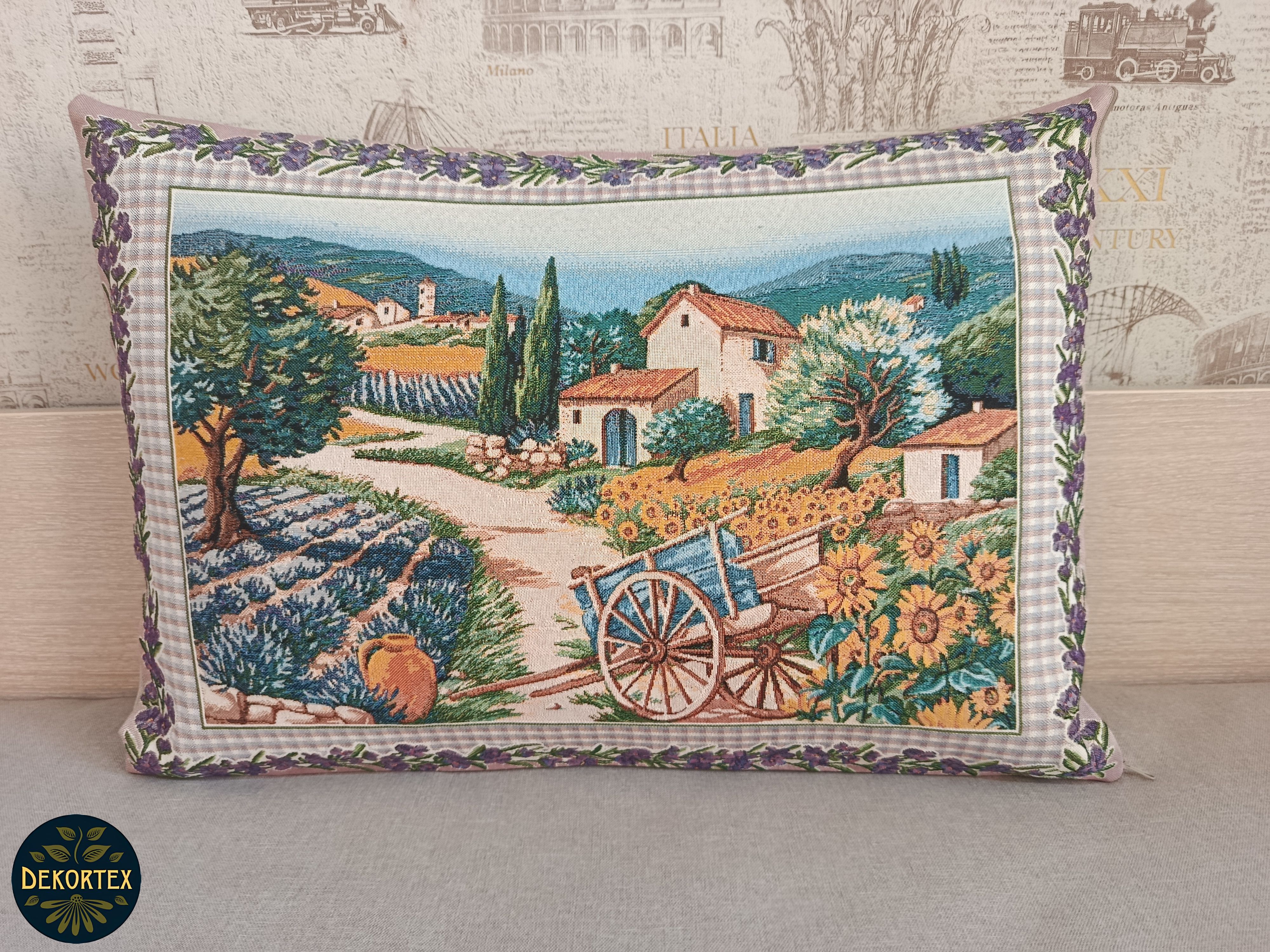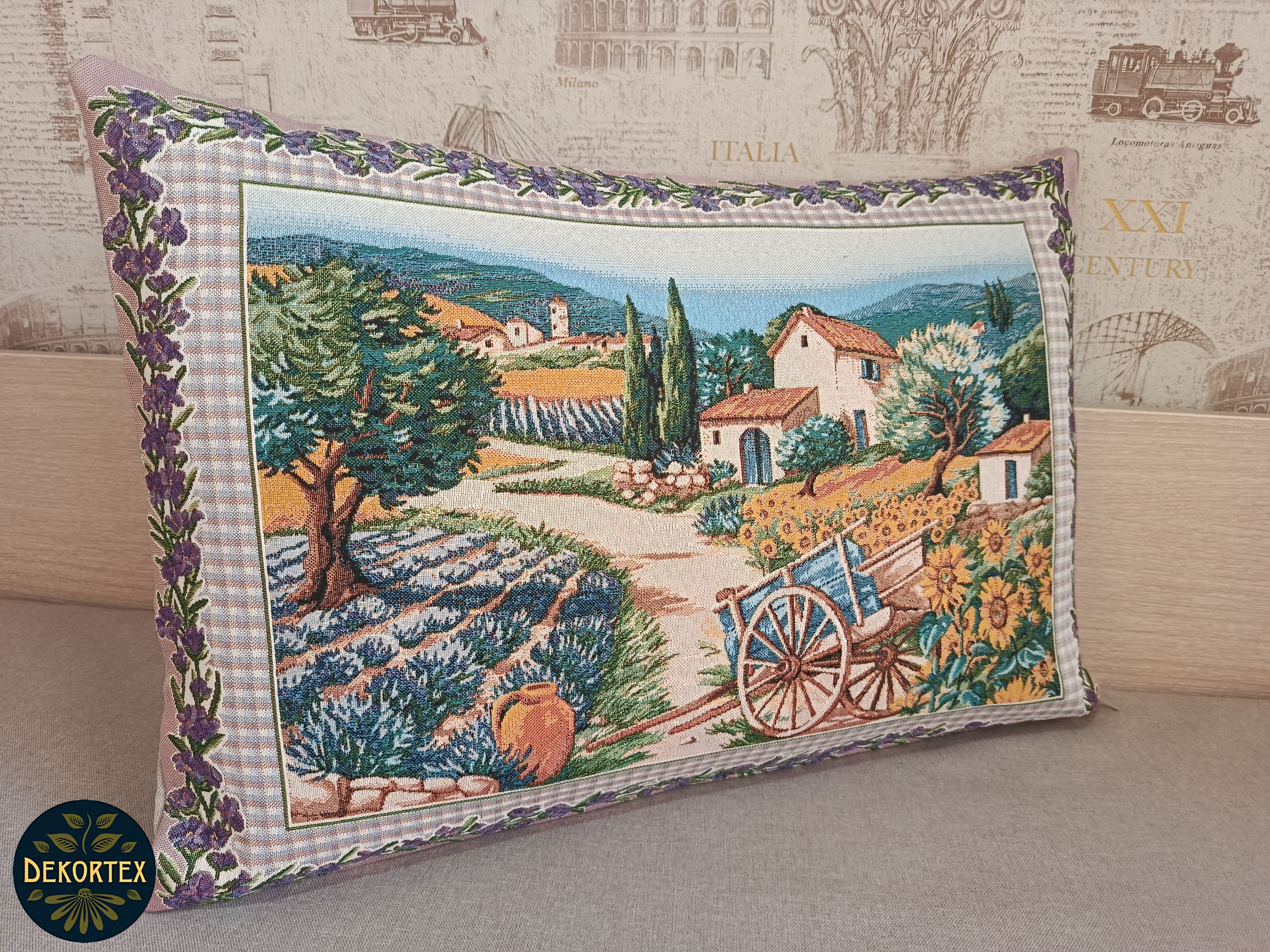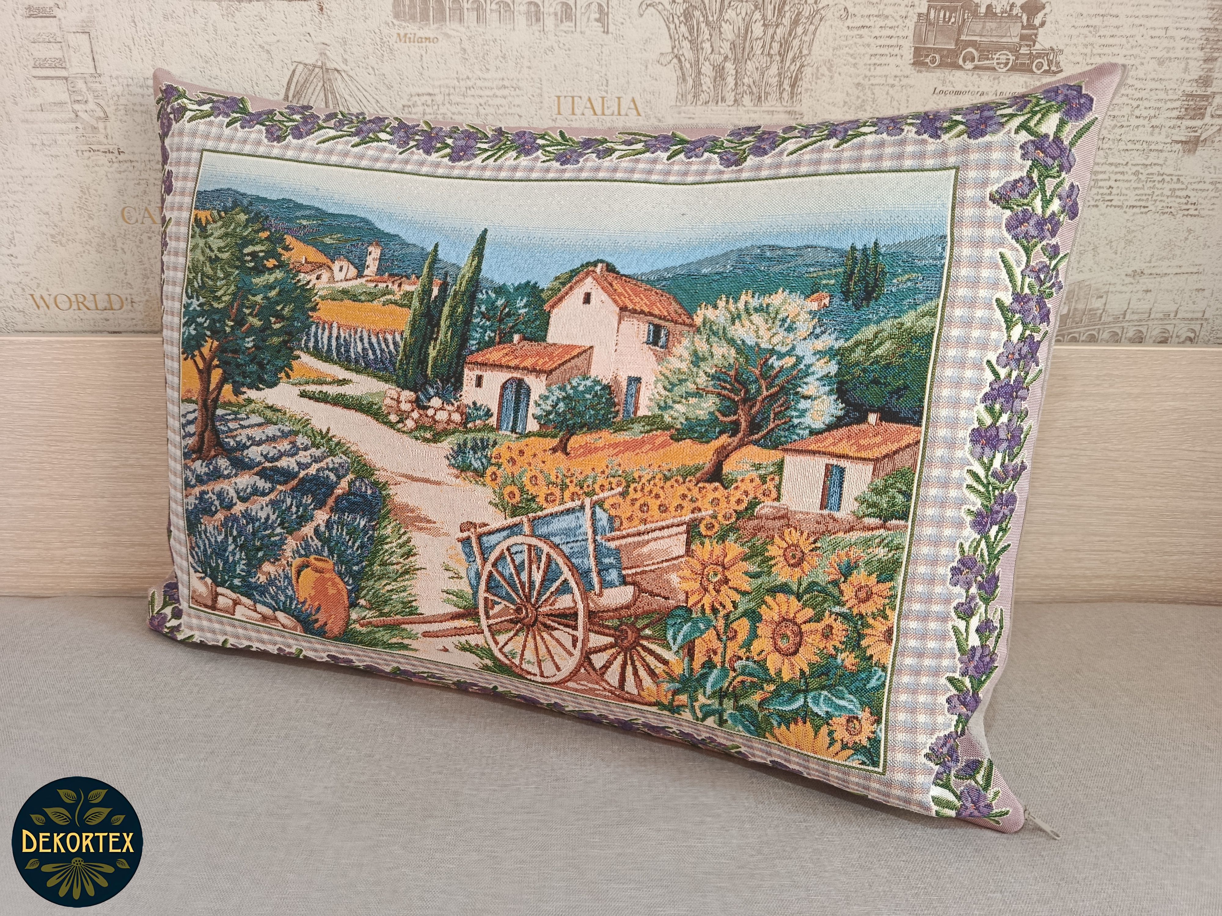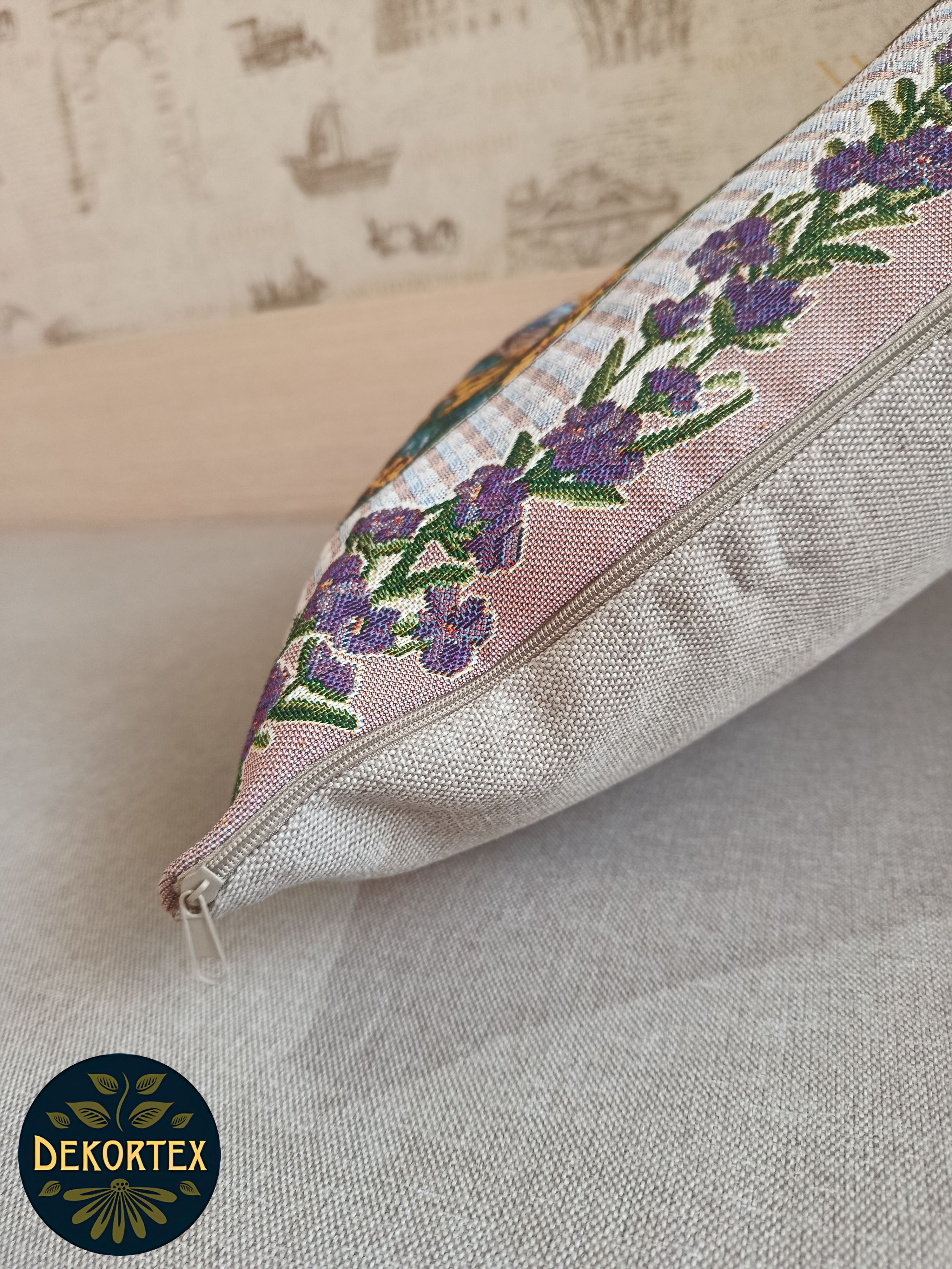 Гобеленовый чехол для декоративной подушки. Размер чехла: 68x47 см. производство Россия. Изделие собственного производства сшито из отечественной жаккардовой ткани. Задняя часть выполнена из мебельной рогожки так же Российского производства. Все ткани используемые для производства декоративного чехла производятся с соблюдением ТУ и ГОСТ Р.Ф. Собственное швейное производство позволяет контролировать качество продукции на всех этапах до поступления на склад и предлагать покупателям товары высокого качества по выгодным ценам. Состав ткани 100% полиэстер. Плотность гобелена 380 г/кв.м. Продается без подушки-наполнителя. Подушку-наполнитель так же можно купить у нас. Размер чехла может отличаться от заявленного +/- 2 см. Подходит для подушки 70х50. Допускается деликатная машинная стирка при температуре 30 градусов. Гладить при средней температуре.