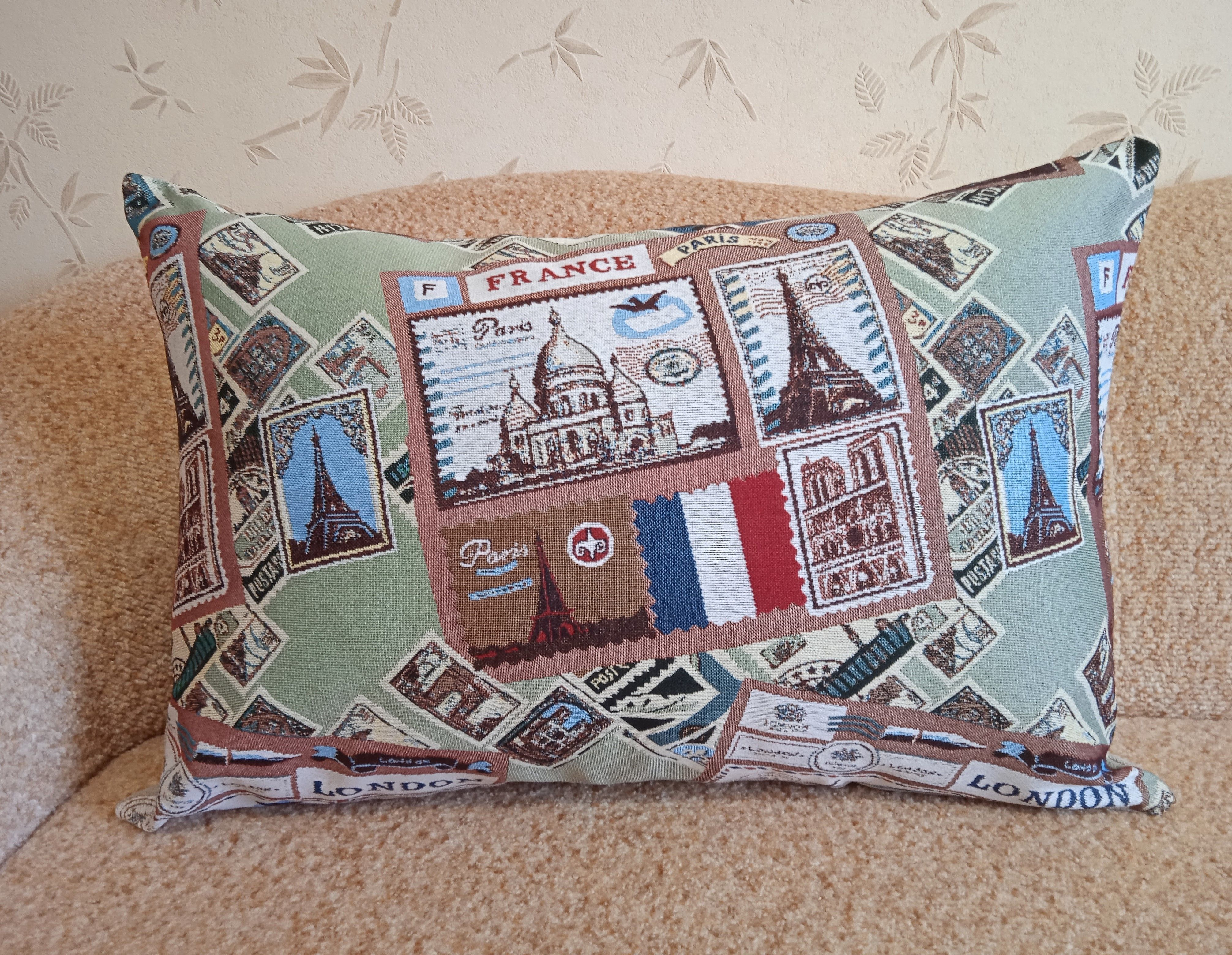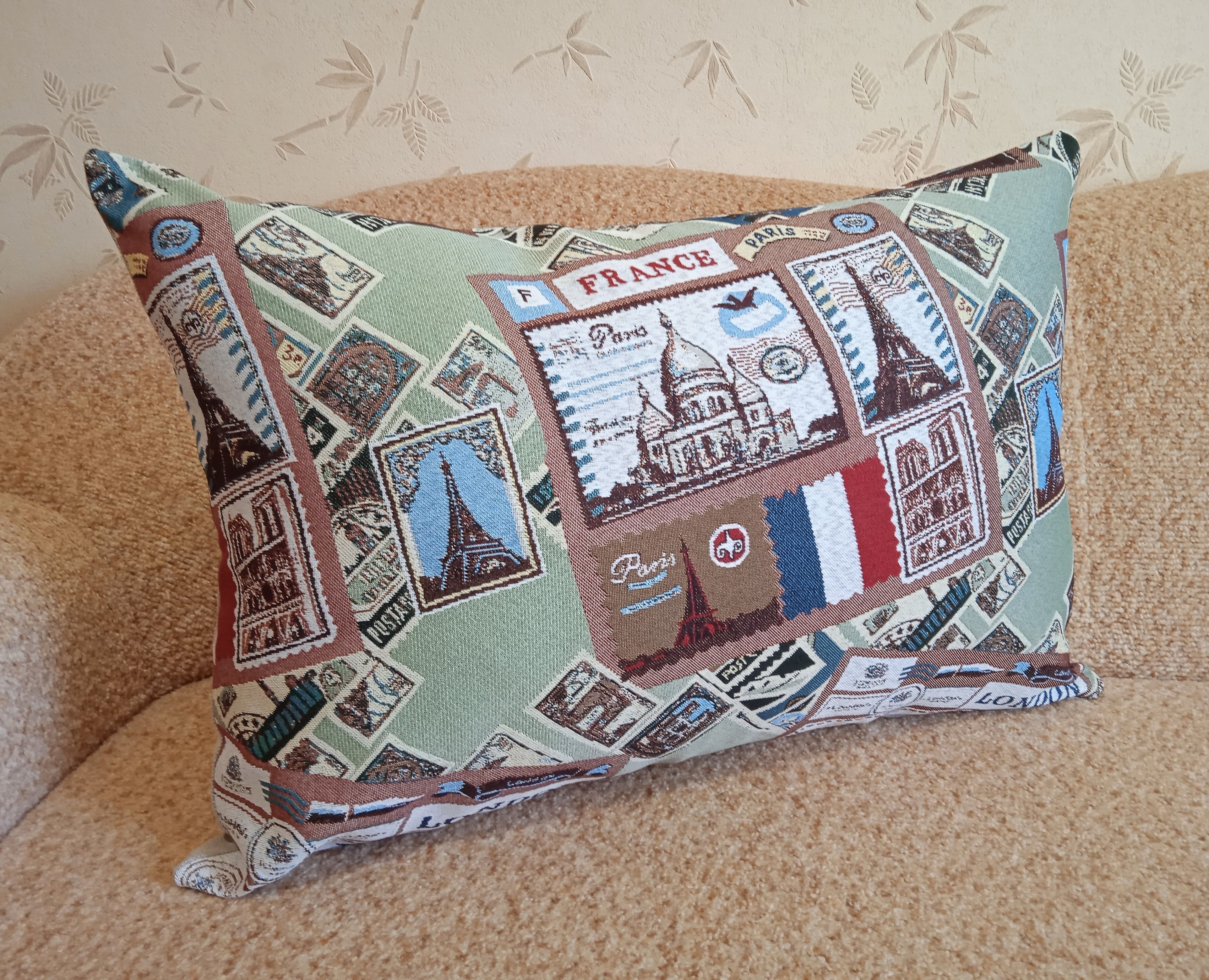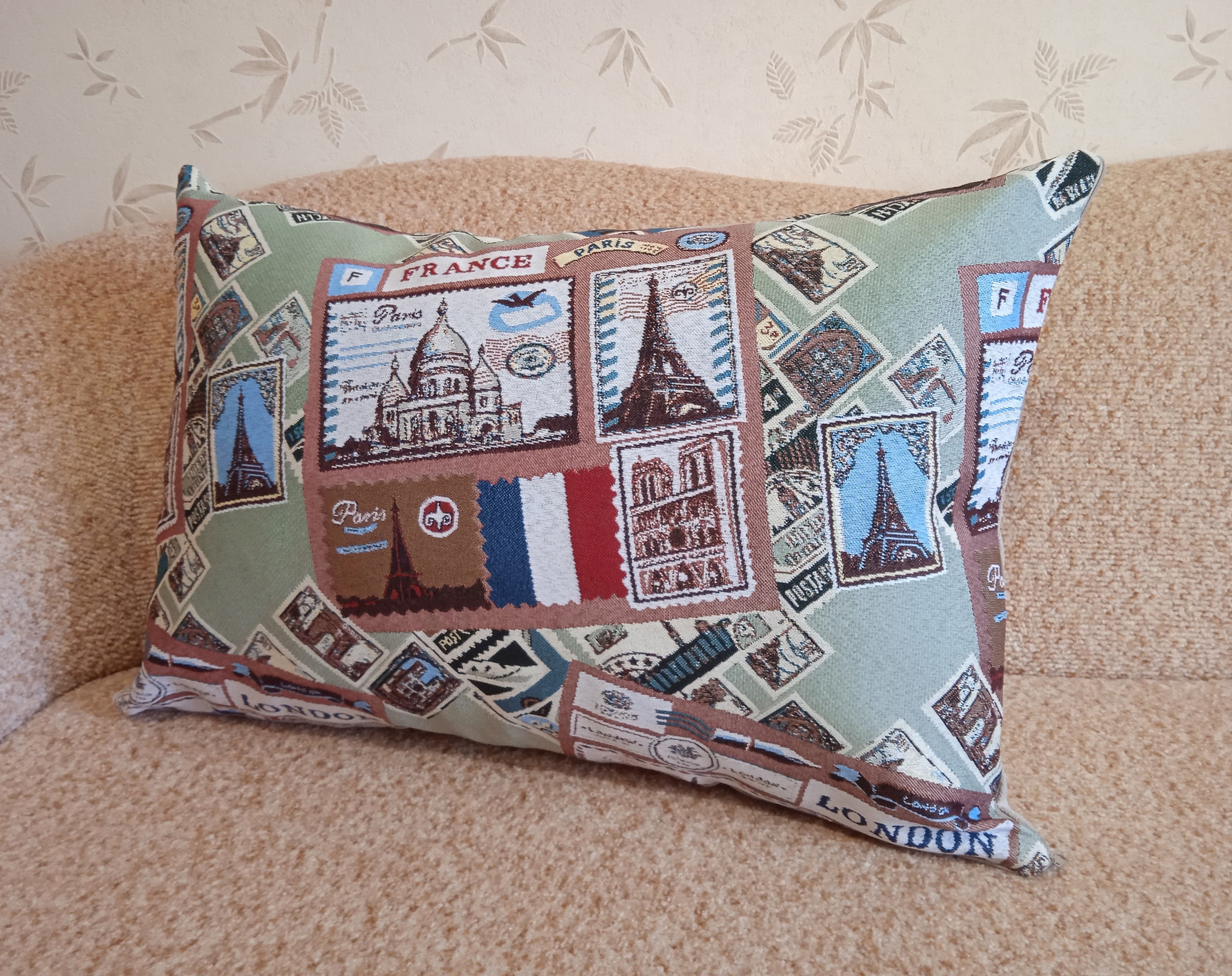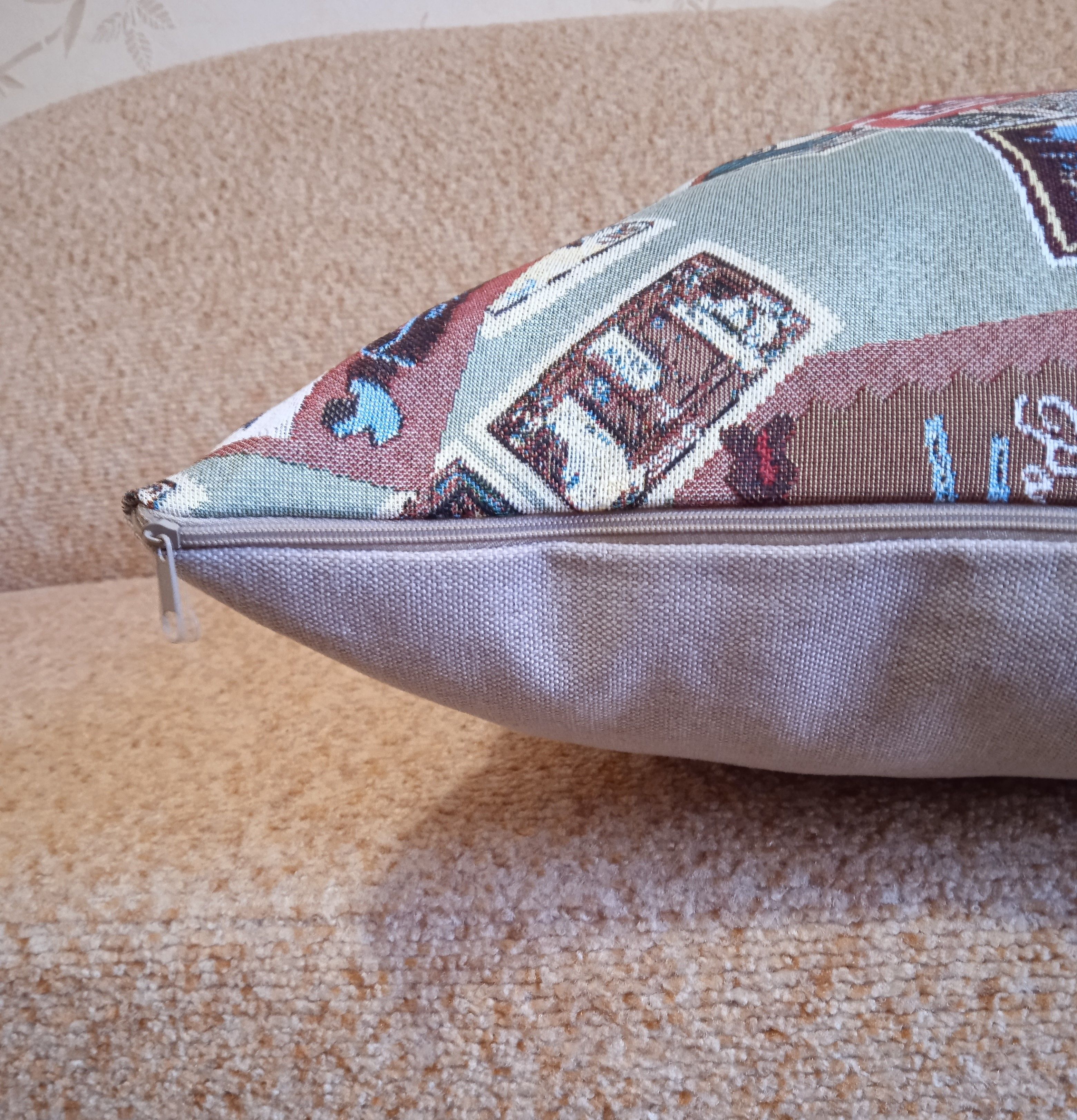 Гобеленовый чехол для декоративной подушки. Размер чехла: 68x47 см. производство Россия. Изделие собственного производства сшито из отечественной жаккардовой ткани. Задняя часть выполнена из мебельной рогожки так же Российского производства. Все ткани используемые для производства декоративного чехла производятся с соблюдением ТУ и ГОСТ Р.Ф. Собственное швейное производство позволяет контролировать качество продукции на всех этапах до поступления на склад и предлагать покупателям товары высокого качества по выгодным ценам. Состав ткани 100% полиэстер. Плотность гобелена 380 г/кв.м. Продается без подушки-наполнителя. Подушку-наполнитель так же можно купить у нас. Размер чехла может отличаться от заявленного +/- 2 см. Подходит для подушки 70х50. Допускается деликатная машинная стирка при температуре 30 градусов. Гладить при средней температуре.
