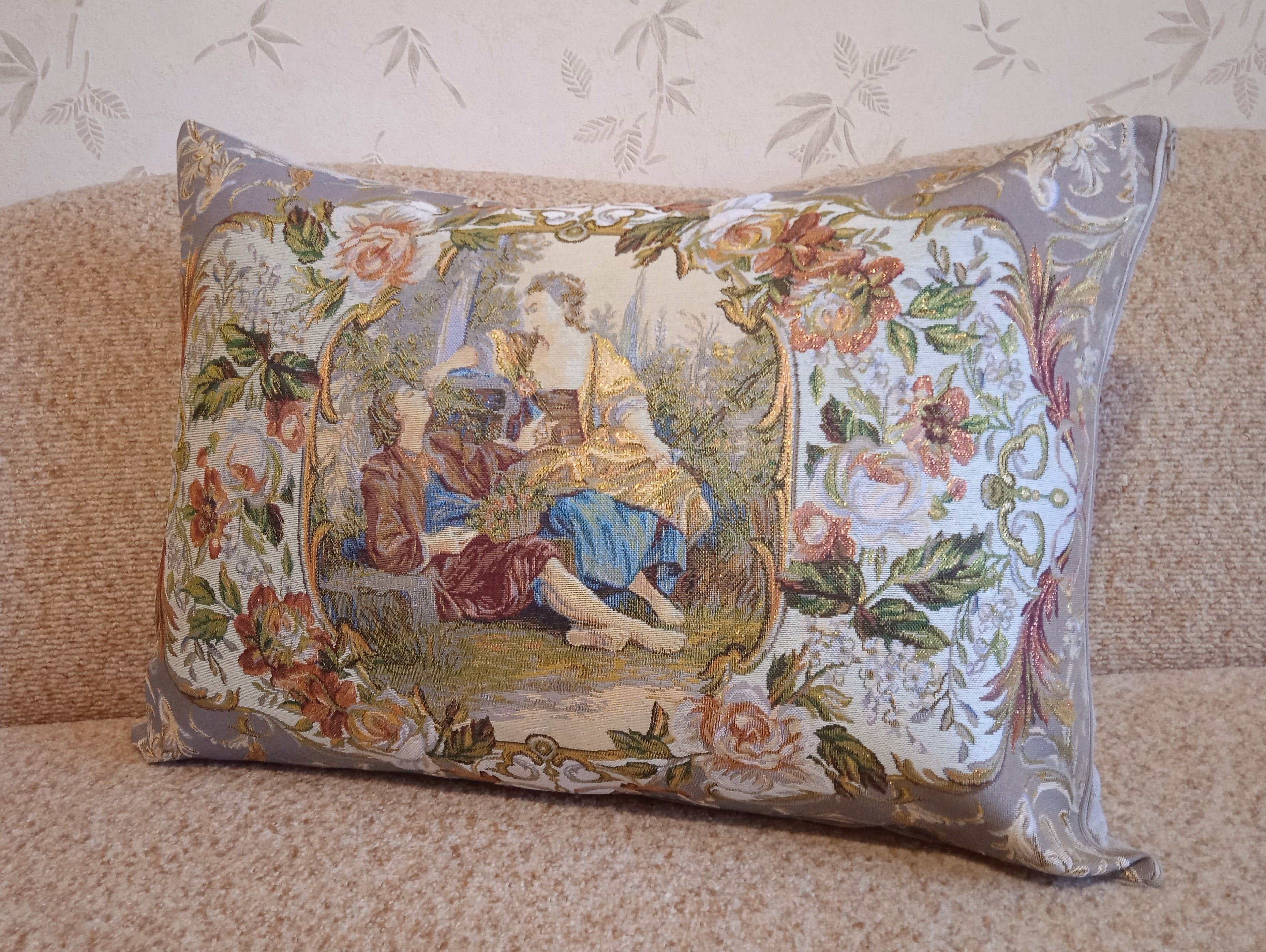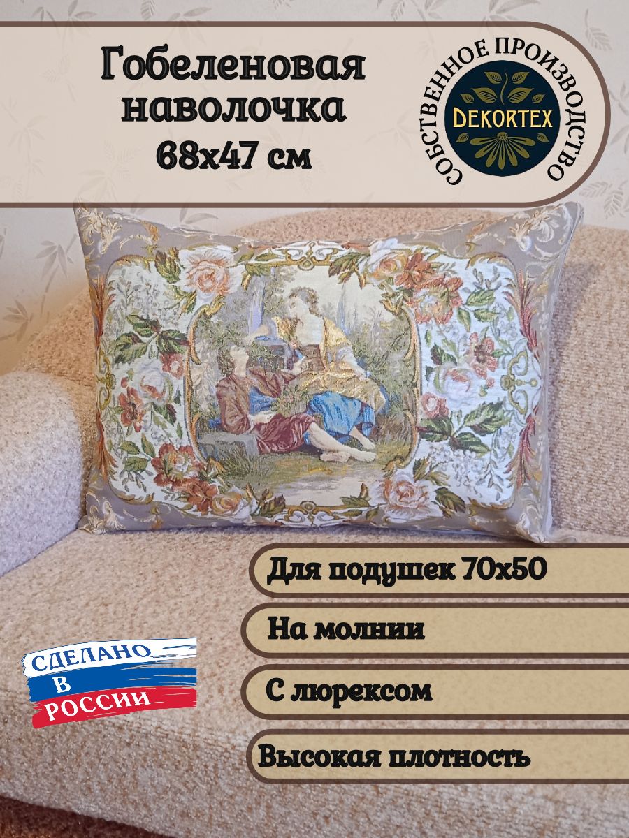 Гобеленовый чехол для декоративной подушки. Размер чехла: 68x47 см. производство Россия. Изделие собственного производства сшито из отечественной жаккардовой ткани. Задняя часть выполнена из мебельной рогожки так же Российского производства. Все ткани используемые для производства декоративного чехла производятся с соблюдением ТУ и ГОСТ Р.Ф. Собственное швейное производство позволяет контролировать качество продукции на всех этапах до поступления на склад и предлагать покупателям товары высокого качества по выгодным ценам. Состав ткани 100% полиэстер. Плотность гобелена 380 г/кв.м. Продается без подушки-наполнителя. Подушку-наполнитель так же можно купить у нас. Размер чехла может отличаться от заявленного +/- 2 см. Подходит для подушки 70х50. Допускается деликатная машинная стирка при температуре 30 градусов. Гладить при средней температуре.