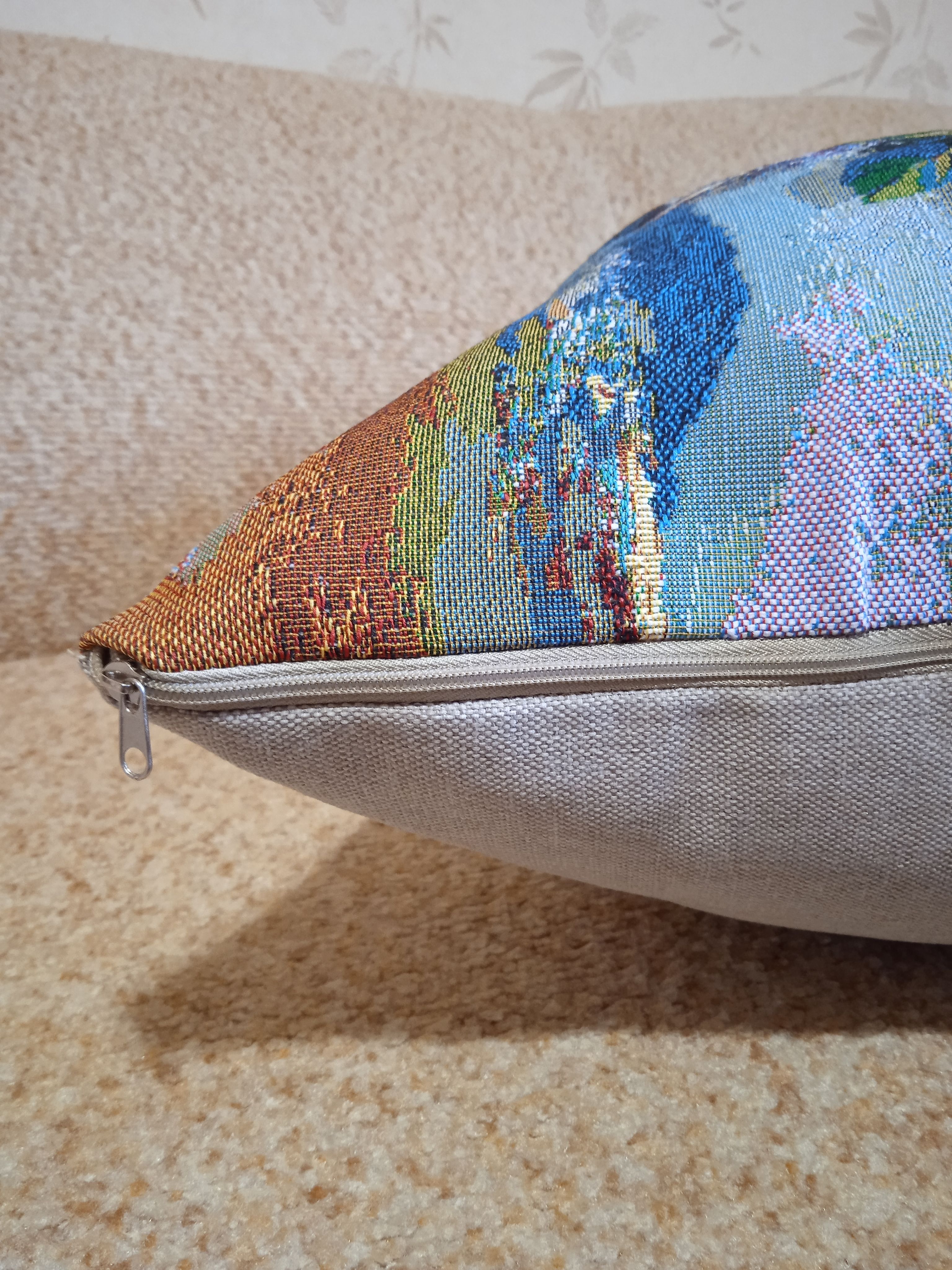 Гобеленовый чехол для декоративной подушки. Размер чехла: 63x47 см. производство Россия. Изделие собственного производства сшито из отечественной жаккардовой ткани. Задняя часть выполнена из мебельной рогожки так же Российского производства. Все ткани используемые для производства декоративного чехла производятся с соблюдением ТУ и ГОСТ Р.Ф. Собственное швейное производство позволяет контролировать качество продукции на всех этапах до поступления на склад и предлагать покупателям товары высокого качества по выгодным ценам. Состав ткани 100% полиэстер. Плотность гобелена 380 г/кв.м. Продается без подушки-наполнителя. Подушку-наполнитель так же можно купить у нас. Размер чехла может отличаться от заявленного +/- 2 см. Допускается деликатная машинная стирка при температуре 30 градусов. Гладить при средней температуре.