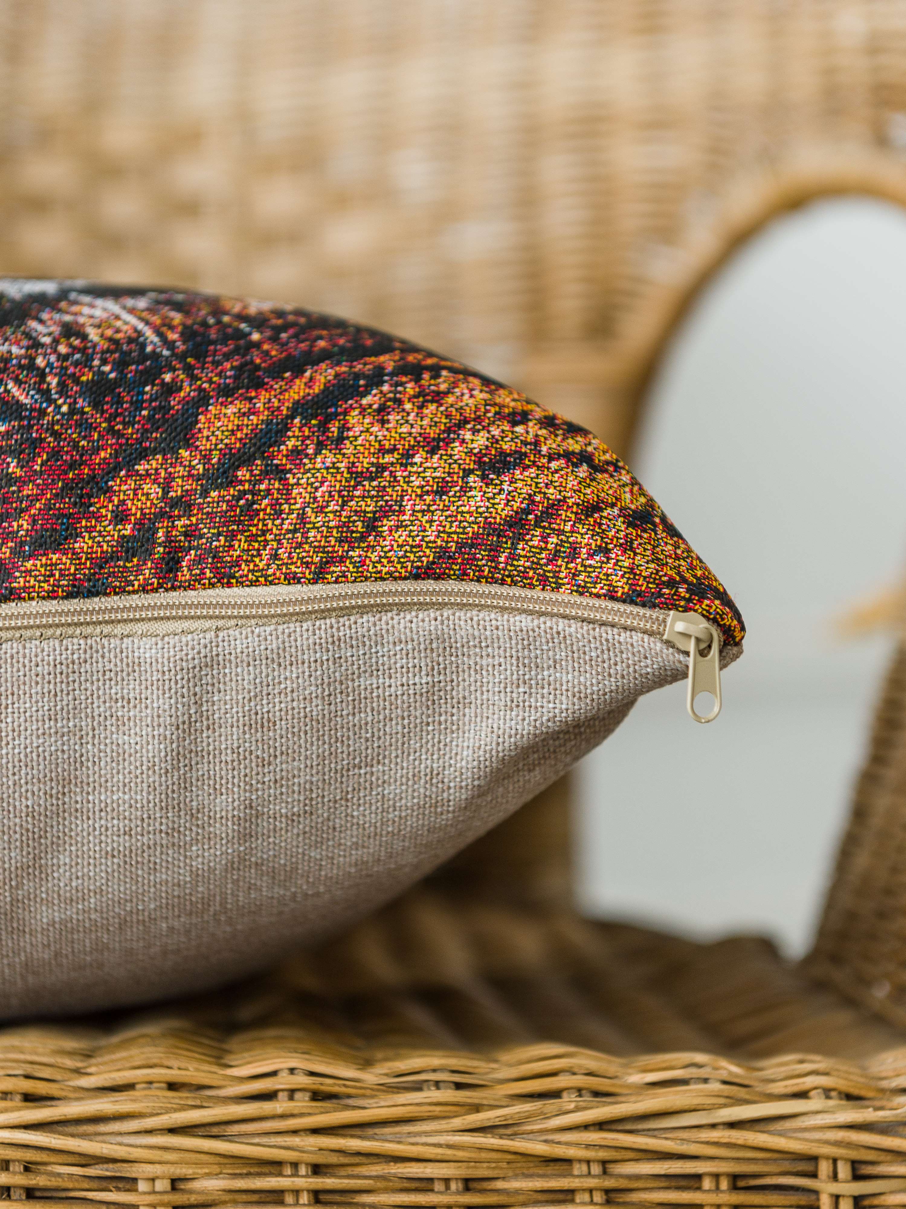 Гобеленовая наволочка для декоративной подушки. Размер наволочки: 38x38см. производство Россия. Изделие собственного производства сшито из отечественной жаккардовой ткани. Задняя часть выполнена из мебельной рогожки так же Российского производства. Все ткани используемые для производства декоративной наволочки производятся с соблюдением ТУ и ГОСТ Р.Ф. Собственное швейное производство позволяет контролировать качество продукции на всех этапах до поступления на склад и предлагать покупателям товары высокого качества по выгодным ценам. Состав ткани 100% полиэстер. Плотность гобелена 380 г/кв.м. Наволочка подходит для подушек размером от 36 до 40 см. Продается без подушки-наполнителя. Подушку-наполнитель так же можно купит у нас. Размер наволочки может отличаться от заявленного +/- 2 см. Допускается деликатная машинная стирка при температуре 30 градусов. Гладить при средней температуре.