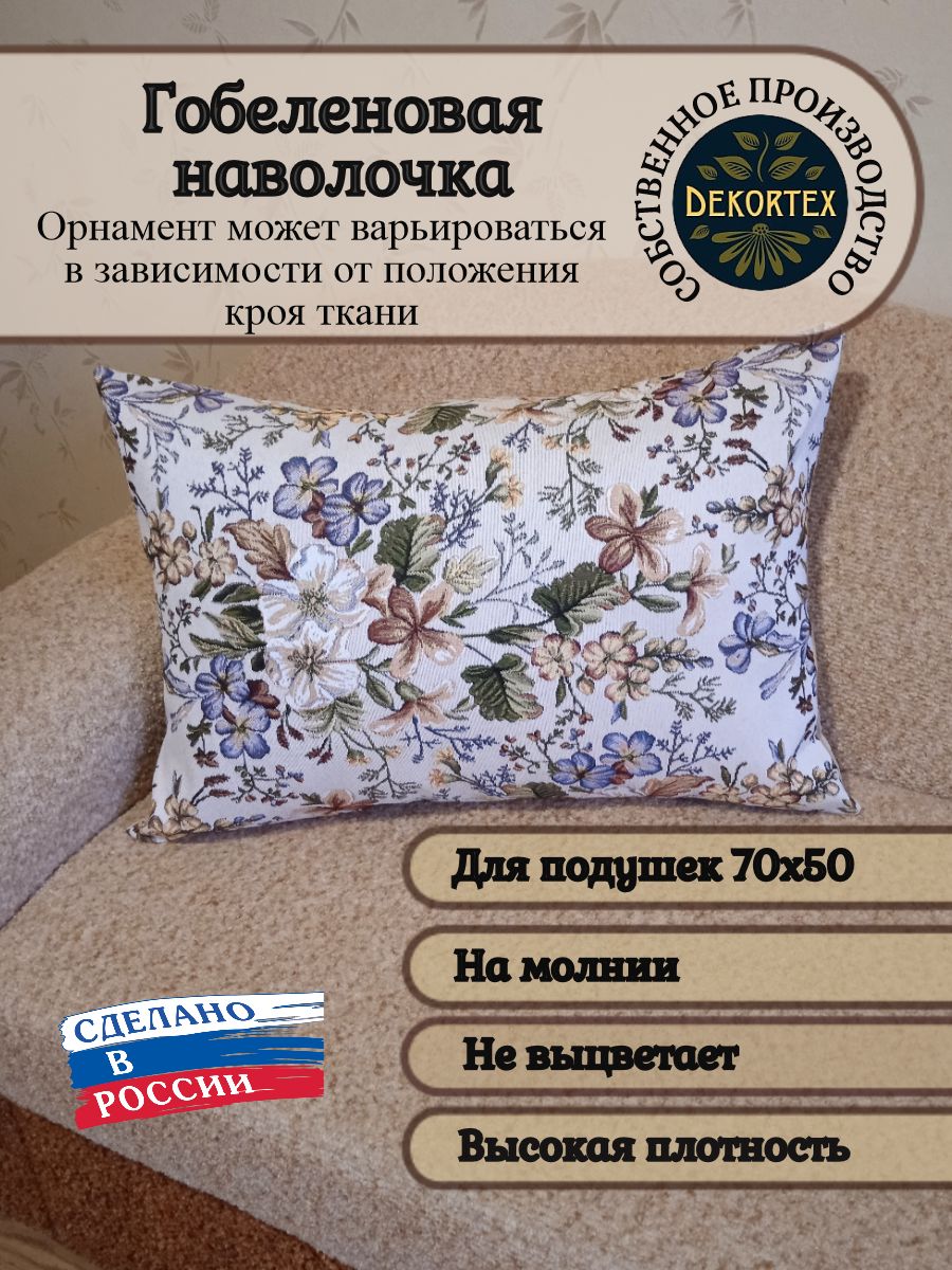 Гобеленовый чехол для декоративной подушки. Размер чехла: 68x47 см. производство Россия. Изделие собственного производства сшито из отечественной жаккардовой ткани. Задняя часть выполнена из мебельной рогожки так же Российского производства. Все ткани используемые для производства декоративного чехла производятся с соблюдением ТУ и ГОСТ Р.Ф. Собственное швейное производство позволяет контролировать качество продукции на всех этапах до поступления на склад и предлагать покупателям товары высокого качества по выгодным ценам. Состав ткани 100% полиэстер. Плотность гобелена 380 г/кв.м. Продается без подушки-наполнителя. Подушку-наполнитель так же можно купить у нас. Размер чехла может отличаться от заявленного +/- 2 см. Подходит для подушки 70х50. Допускается деликатная машинная стирка при температуре 30 градусов. Гладить при средней температуре.