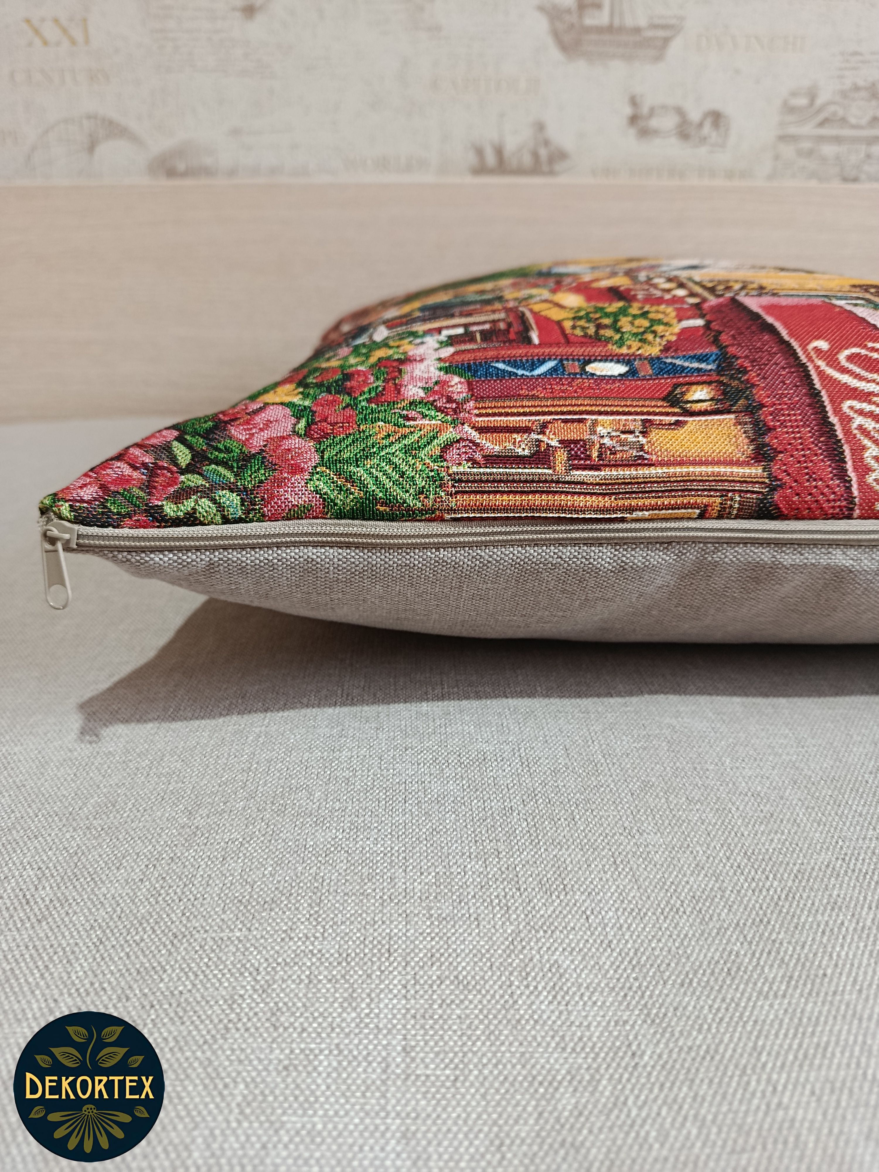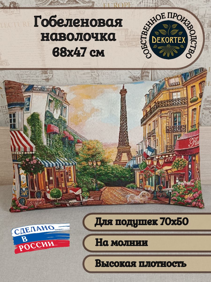 Гобеленовый чехол для декоративной подушки. Размер чехла: 68x47 см. производство Россия. Изделие собственного производства сшито из отечественной жаккардовой ткани. Задняя часть выполнена из мебельной рогожки так же Российского производства. Все ткани используемые для производства декоративного чехла производятся с соблюдением ТУ и ГОСТ Р.Ф. Собственное швейное производство позволяет контролировать качество продукции на всех этапах до поступления на склад и предлагать покупателям товары высокого качества по выгодным ценам. Состав ткани 100% полиэстер. Плотность гобелена 380 г/кв.м. Продается без подушки-наполнителя. Подушку-наполнитель так же можно купить у нас. Размер чехла может отличаться от заявленного +/- 2 см. Подходит для подушки 70х50. Допускается деликатная машинная стирка при температуре 30 градусов. Гладить при средней температуре.