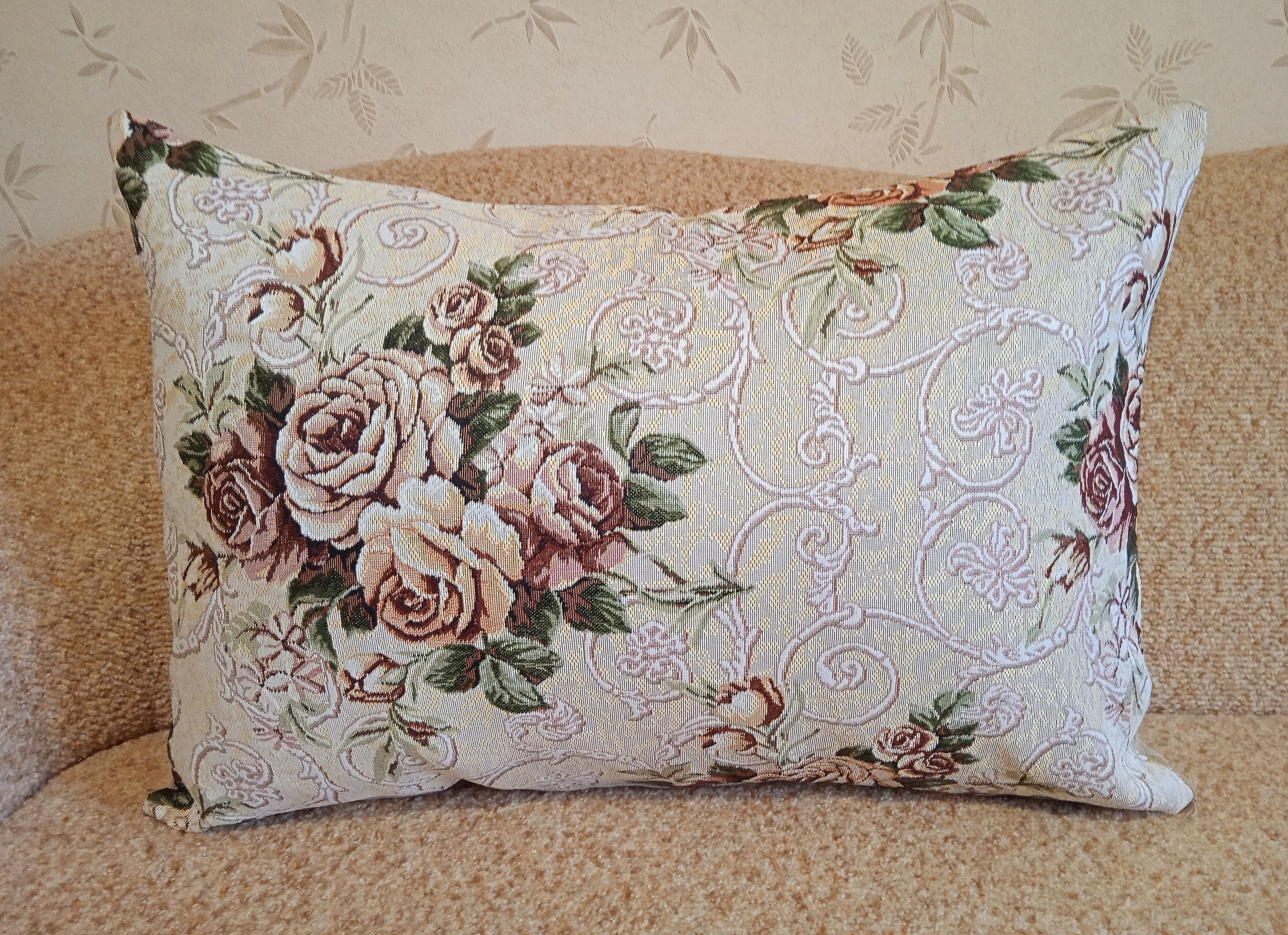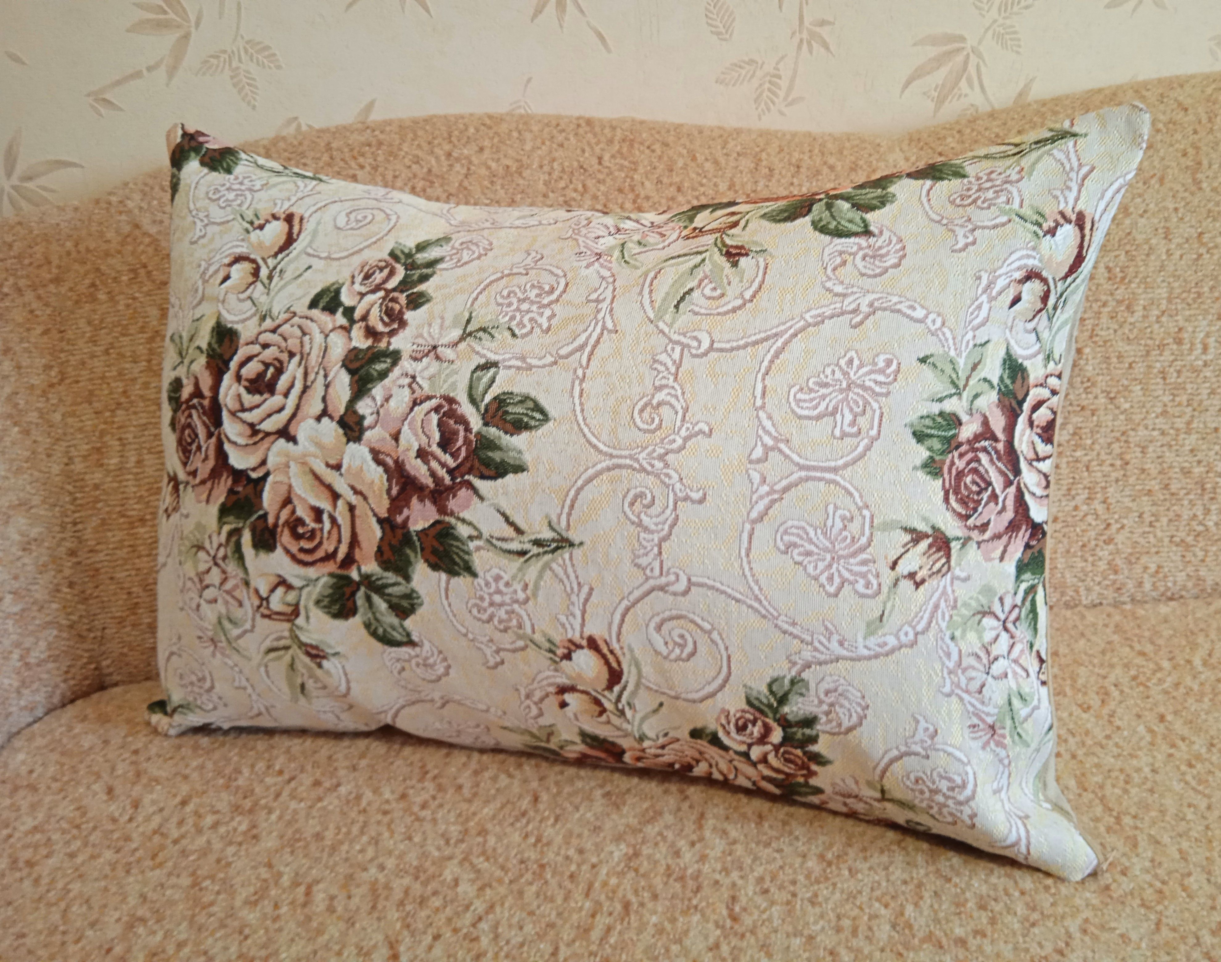 Гобеленовый чехол для декоративной подушки. Размер чехла: 68x47 см. производство Россия. Изделие собственного производства сшито из отечественной жаккардовой ткани. Задняя часть выполнена из мебельной рогожки так же Российского производства. Все ткани используемые для производства декоративного чехла производятся с соблюдением ТУ и ГОСТ Р.Ф. Собственное швейное производство позволяет контролировать качество продукции на всех этапах до поступления на склад и предлагать покупателям товары высокого качества по выгодным ценам. Состав ткани 100% полиэстер. Плотность гобелена 380 г/кв.м. Продается без подушки-наполнителя. Подушку-наполнитель так же можно купить у нас. Размер чехла может отличаться от заявленного +/- 2 см. Подходит для подушки 70х50. Допускается деликатная машинная стирка при температуре 30 градусов. Гладить при средней температуре.