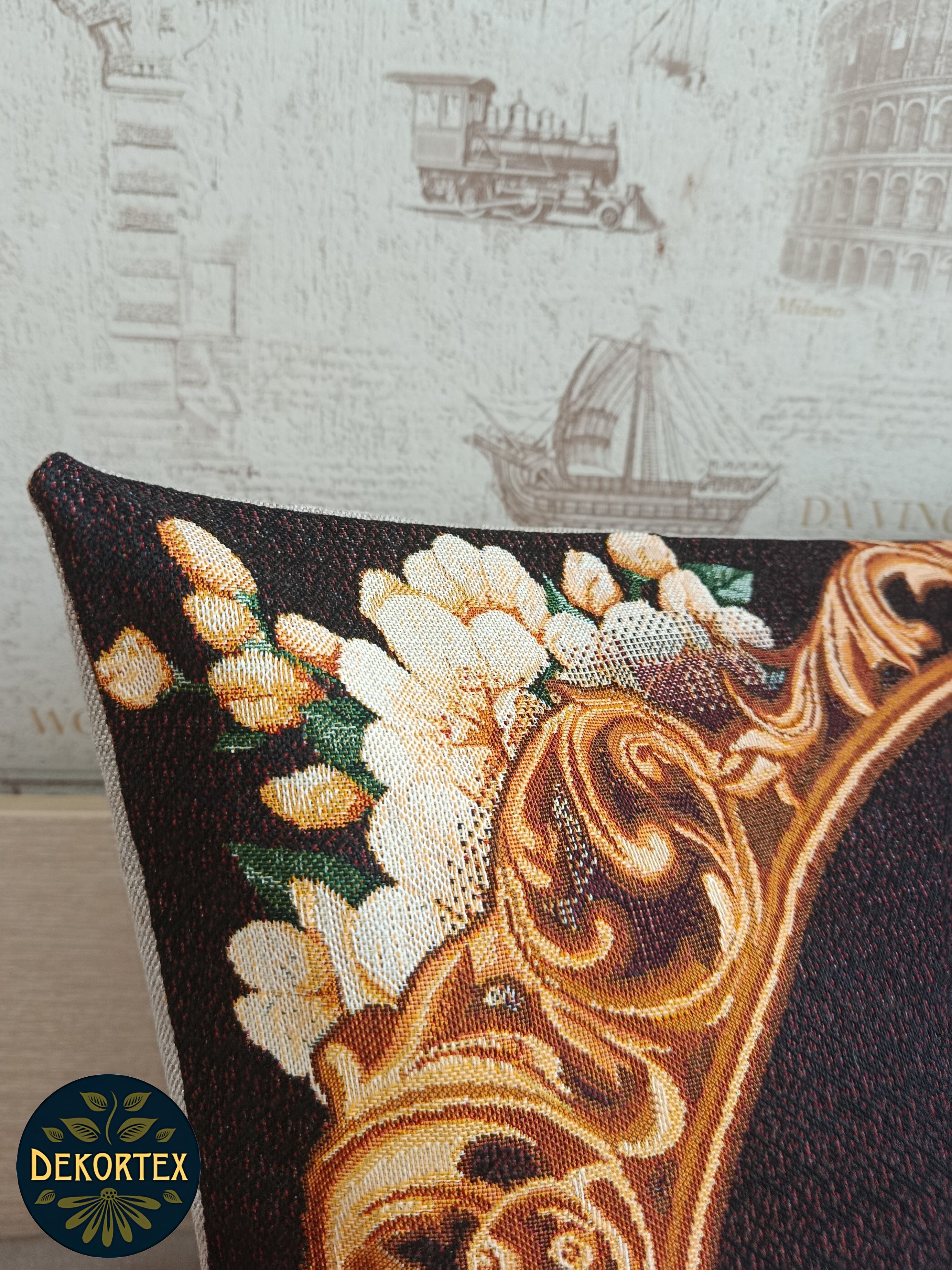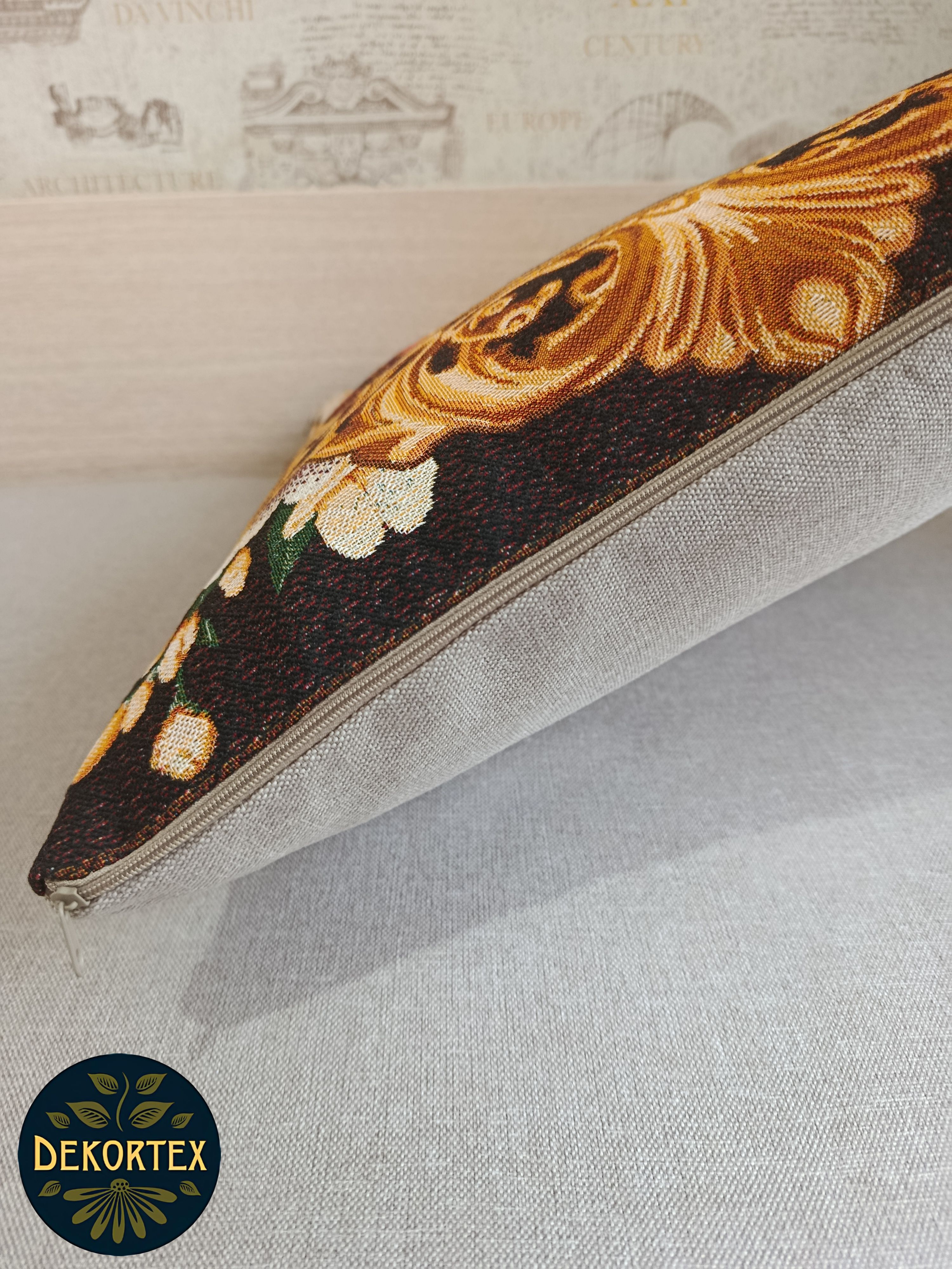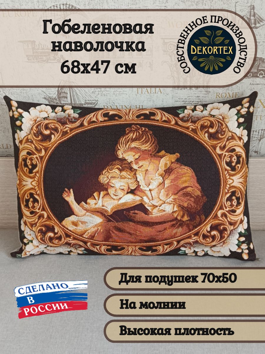 Гобеленовый чехол для декоративной подушки. Размер чехла: 68x47 см. производство Россия. Изделие собственного производства сшито из отечественной жаккардовой ткани. Задняя часть выполнена из мебельной рогожки так же Российского производства. Все ткани используемые для производства декоративного чехла производятся с соблюдением ТУ и ГОСТ Р.Ф. Собственное швейное производство позволяет контролировать качество продукции на всех этапах до поступления на склад и предлагать покупателям товары высокого качества по выгодным ценам. Состав ткани 100% полиэстер. Плотность гобелена 380 г/кв.м. Продается без подушки-наполнителя. Подушку-наполнитель так же можно купить у нас. Размер чехла может отличаться от заявленного +/- 2 см. Подходит для подушки 70х50. Допускается деликатная машинная стирка при температуре 30 градусов. Гладить при средней температуре.