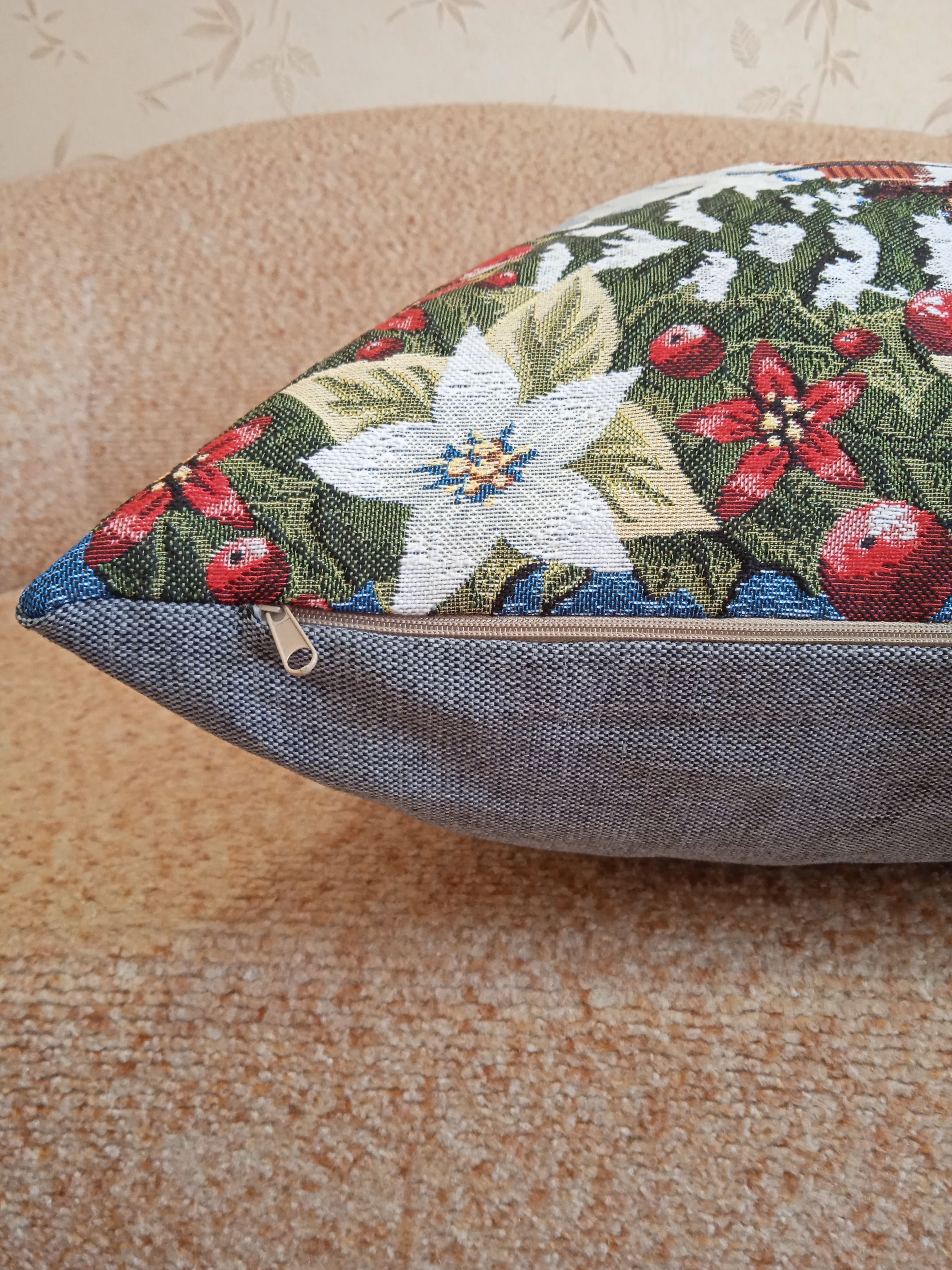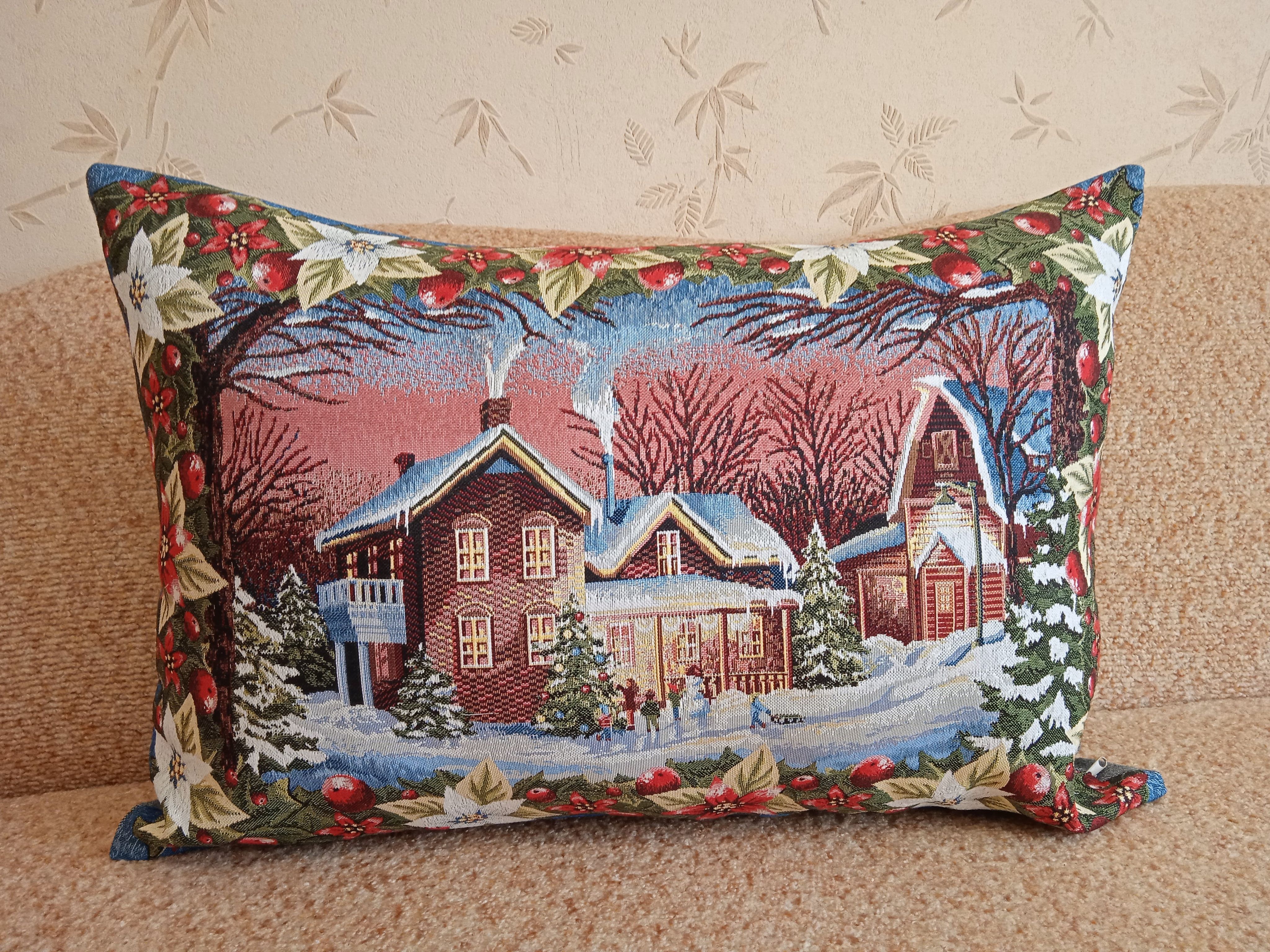 Гобеленовый чехол для декоративной подушки. Размер чехла: 68x47 см. производство Россия. Изделие собственного производства сшито из отечественной жаккардовой ткани. Задняя часть выполнена из мебельной рогожки так же Российского производства. Все ткани используемые для производства декоративного чехла производятся с соблюдением ТУ и ГОСТ Р.Ф. Собственное швейное производство позволяет контролировать качество продукции на всех этапах до поступления на склад и предлагать покупателям товары высокого качества по выгодным ценам. Состав ткани 100% полиэстер. Плотность гобелена 380 г/кв.м. Продается без подушки-наполнителя. Подушку-наполнитель так же можно купить у нас. Размер чехла может отличаться от заявленного +/- 2 см. Подходит для подушки 70х50. Допускается деликатная машинная стирка при температуре 30 градусов. Гладить при средней температуре.