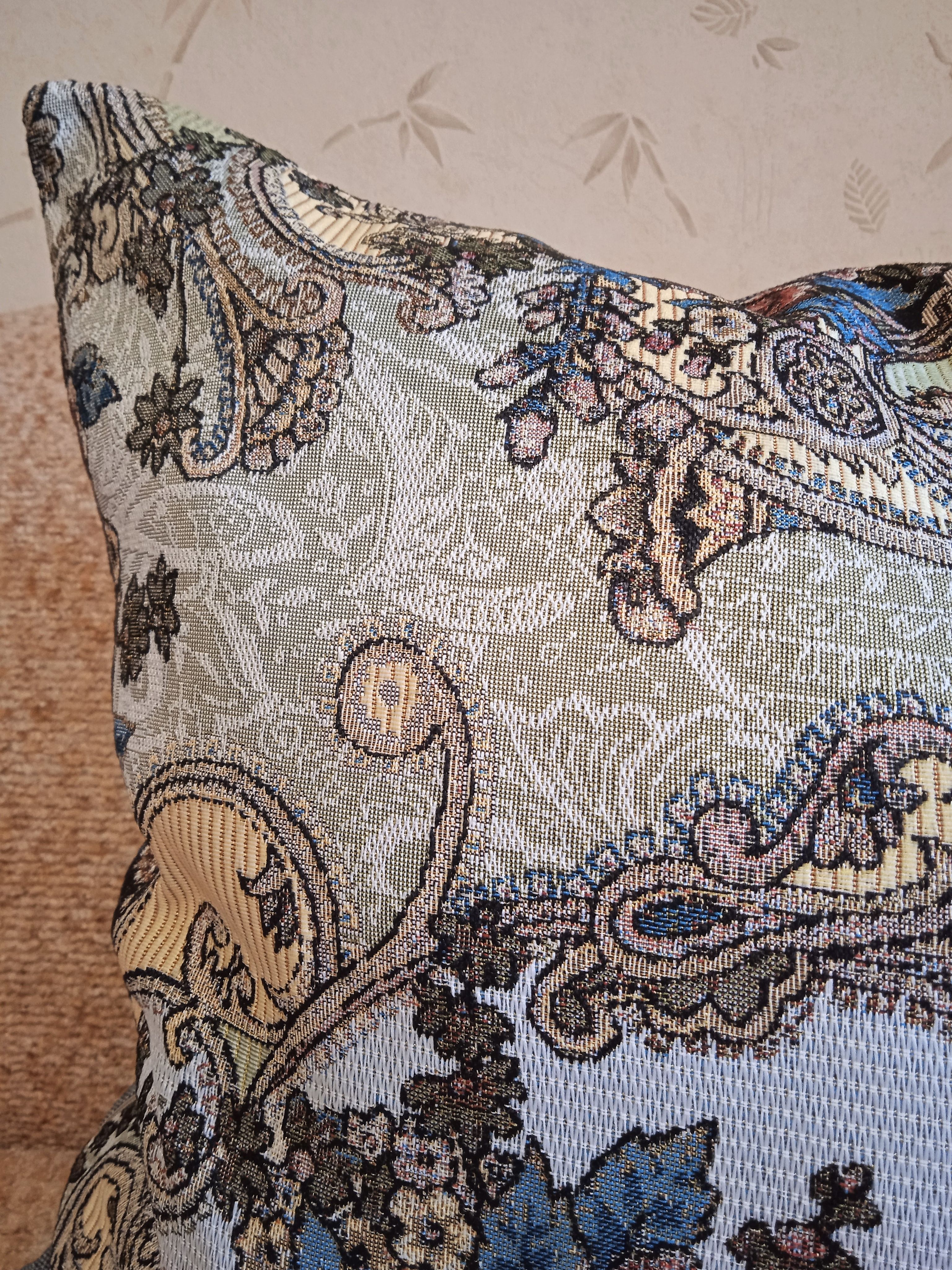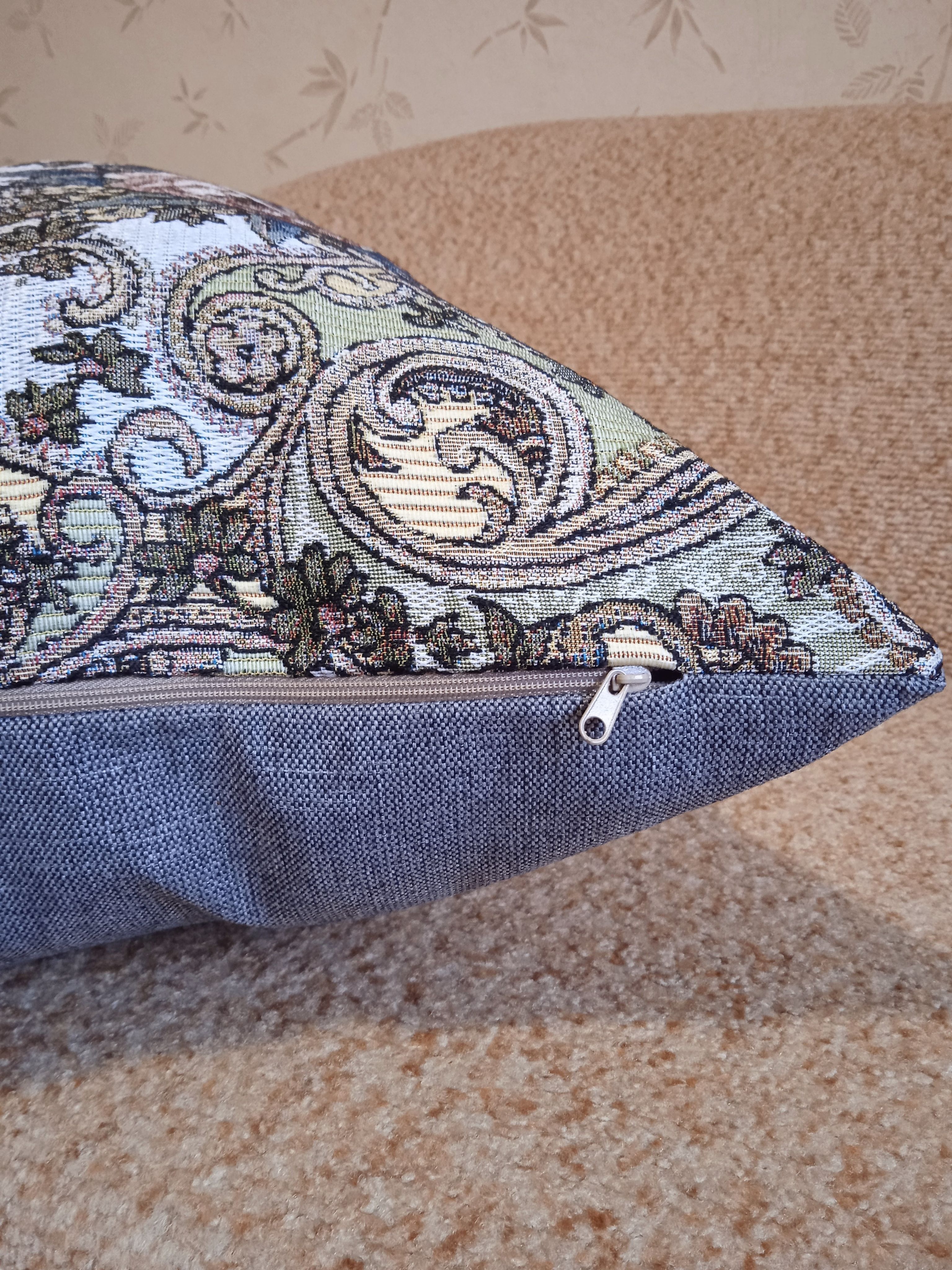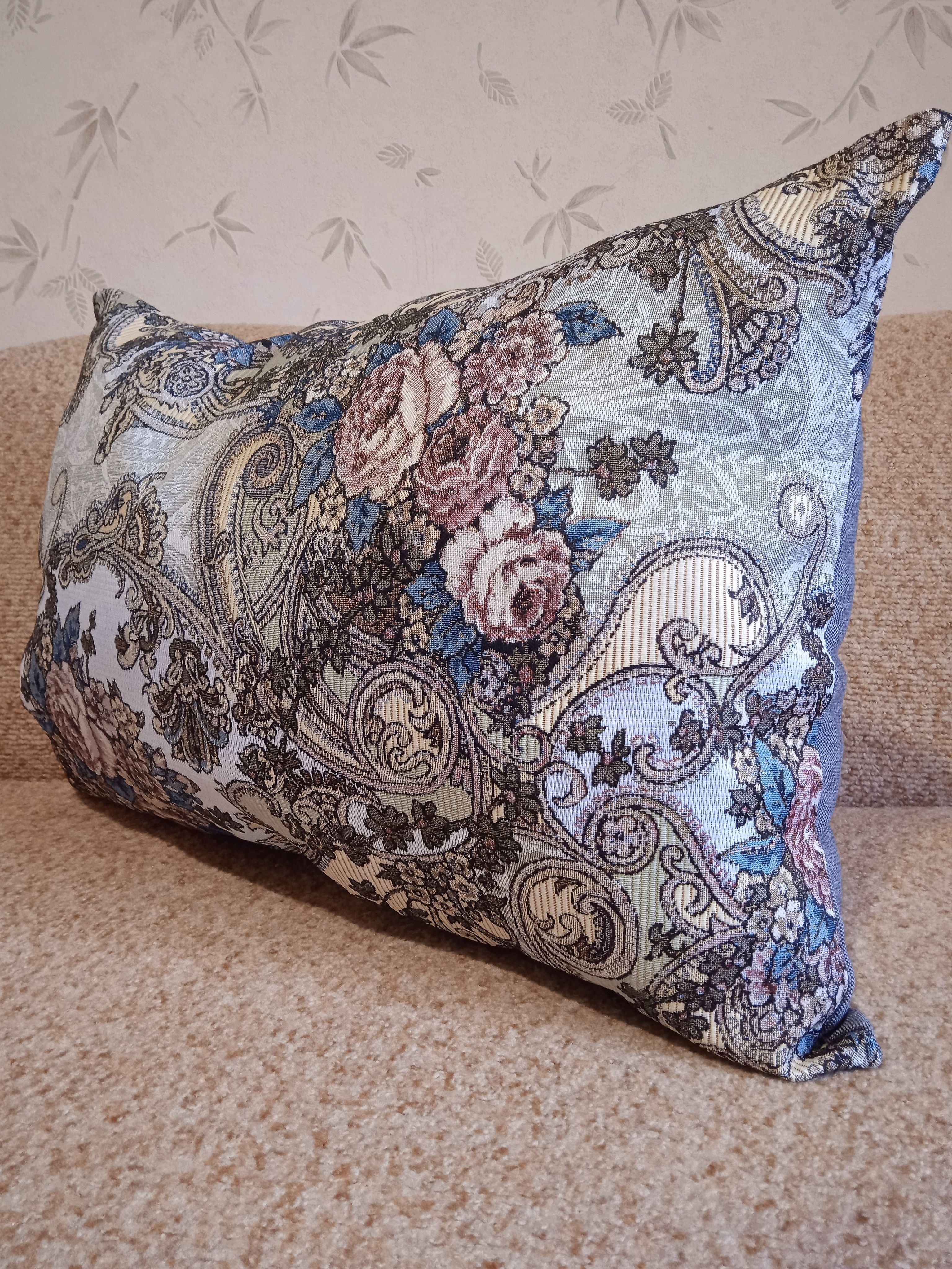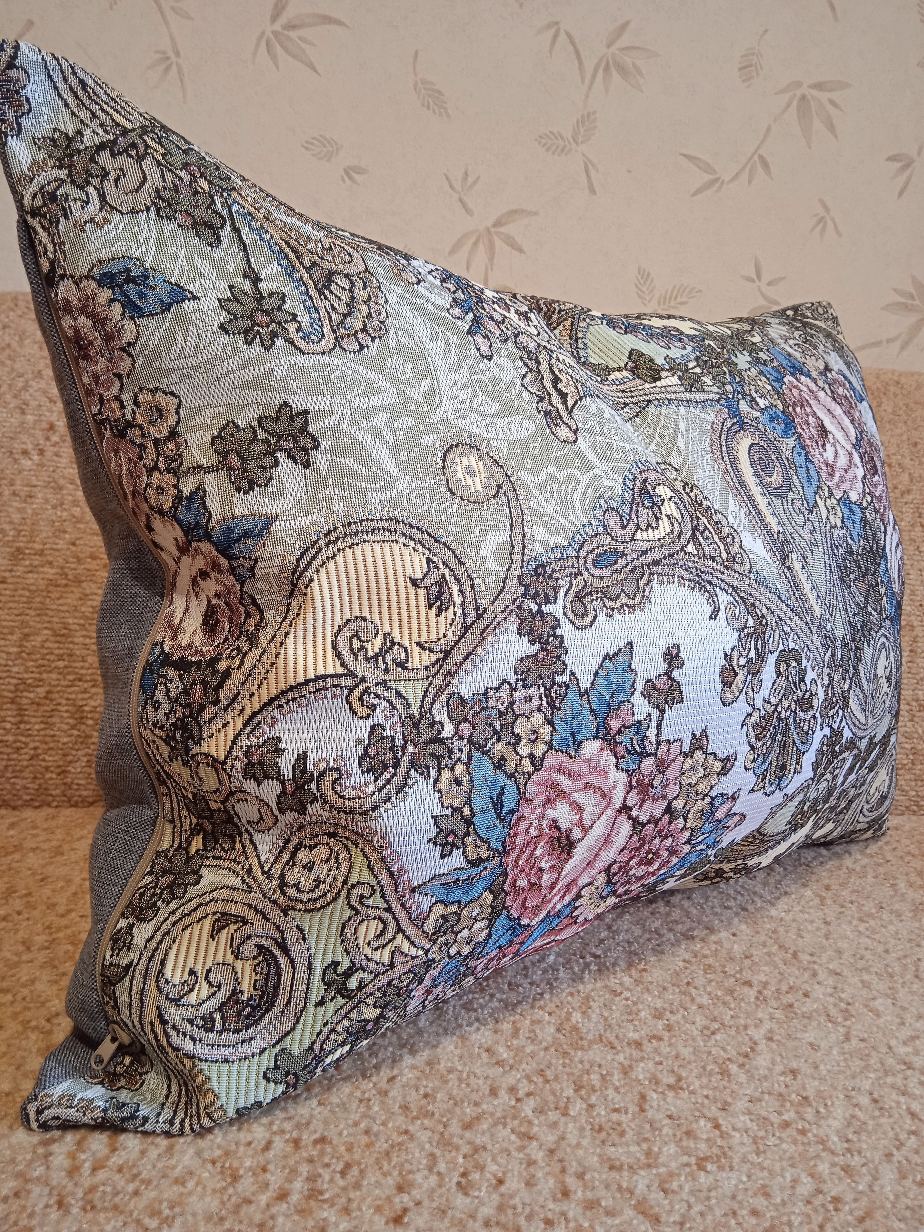 Гобеленовый чехол для декоративной подушки. Размер чехла: 68x47 см. производство Россия. Изделие собственного производства сшито из отечественной жаккардовой ткани. Задняя часть выполнена из мебельной рогожки так же Российского производства. Все ткани используемые для производства декоративного чехла производятся с соблюдением ТУ и ГОСТ Р.Ф. Собственное швейное производство позволяет контролировать качество продукции на всех этапах до поступления на склад и предлагать покупателям товары высокого качества по выгодным ценам. Состав ткани 100% полиэстер. Плотность гобелена 380 г/кв.м. Продается без подушки-наполнителя. Подушку-наполнитель так же можно купить у нас. Размер чехла может отличаться от заявленного +/- 2 см. Допускается деликатная машинная стирка при температуре 30 градусов. Гладить при средней температуре.