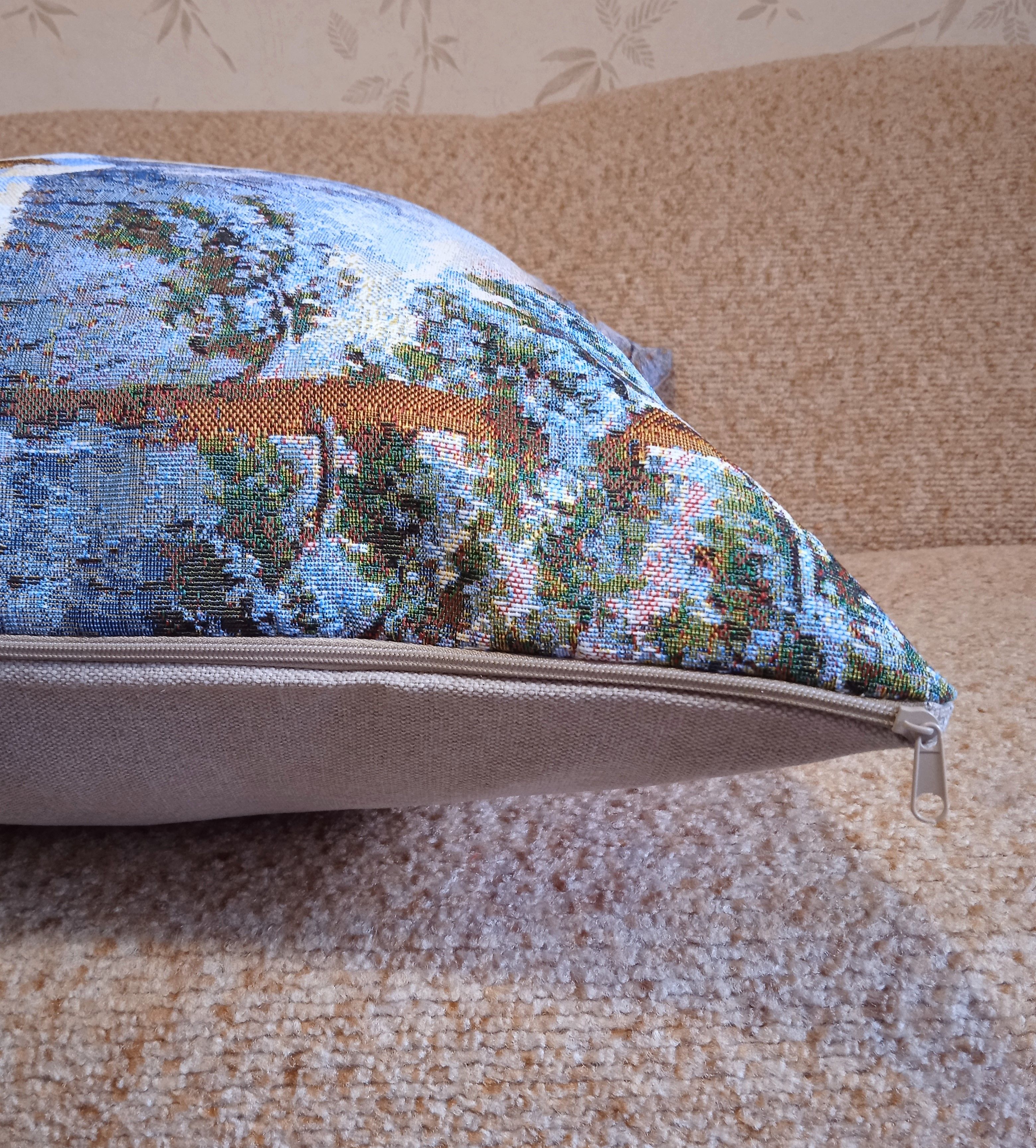 Гобеленовый чехол для декоративной подушки. Размер чехла: 68x47 см. производство Россия. Изделие собственного производства сшито из отечественной жаккардовой ткани. Задняя часть выполнена из мебельной рогожки так же Российского производства. Все ткани используемые для производства декоративного чехла производятся с соблюдением ТУ и ГОСТ Р.Ф. Собственное швейное производство позволяет контролировать качество продукции на всех этапах до поступления на склад и предлагать покупателям товары высокого качества по выгодным ценам. Состав ткани 100% полиэстер. Плотность гобелена 380 г/кв.м. Продается без подушки-наполнителя. Подушку-наполнитель так же можно купить у нас. Размер чехла может отличаться от заявленного +/- 2 см. Подходит для подушки 70х50. Допускается деликатная машинная стирка при температуре 30 градусов. Гладить при средней температуре.