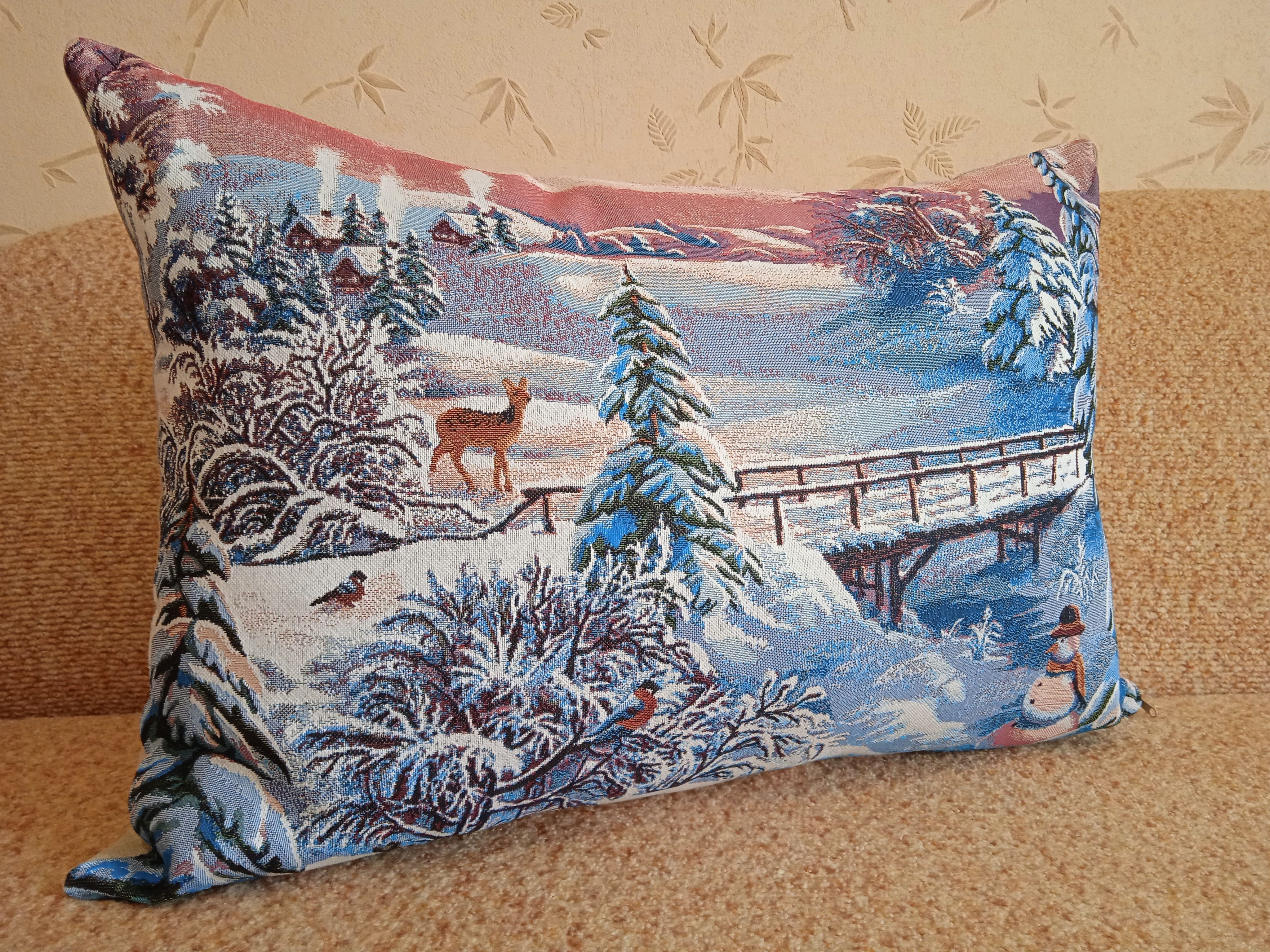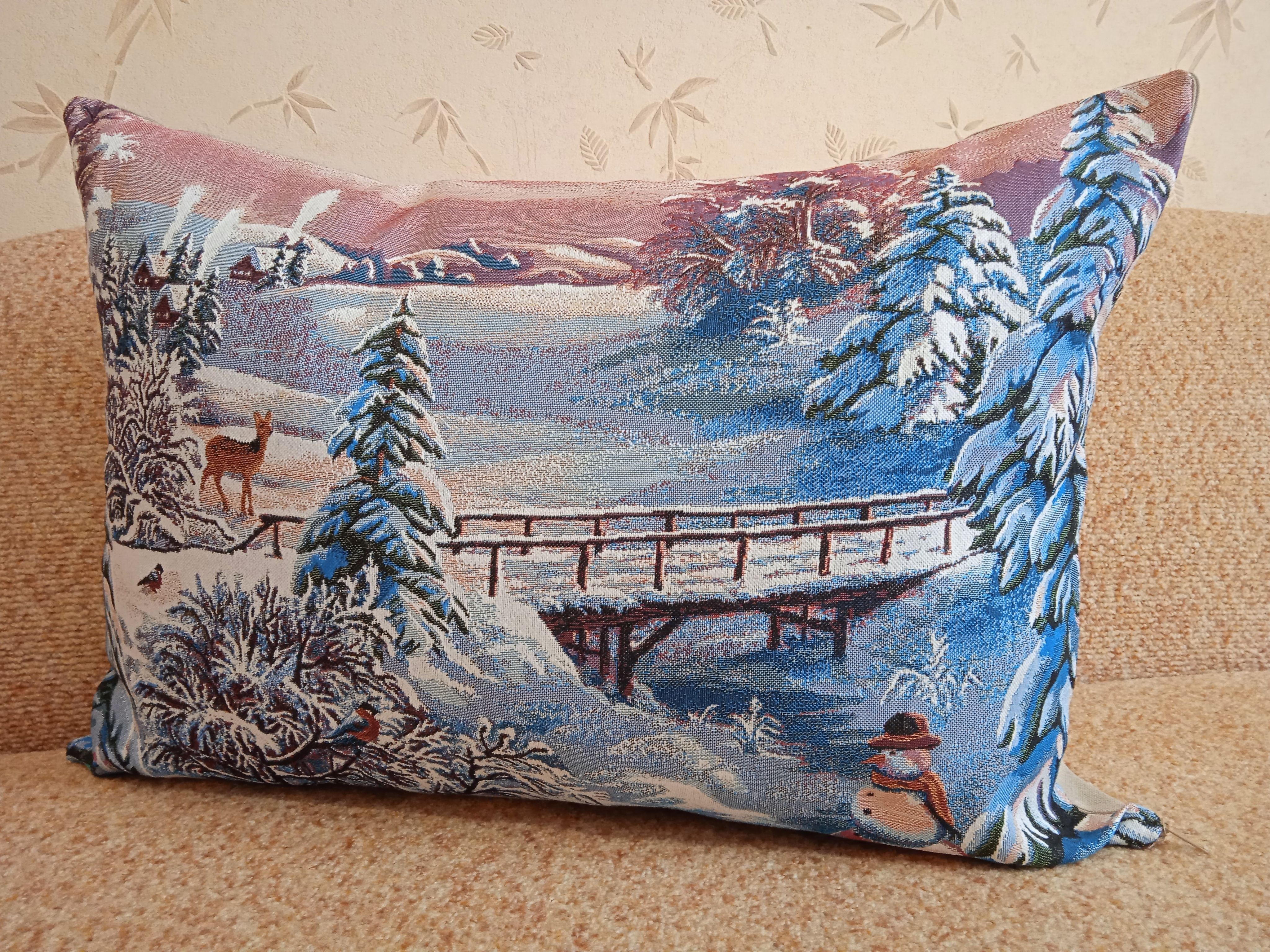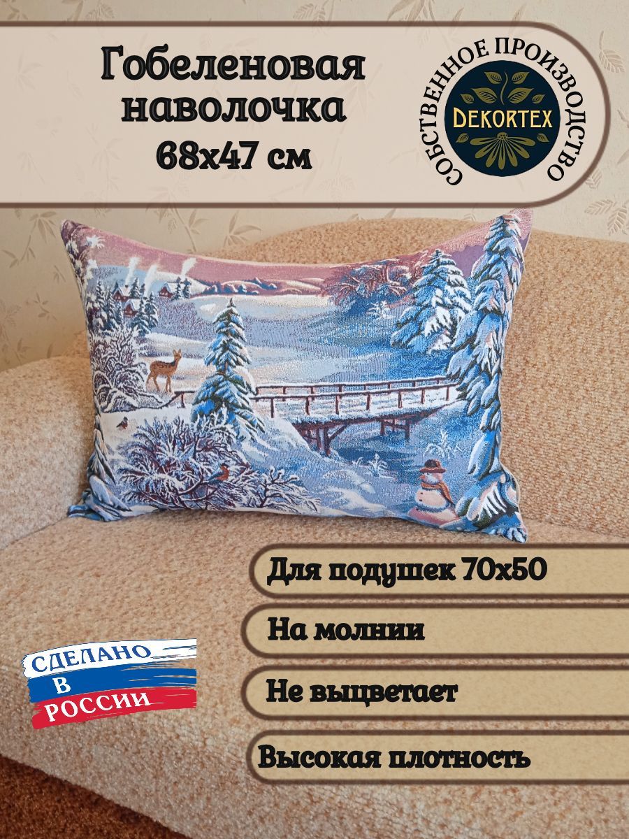Гобеленовый чехол для декоративной подушки. Размер чехла: 68x47 см. производство Россия. Изделие собственного производства сшито из отечественной жаккардовой ткани. Задняя часть выполнена из мебельной рогожки так же Российского производства. Все ткани используемые для производства декоративного чехла производятся с соблюдением ТУ и ГОСТ Р.Ф. Собственное швейное производство позволяет контролировать качество продукции на всех этапах до поступления на склад и предлагать покупателям товары высокого качества по выгодным ценам. Состав ткани 100% полиэстер. Плотность гобелена 380 г/кв.м. Продается без подушки-наполнителя. Подушку-наполнитель так же можно купить у нас. Размер чехла может отличаться от заявленного +/- 2 см. Подходит для подушки 70х50. Допускается деликатная машинная стирка при температуре 30 градусов. Гладить при средней температуре.