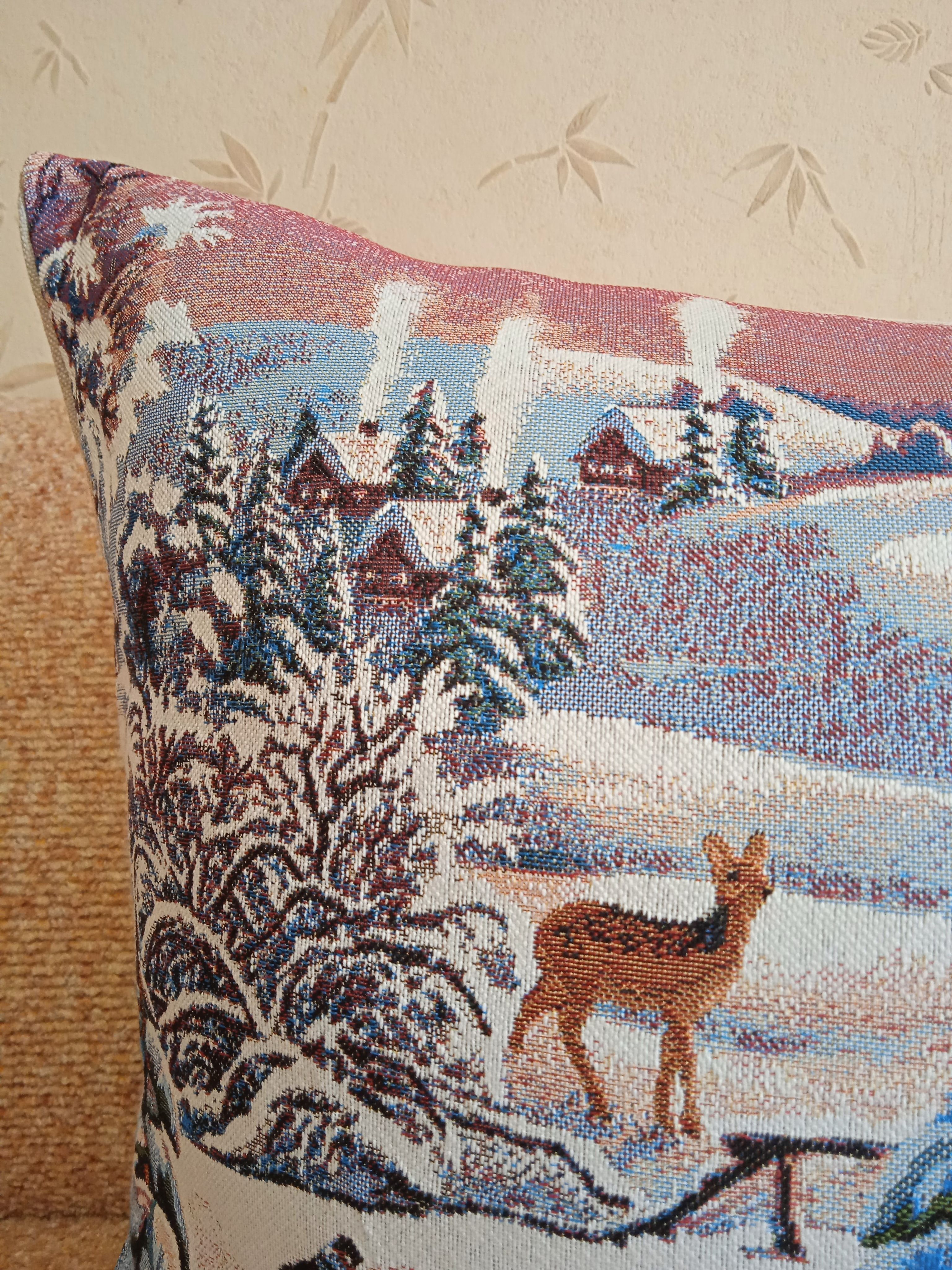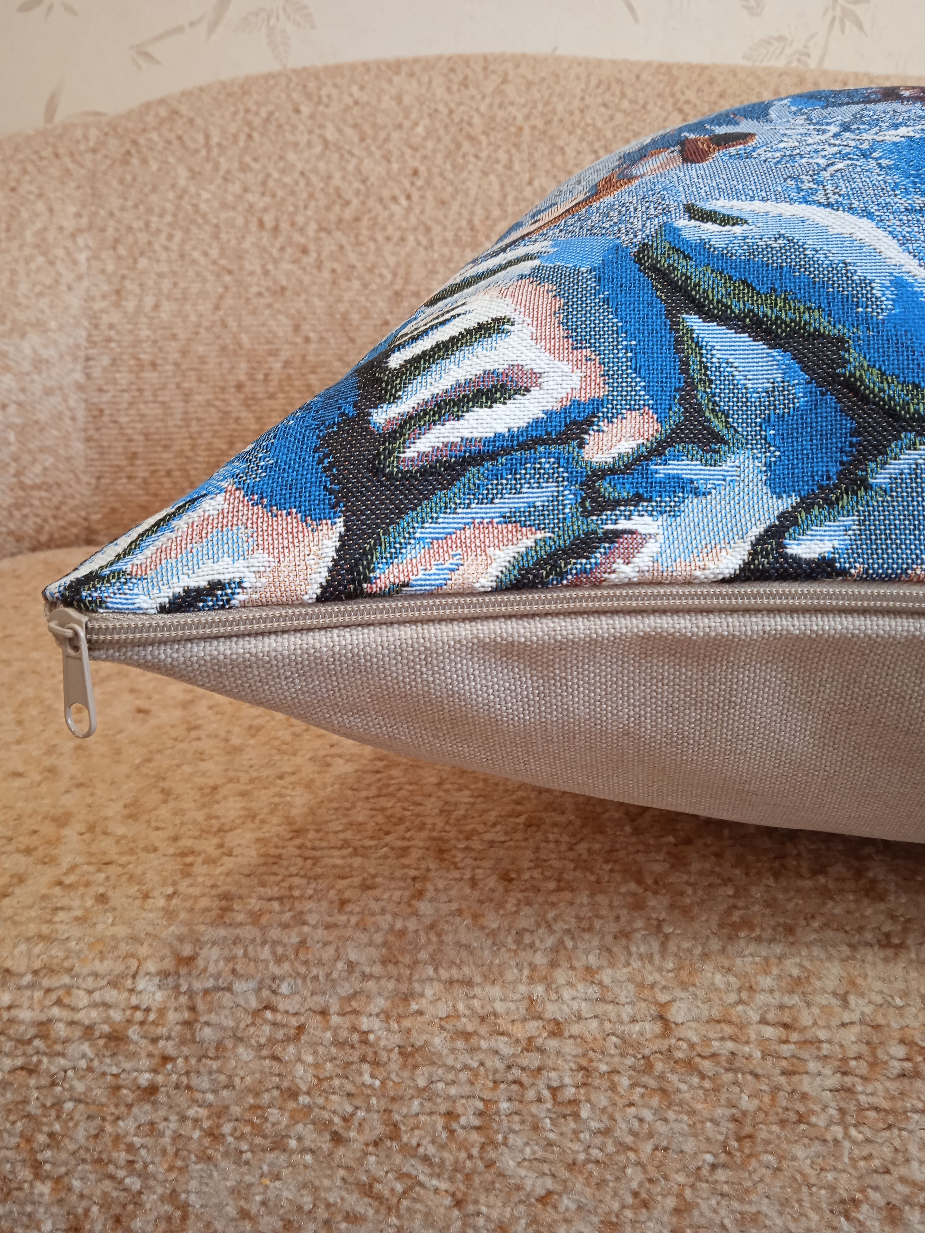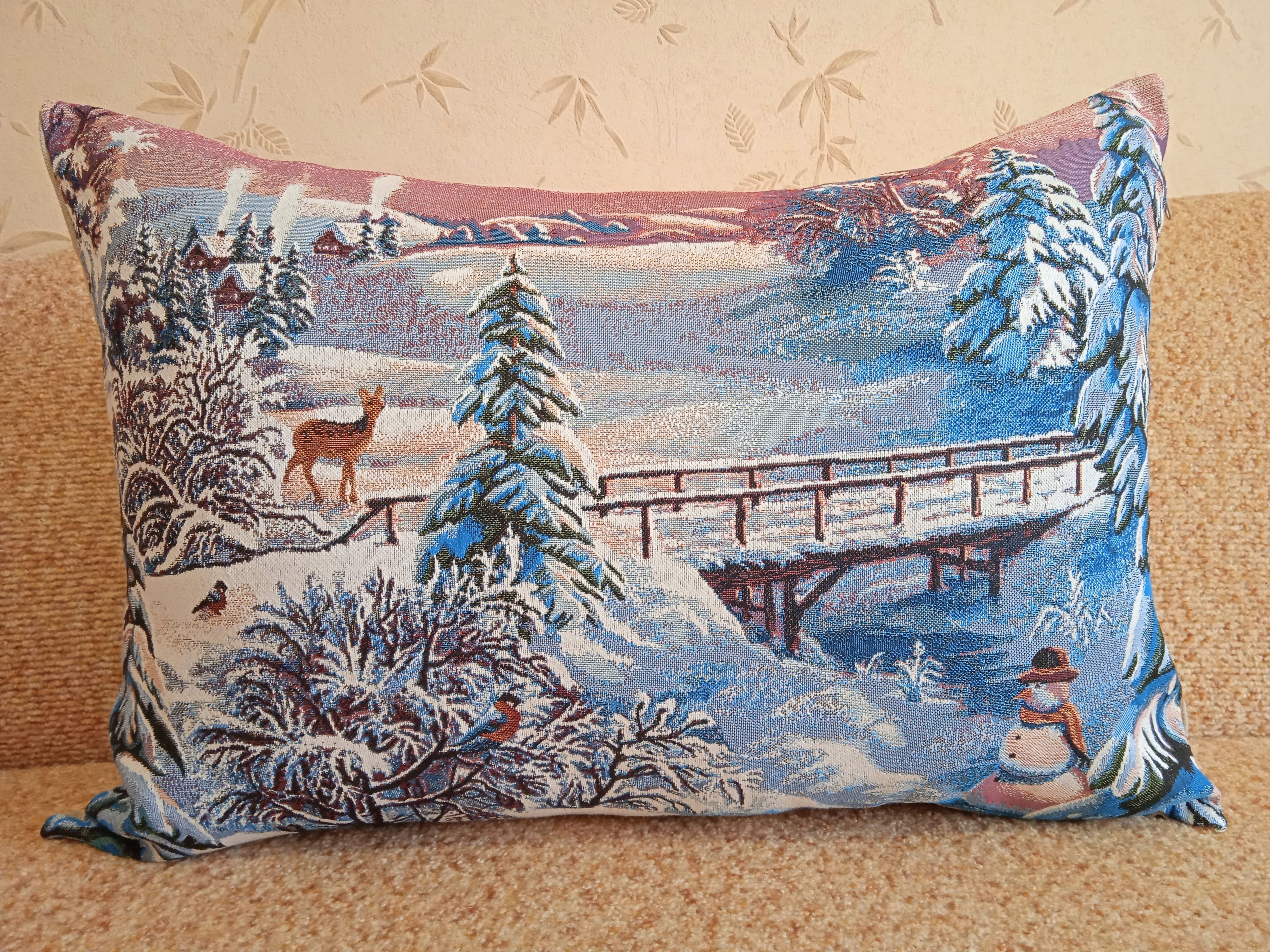 Гобеленовый чехол для декоративной подушки. Размер чехла: 68x47 см. производство Россия. Изделие собственного производства сшито из отечественной жаккардовой ткани. Задняя часть выполнена из мебельной рогожки так же Российского производства. Все ткани используемые для производства декоративного чехла производятся с соблюдением ТУ и ГОСТ Р.Ф. Собственное швейное производство позволяет контролировать качество продукции на всех этапах до поступления на склад и предлагать покупателям товары высокого качества по выгодным ценам. Состав ткани 100% полиэстер. Плотность гобелена 380 г/кв.м. Продается без подушки-наполнителя. Подушку-наполнитель так же можно купить у нас. Размер чехла может отличаться от заявленного +/- 2 см. Подходит для подушки 70х50. Допускается деликатная машинная стирка при температуре 30 градусов. Гладить при средней температуре.
