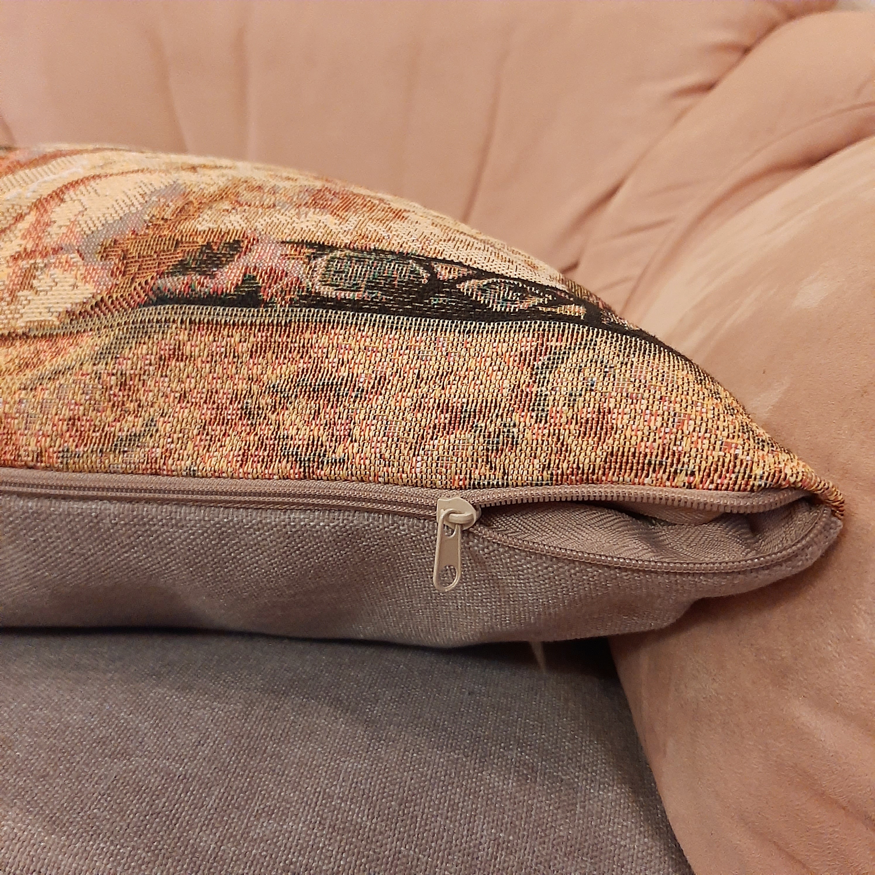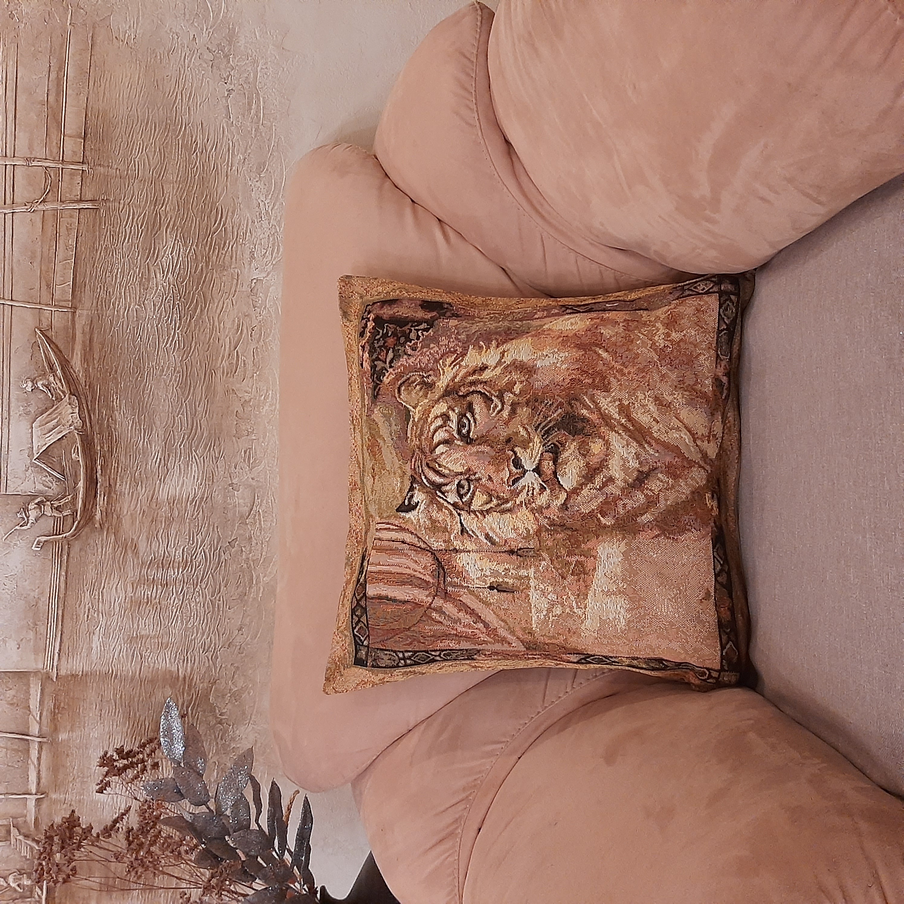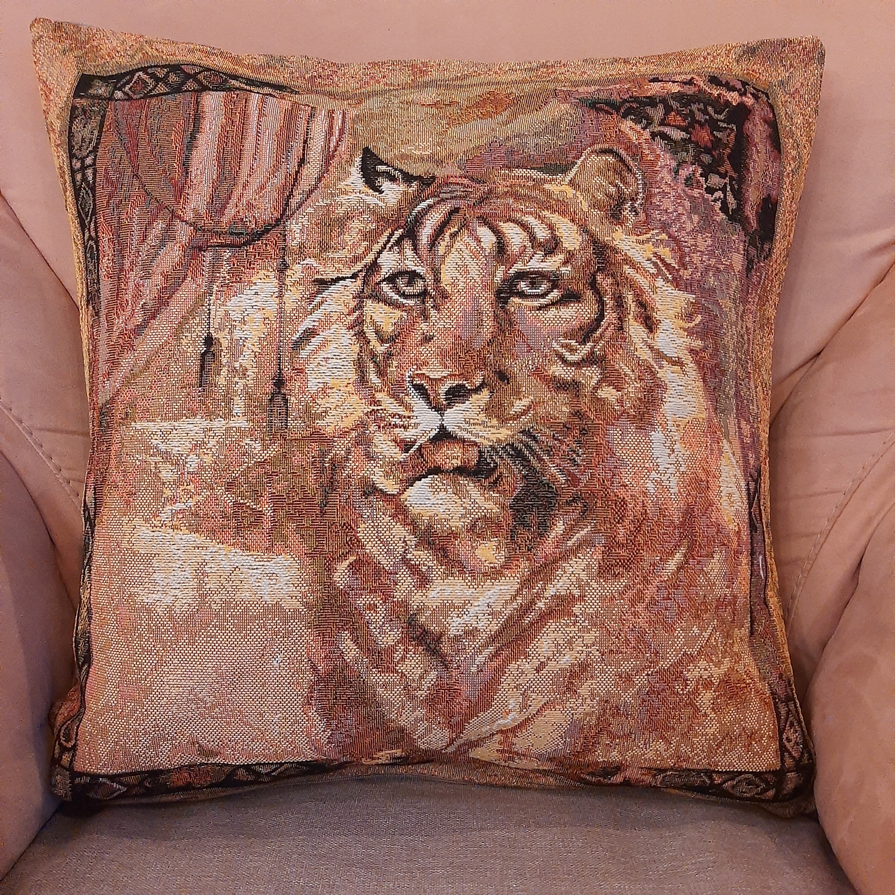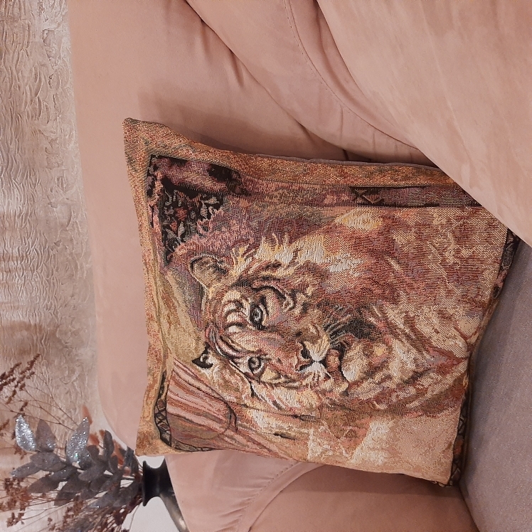 Гобеленовая наволочка для декоративной подушки. Размер наволочки: 47x47см. производство Россия. Изделие собственного производства сшито из отечественной жаккардовой ткани. Задняя часть выполнена из мебельной рогожки так же Российского производства. Все ткани используемые для производства декоративной наволочки производятся с соблюдением ТУ и ГОСТ РФ. Собственное швейное производство позволяет контролировать качество продукции на всех этапах до поступления на склад и предлагать покупателям товары высокого качества по выгодным ценам. Состав ткани 100% полиэстер. Плотность гобелена 380 г/кв.м. Наволочка подходит для подушек размером от 45 до 50 см. Продается без подушки-наполнителя. Подушку-наполнитель так же можно купит у нас. Размер наволочки может отличаться от заявленного +/- 2 см. Допускается деликатная машинная стирка при температуре 30 градусов. Гладить при средней температуре.
