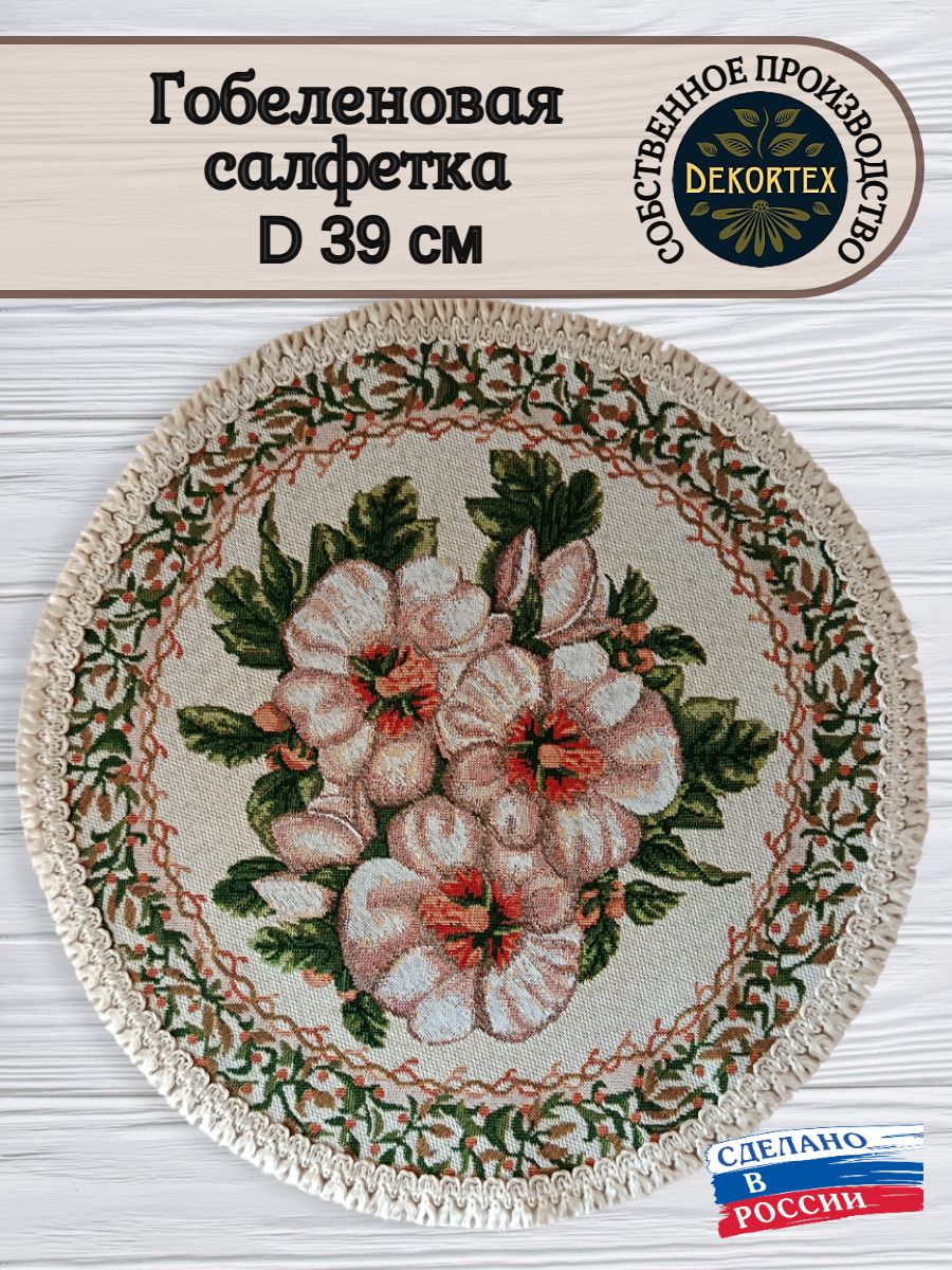 Декоративные гобеленовые салфетки это приятное и полезное украшение для сервировки стола. Салфетки могут продаваться по одной или наборами от двух до десяти штук. Форма, размер, цвет и рисунок салфеток можно выбрать по желанию покупателя. Декоративные салфетки круглой и овальной формы как правило обработаны красивой декоративной тесьмой подходящей по цвету к рисунку на ткани. Гобеленовые декоративные салфетки не только модный, красивый предмет интерьера но и полезны и практичны в использовании. Салфетки помогут предохранить поверхность мебели от повреждения. Гобеленовые салфетки устойчивы к загрязнению, хорошо стираются при температуре 30 градусов на дают усадки не линяют. Изделия из гобеленовой ткани имеют длительный срок службы и сохраняют первоначальный вид и форму.