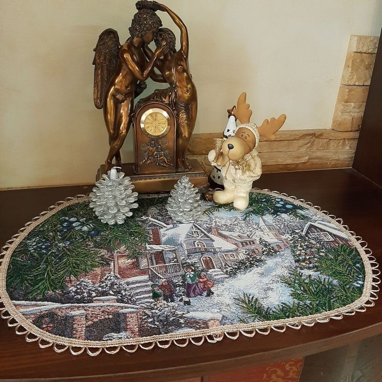 Декоративные гобеленовые салфетки это приятное и полезное украшение для сервировки стола. Салфетки могут продаваться по одной или наборами от двух до десяти штук. Форма, размер, цвет и рисунок салфеток можно выбрать по желанию покупателя. Декоративные салфетки круглой и овальной формы как правило обработаны красивой декоративной тесьмой подходящей по цвету к рисунку на ткани. Гобеленовые декоративные салфетки не только модный, красивый предмет интерьера но и полезны и практичны в использовании. Салфетки помогут предохранить поверхность мебели от повреждения. Гобеленовые салфетки устойчивы к загрязнению, хорошо стираются при температуре 30 градусов на дают усадки не линяют. Изделия из гобеленовой ткани имеют длительный срок службы и сохраняют первоначальный вид и форму.