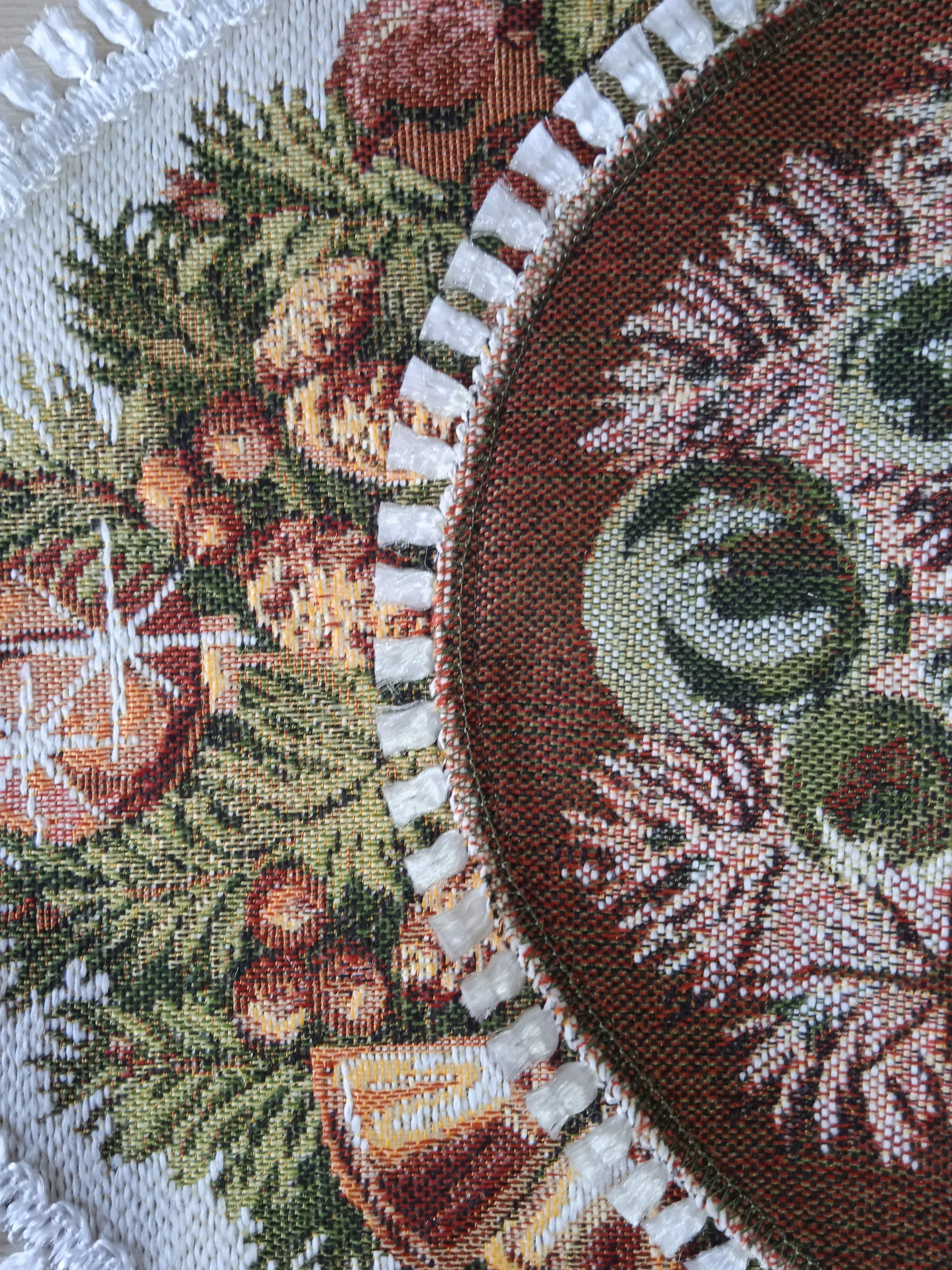 Декоративные гобеленовые салфетки это приятное и полезное украшение для сервировки стола. Салфетки могут продаваться по одной или наборами от двух до десяти штук. Форма, размер, цвет и рисунок салфеток можно выбрать по желанию покупателя. Декоративные салфетки круглой и овальной формы как правило обработаны красивой декоративной тесьмой подходящей по цвету к рисунку на ткани. Гобеленовые декоративные салфетки не только модный, красивый предмет интерьера но и полезны и практичны в использовании. Салфетки помогут предохранить поверхность мебели от повреждения. Гобеленовые салфетки устойчивы к загрязнению, хорошо стираются при температуре 30 градусов на дают усадки не линяют. Изделия из гобеленовой ткани имеют длительный срок службы и сохраняют первоначальный вид и форму.