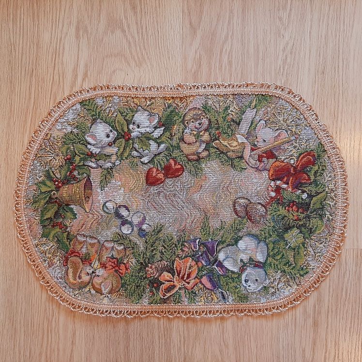 Декоративные гобеленовые салфетки это приятное и полезное украшение для сервировки стола. Салфетки могут продаваться по одной или наборами от двух до десяти штук. Форма, размер, цвет и рисунок салфеток можно выбрать по желанию покупателя. Декоративные салфетки круглой и овальной формы как правило обработаны красивой декоративной тесьмой подходящей по цвету к рисунку на ткани. Гобеленовые декоративные салфетки не только модный, красивый предмет интерьера но и полезны и практичны в использовании. Салфетки помогут предохранить поверхность мебели от повреждения. Гобеленовые салфетки устойчивы к загрязнению, хорошо стираются при температуре 30 градусов на дают усадки не линяют. Изделия из гобеленовой ткани имеют длительный срок службы и сохраняют первоначальный вид и форму.