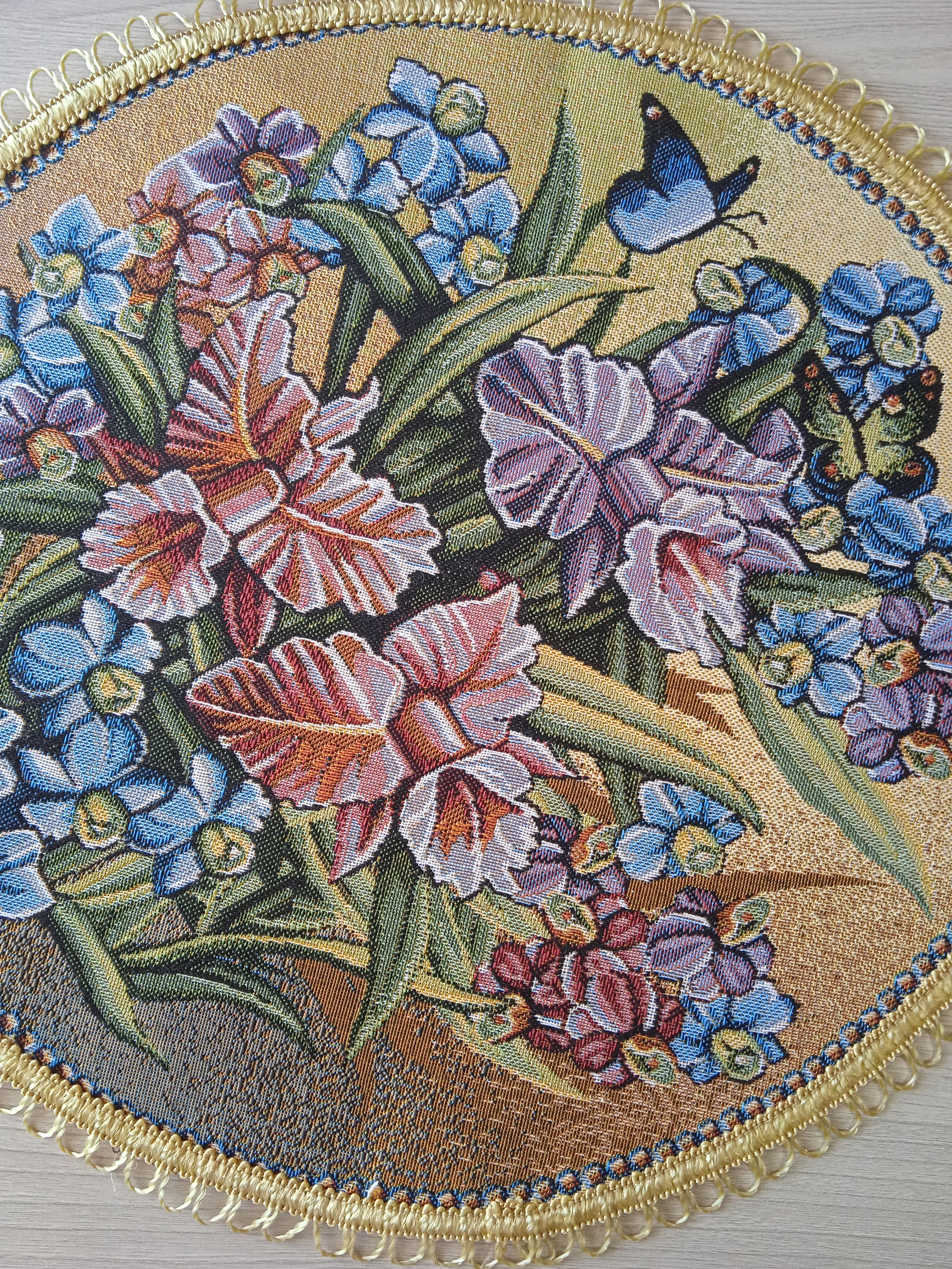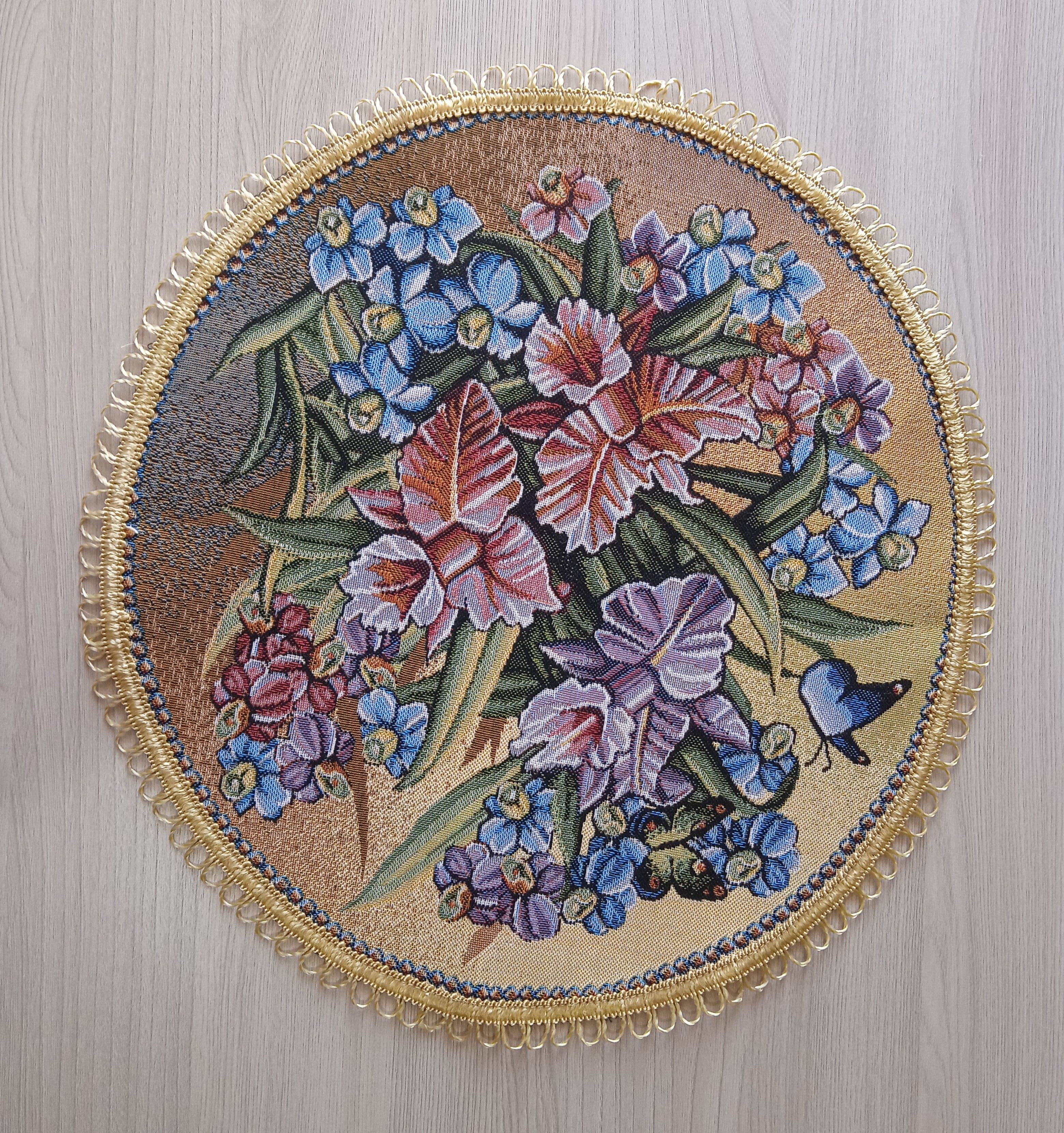 Декоративные гобеленовые салфетки это приятное и полезное украшение для сервировки стола. Салфетки могут продаваться по одной или наборами от двух до десяти штук. Форма, размер, цвет и рисунок салфеток можно выбрать по желанию покупателя. Декоративные салфетки круглой и овальной формы как правило обработаны красивой декоративной тесьмой подходящей по цвету к рисунку на ткани. Гобеленовые декоративные салфетки не только модный, красивый предмет интерьера но и полезны и практичны в использовании. Салфетки помогут предохранить поверхность мебели от повреждения. Гобеленовые салфетки устойчивы к загрязнению, хорошо стираются при температуре 30 градусов на дают усадки не линяют. Изделия из гобеленовой ткани имеют длительный срок службы и сохраняют первоначальный вид и форму.
