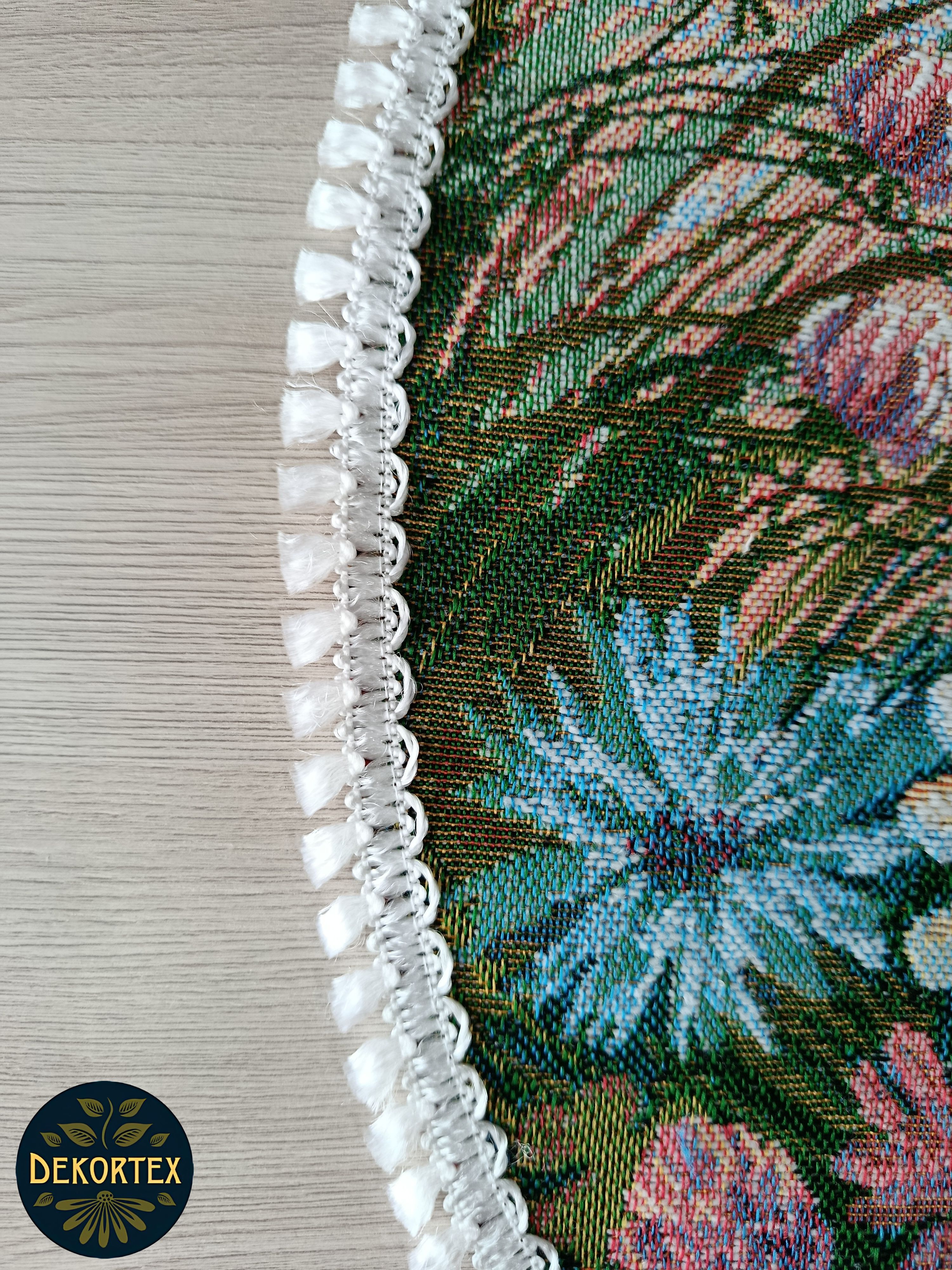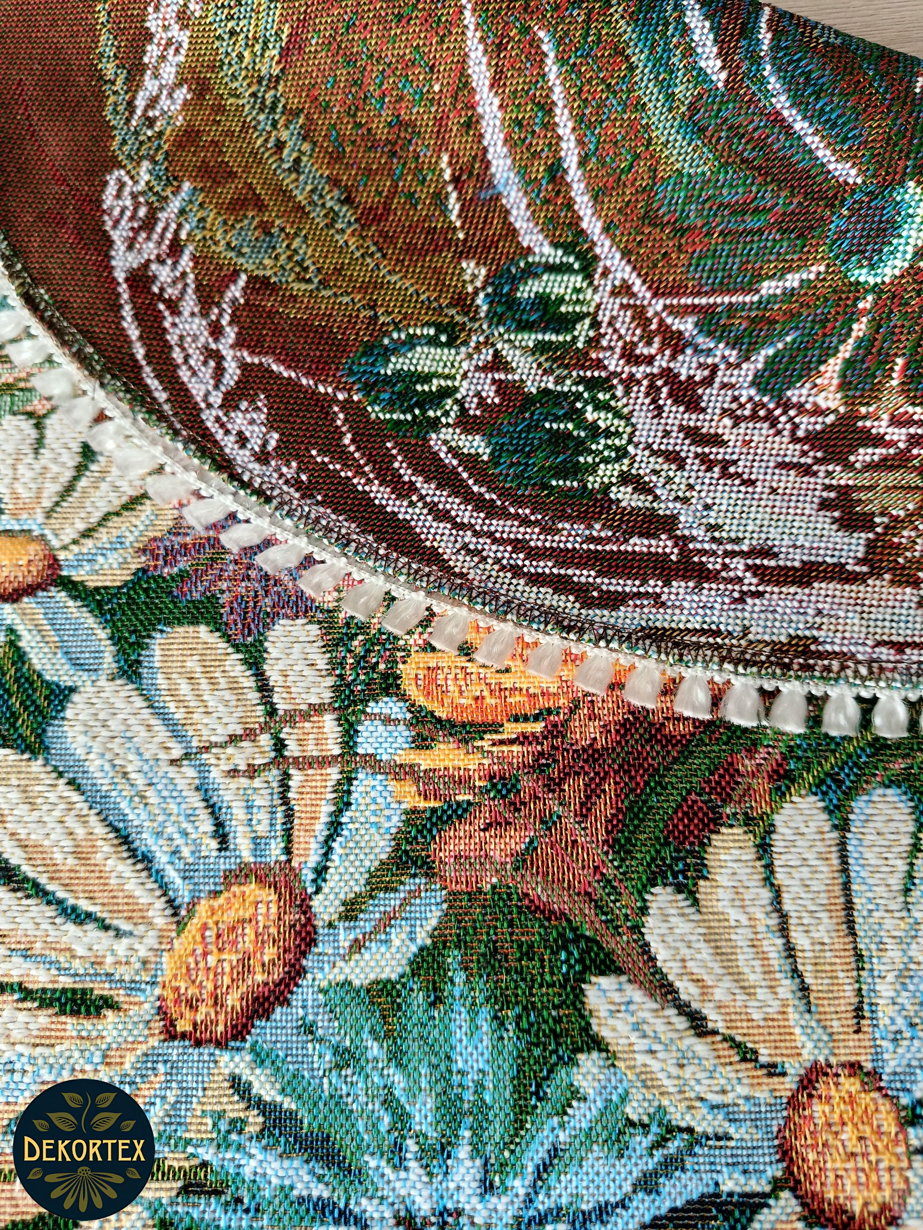 Декоративные гобеленовые салфетки это приятное и полезное украшение для сервировки стола. Салфетки могут продаваться по одной или наборами от двух до десяти штук. Форма, размер, цвет и рисунок салфеток можно выбрать по желанию покупателя. Декоративные салфетки круглой и овальной формы как правило обработаны красивой декоративной тесьмой подходящей по цвету к рисунку на ткани. Гобеленовые декоративные салфетки не только модный, красивый предмет интерьера но и полезны и практичны в использовании. Салфетки помогут предохранить поверхность мебели от повреждения. Гобеленовые салфетки устойчивы к загрязнению, хорошо стираются при температуре 30 градусов на дают усадки не линяют. Изделия из гобеленовой ткани имеют длительный срок службы и сохраняют первоначальный вид и форму.