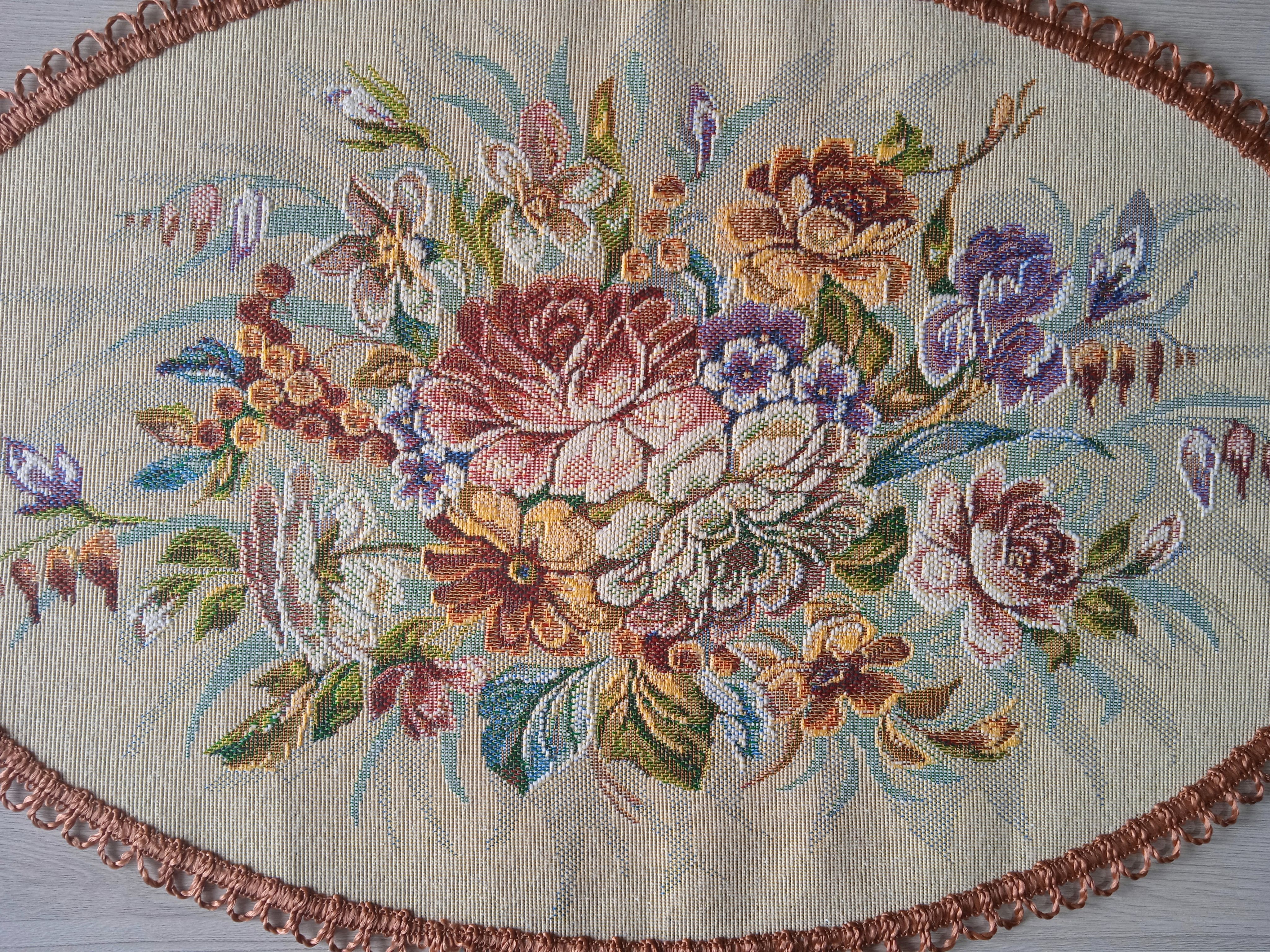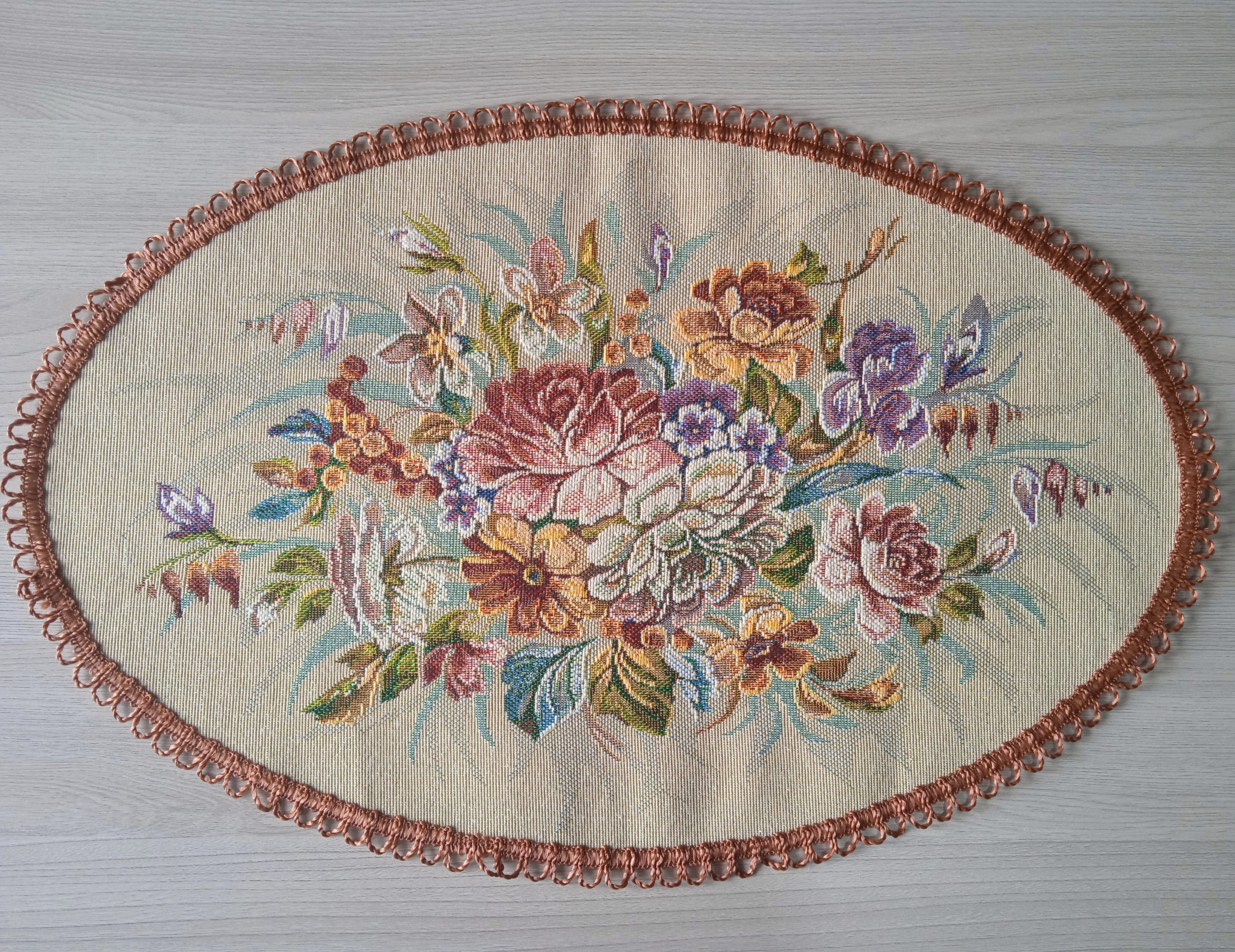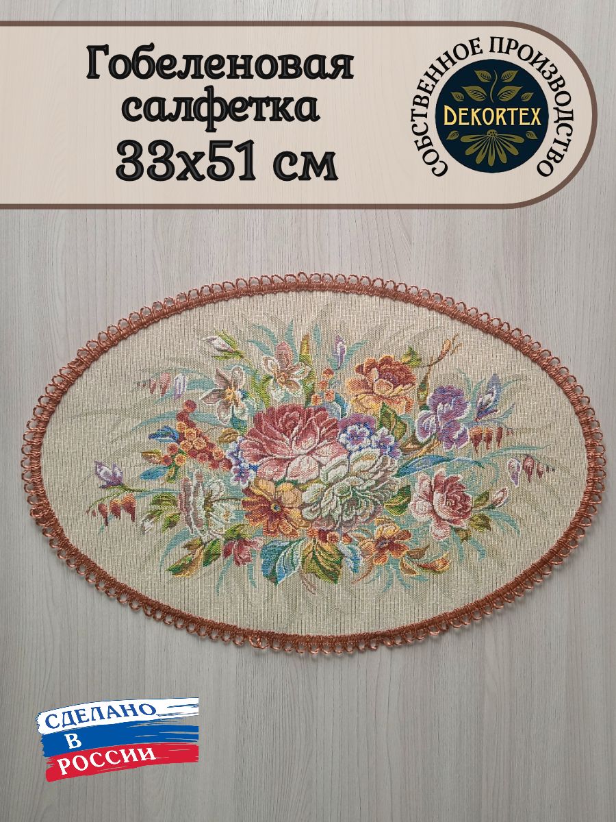 Декоративные гобеленовые салфетки это приятное и полезное украшение для сервировки стола. Салфетки могут продаваться по одной или наборами от двух до десяти штук. Форма, размер, цвет и рисунок салфеток можно выбрать по желанию покупателя. Декоративные салфетки круглой и овальной формы как правило обработаны красивой декоративной тесьмой подходящей по цвету к рисунку на ткани. Гобеленовые декоративные салфетки не только модный, красивый предмет интерьера но и полезны и практичны в использовании. Салфетки помогут предохранить поверхность мебели от повреждения. Гобеленовые салфетки устойчивы к загрязнению, хорошо стираются при температуре 30 градусов на дают усадки не линяют. Изделия из гобеленовой ткани имеют длительный срок службы и сохраняют первоначальный вид и форму.