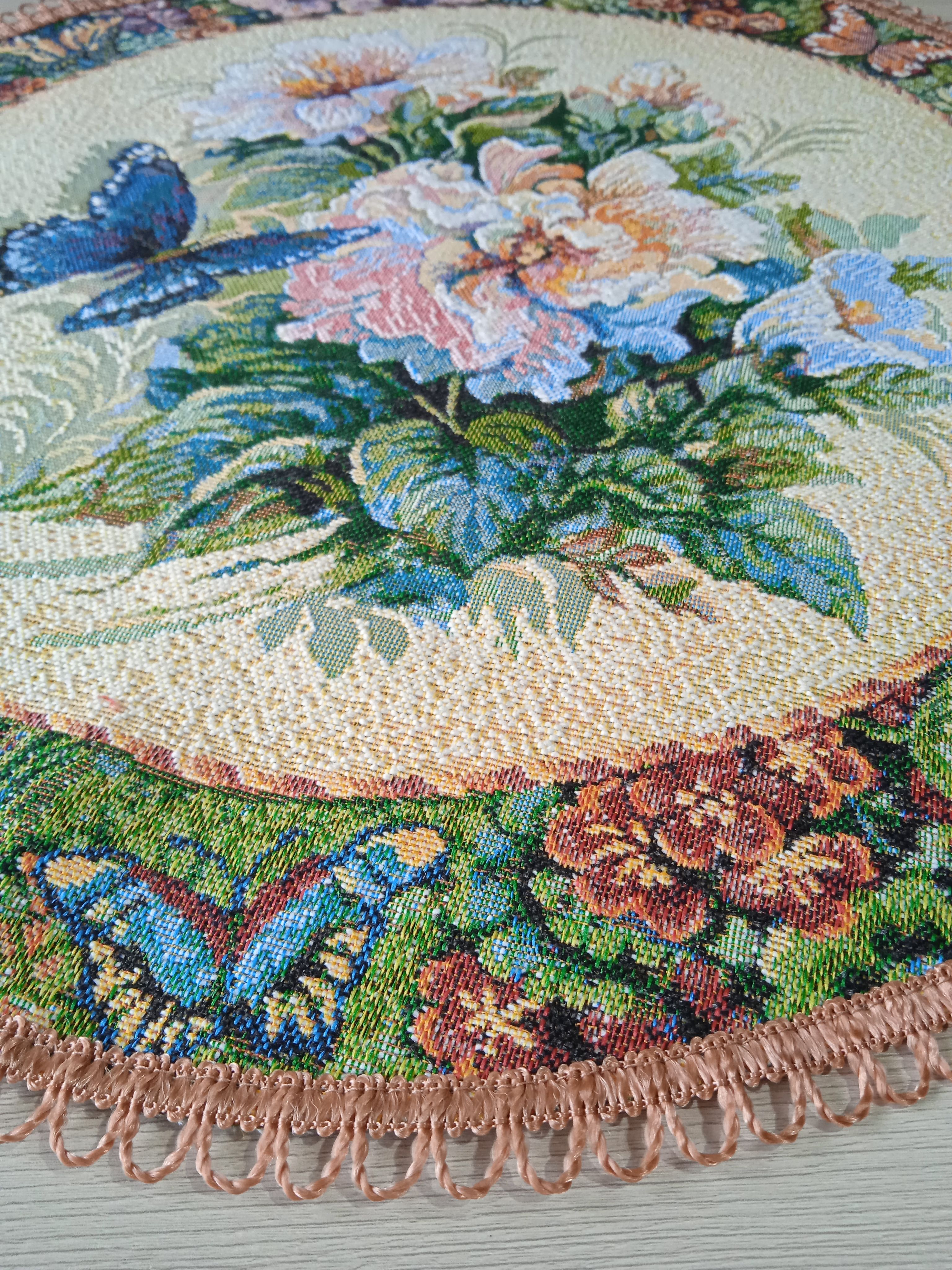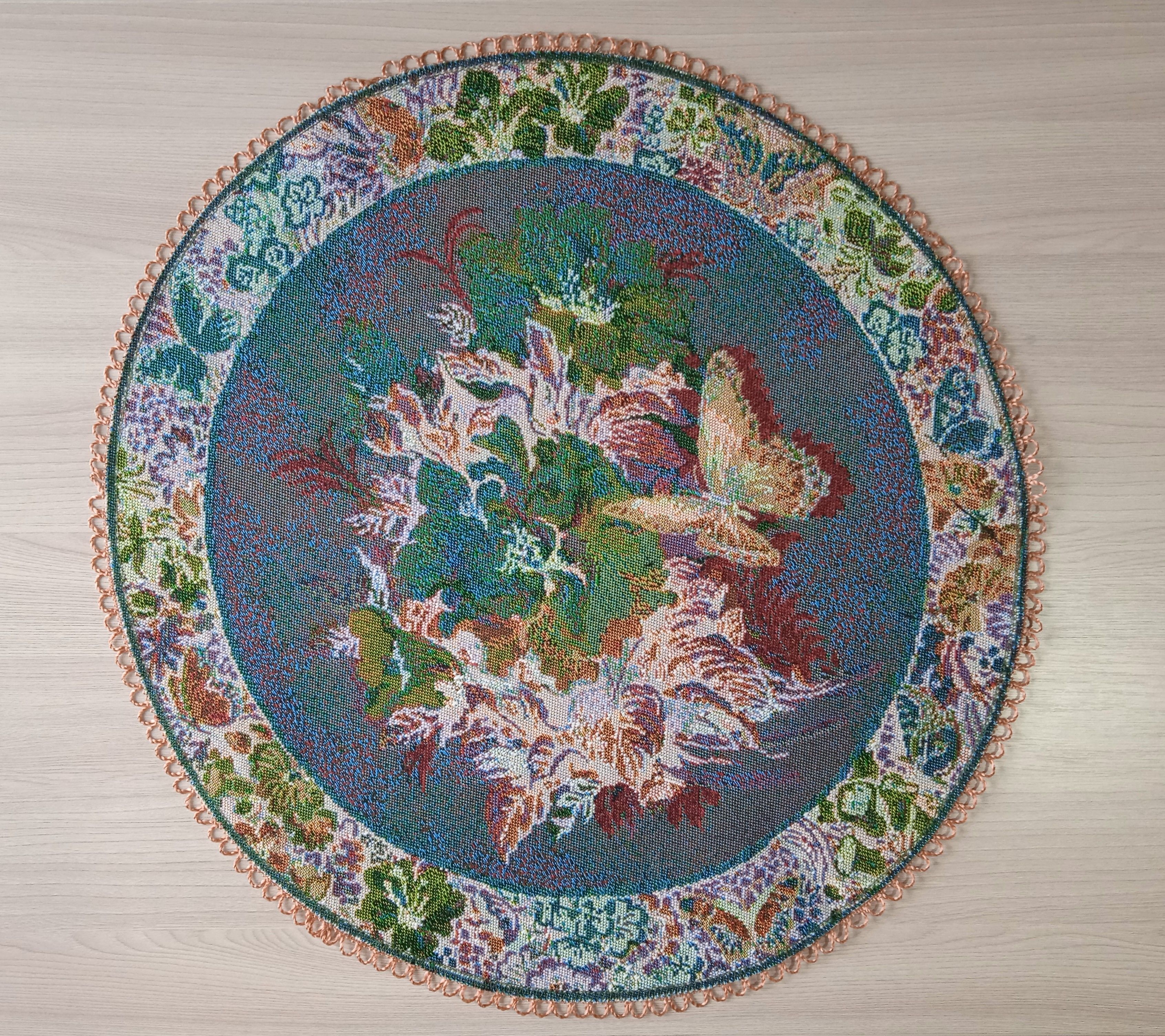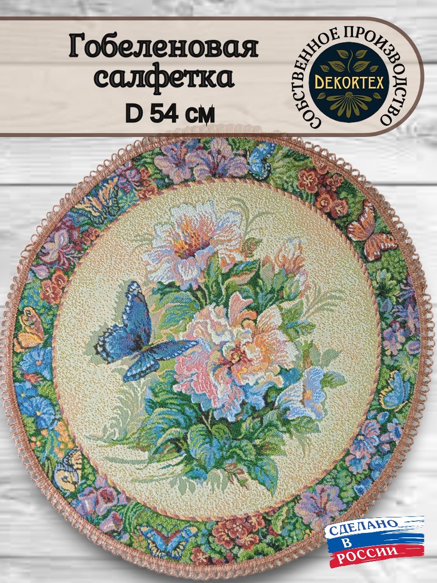 Декоративные гобеленовые салфетки это приятное и полезное украшение для сервировки стола. Салфетки могут продаваться по одной или наборами от двух до десяти штук. Форма, размер, цвет и рисунок салфеток можно выбрать по желанию покупателя. Декоративные салфетки круглой и овальной формы как правило обработаны красивой декоративной тесьмой подходящей по цвету к рисунку на ткани. Гобеленовые декоративные салфетки не только модный, красивый предмет интерьера но и полезны и практичны в использовании. Салфетки помогут предохранить поверхность мебели от повреждения. Гобеленовые салфетки устойчивы к загрязнению, хорошо стираются при температуре 30 градусов на дают усадки не линяют. Изделия из гобеленовой ткани имеют длительный срок службы и сохраняют первоначальный вид и форму.