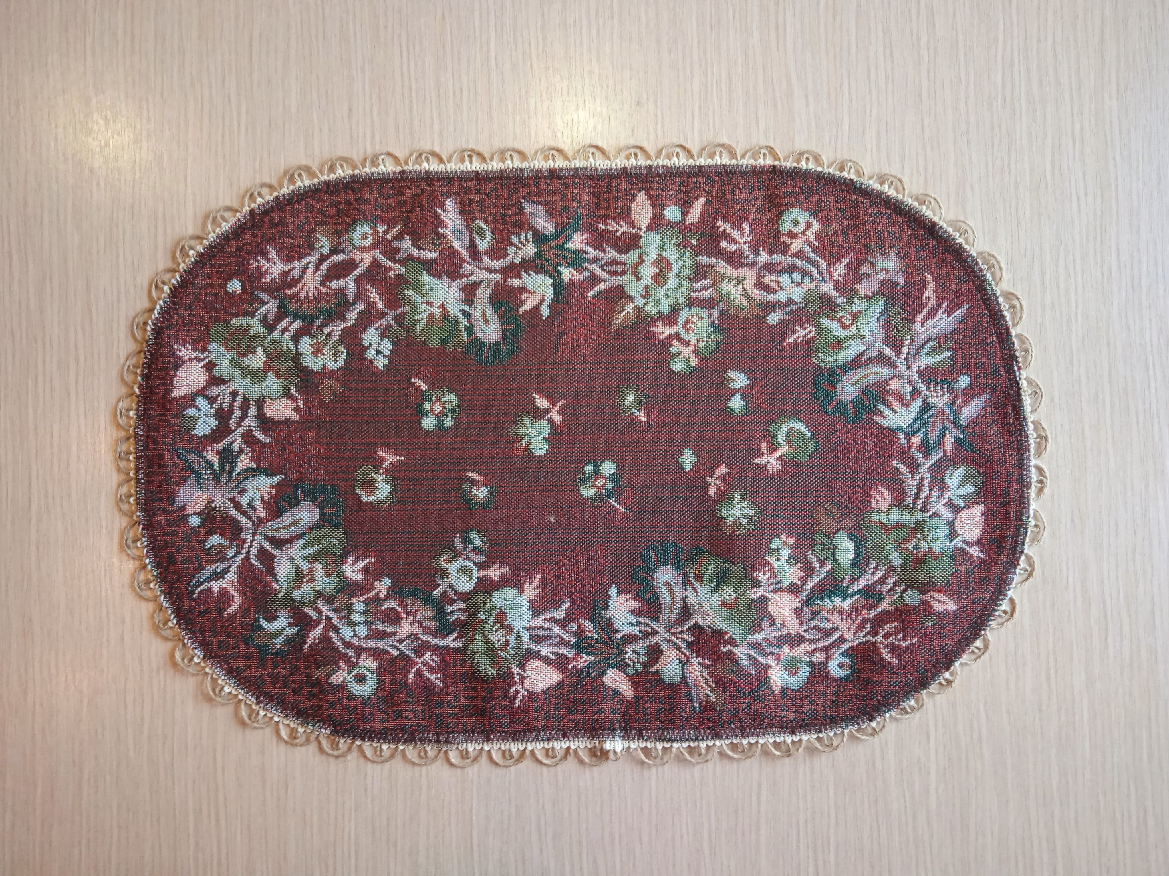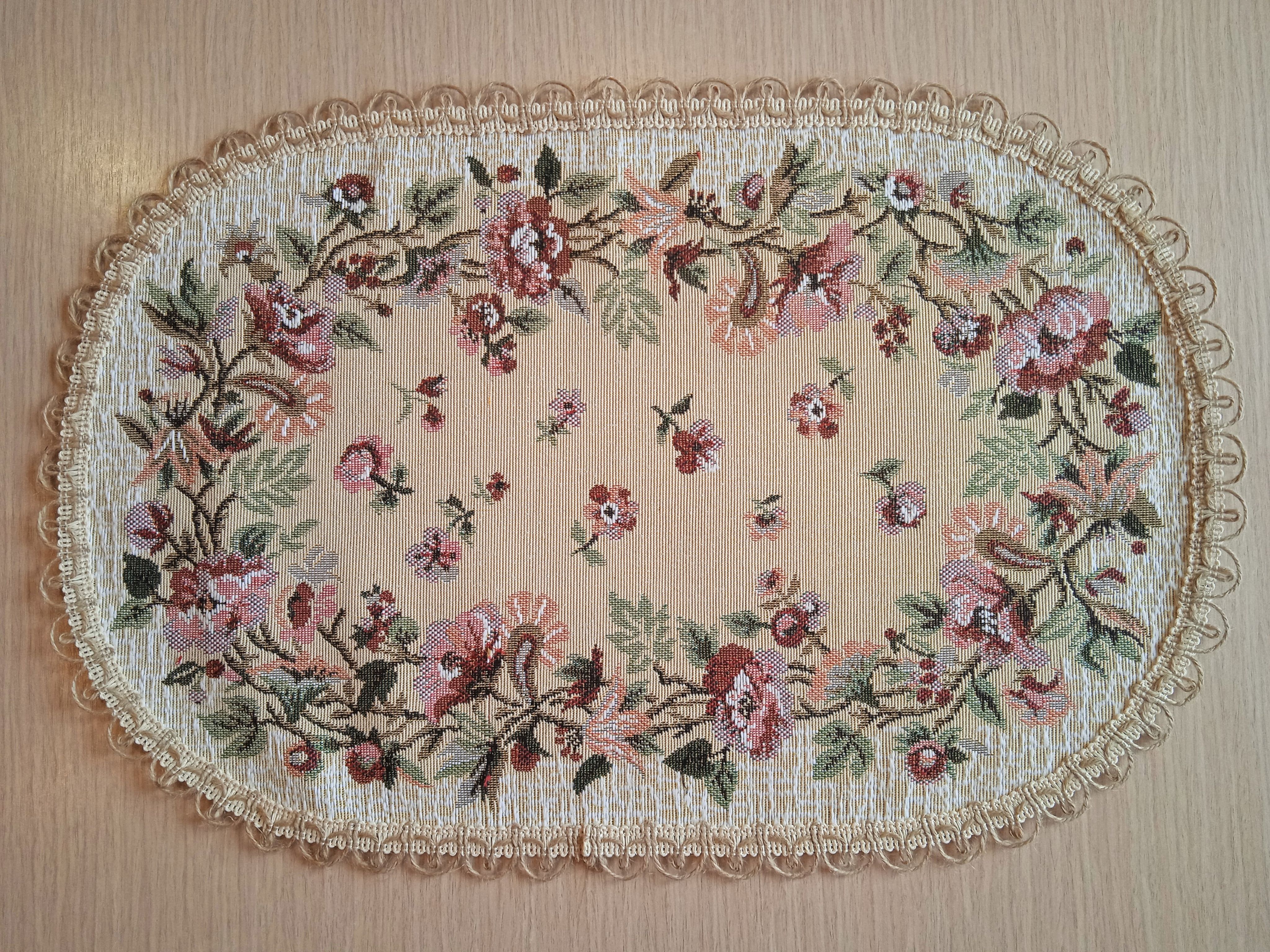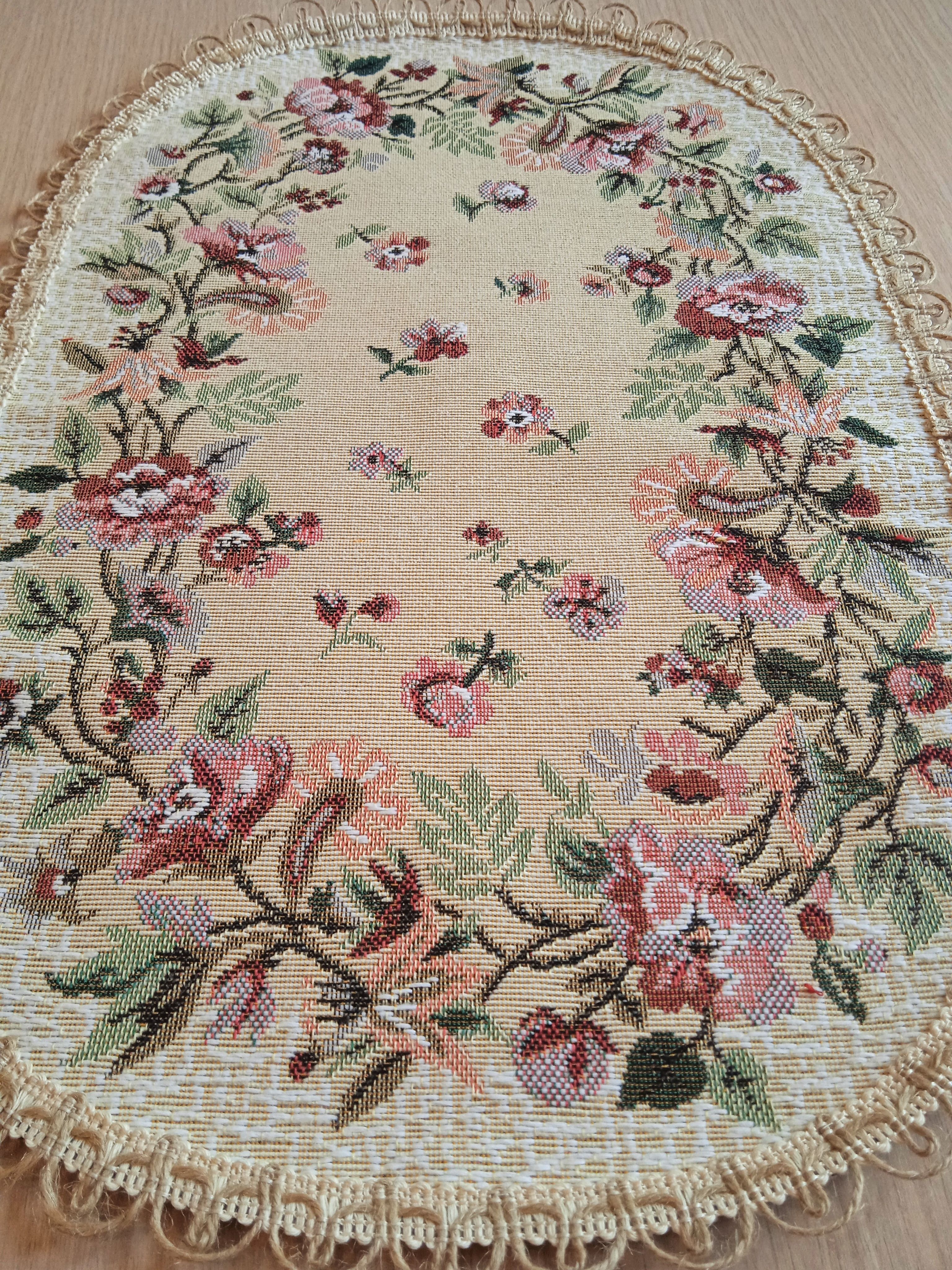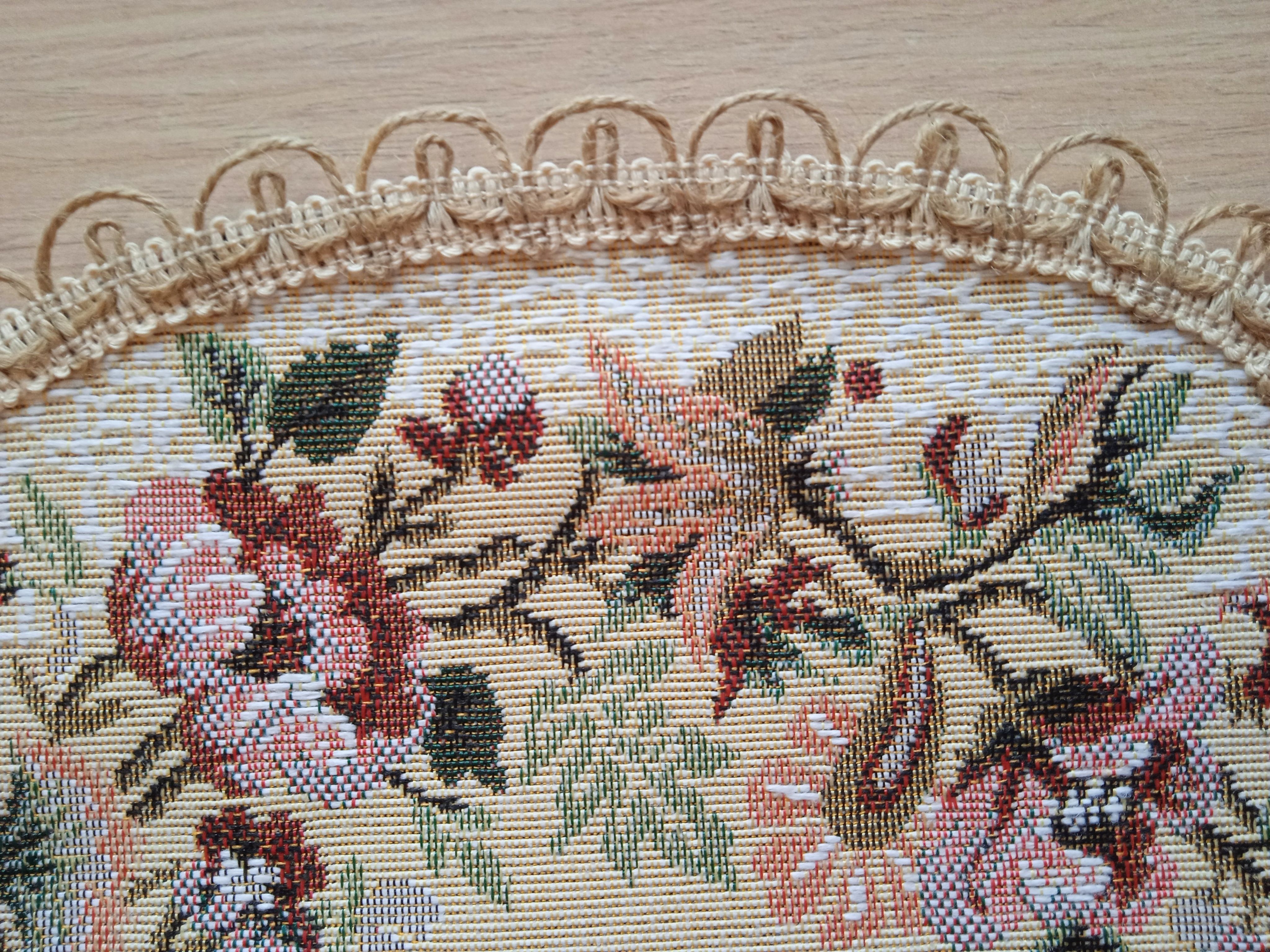 Декоративные гобеленовые салфетки это приятное и полезное украшение для сервировки стола. Салфетки могут продаваться по одной или наборами от двух до десяти штук. Форма, размер, цвет и рисунок салфеток можно выбрать по желанию покупателя. Декоративные салфетки круглой и овальной формы как правило обработаны красивой декоративной тесьмой подходящей по цвету к рисунку на ткани. Внимание! Цвет тесьмы может отличаться от варианта, представленного на фотографии. Гобеленовые декоративные салфетки не только модный, красивый предмет интерьера но и полезны и практичны в использовании. Салфетки помогут предохранить поверхность мебели от повреждения. Гобеленовые салфетки устойчивы к загрязнению, хорошо стираются при температуре 30 градусов на дают усадки не линяют. Изделия из гобеленовой ткани имеют длительный срок службы и сохраняют первоначальный вид и форму.