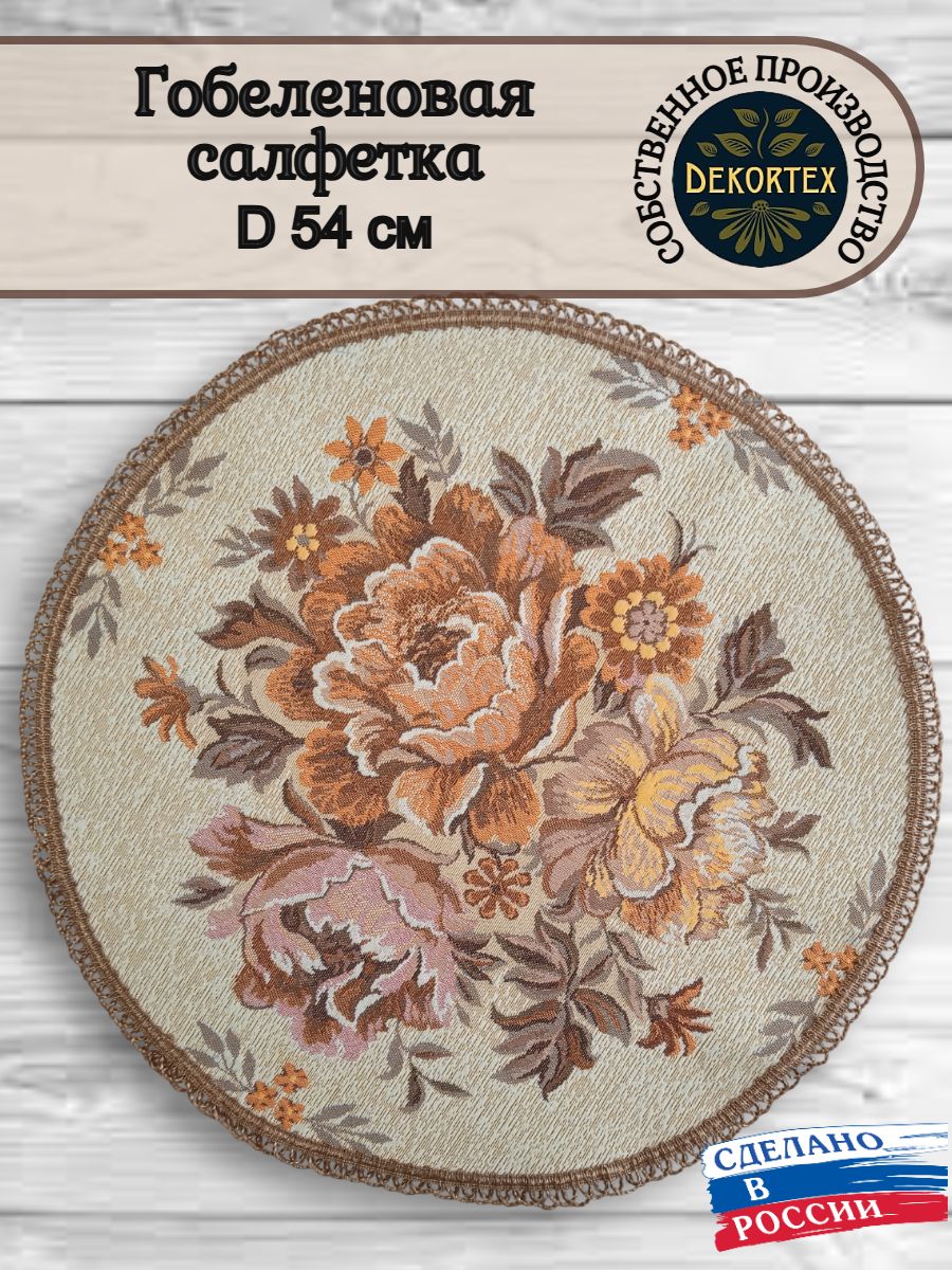 Декоративные гобеленовые салфетки это приятное и полезное украшение для сервировки стола. Салфетки могут продаваться по одной или наборами от двух до десяти штук. Форма, размер, цвет и рисунок салфеток можно выбрать по желанию покупателя. Декоративные салфетки круглой и овальной формы как правило обработаны красивой декоративной тесьмой подходящей по цвету к рисунку на ткани. Гобеленовые декоративные салфетки не только модный, красивый предмет интерьера но и полезны и практичны в использовании. Салфетки помогут предохранить поверхность мебели от повреждения. Гобеленовые салфетки устойчивы к загрязнению, хорошо стираются при температуре 30 градусов на дают усадки не линяют. Изделия из гобеленовой ткани имеют длительный срок службы и сохраняют первоначальный вид и форму.