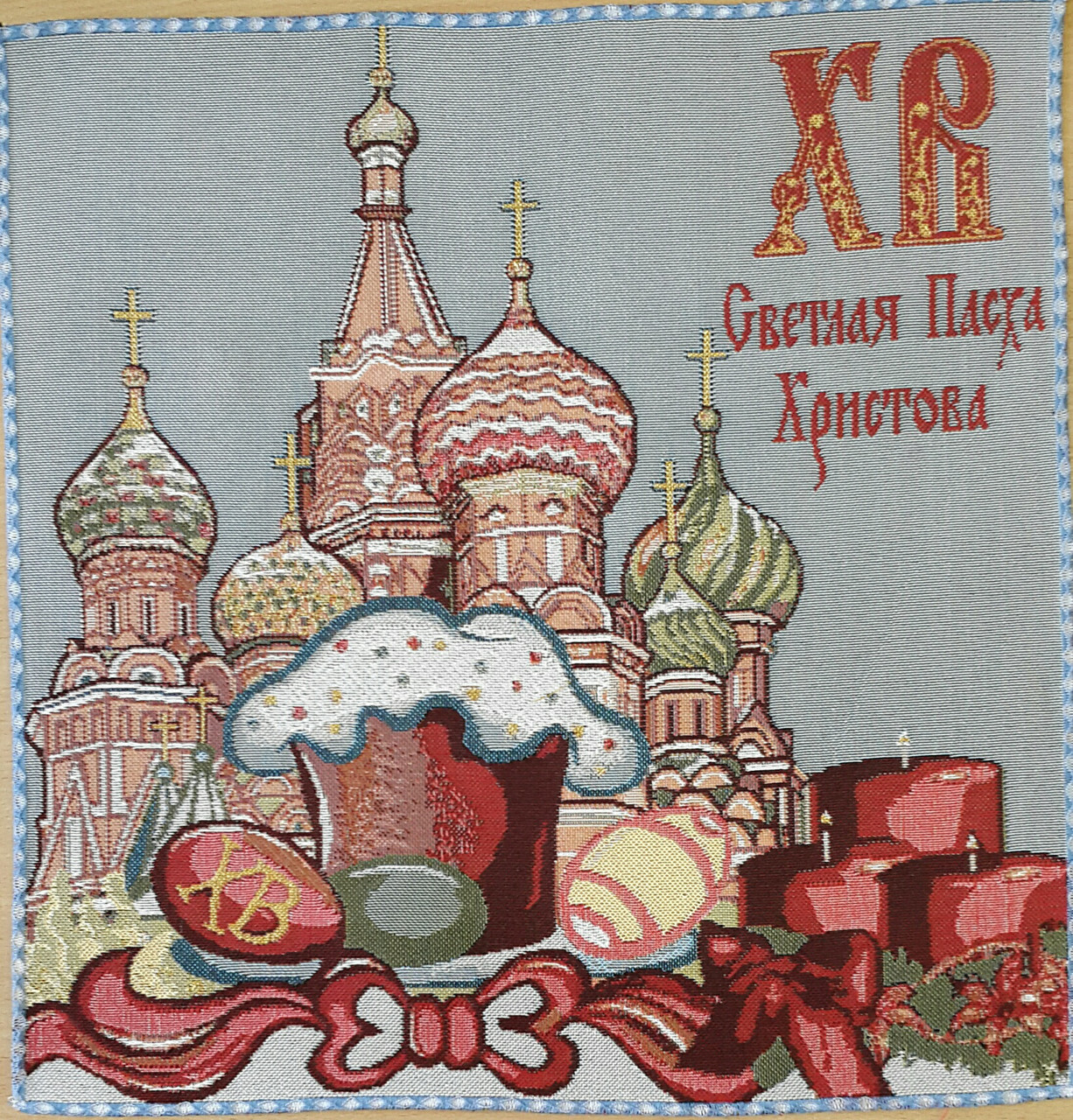 Салфетка декоративная из гобеленовой ткани с рисунком Пасхальной тематики. Нежные, светлые тона рисунка совпадают с общим настроем большого праздника. Салфетка с пасхальным рисунком прекрасное украшение праздничного стола. Подчеркивает и дополняет значимость и настроение Светлого Воскресения. Может стать приятным подарком для Ваших родных и близких. Такие не дорогие но очень приятные предметы интерьера позволяют нам добавить в привычный быт атмосферу праздника.