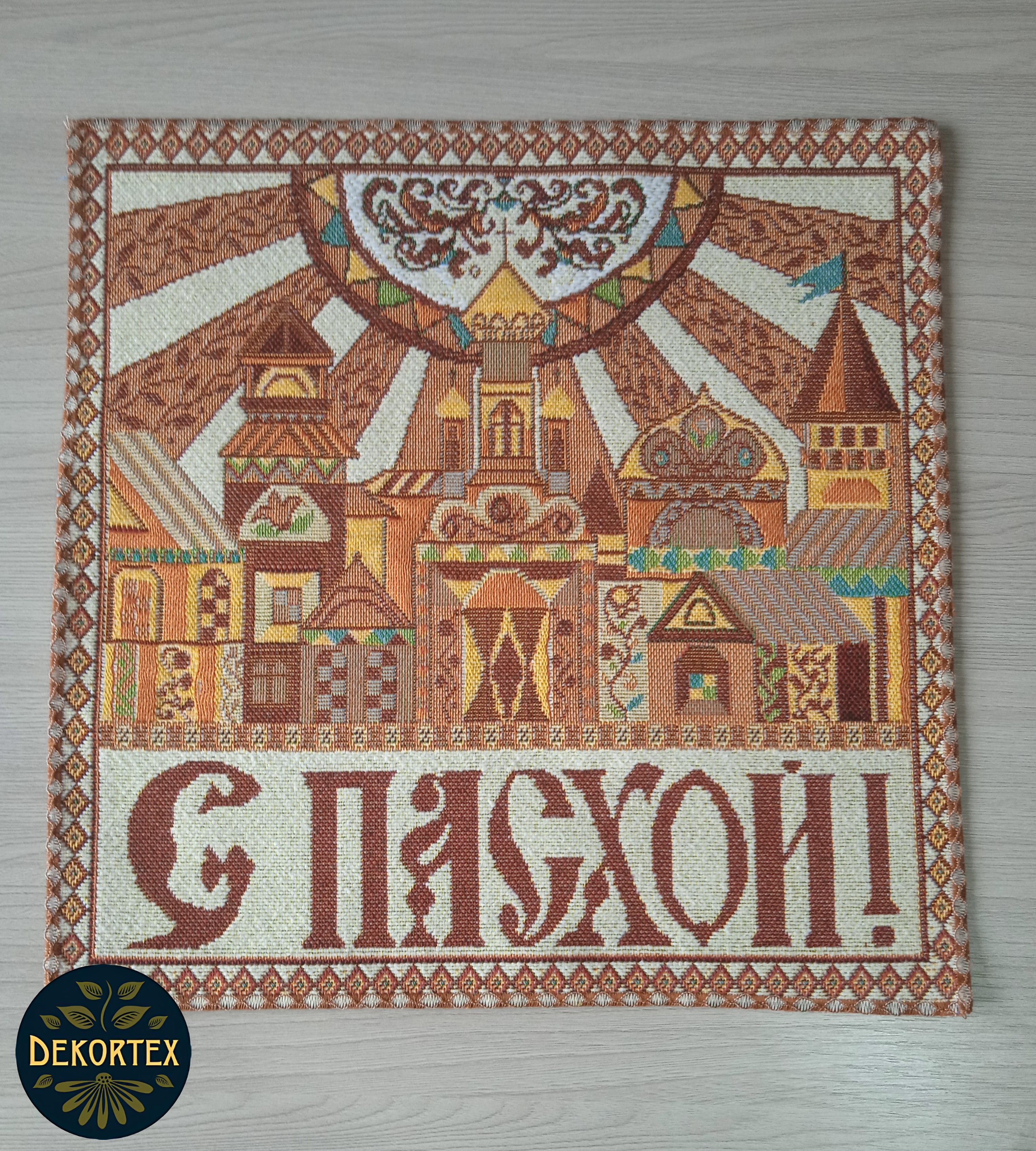 Салфетка декоративная из гобеленовой ткани с рисунком Пасхальной тематики. Нежные, светлые тона рисунка совпадают с общим настроем большого праздника. Салфетка с пасхальным рисунком прекрасное украшение праздничного стола. Подчеркивает и дополняет значимость и настроение Светлого Воскресения. Может стать приятным подарком для Ваших родных и близких. Такие не дорогие но очень приятные предметы интерьера позволяют нам добавить в привычный быт атмосферу праздника.