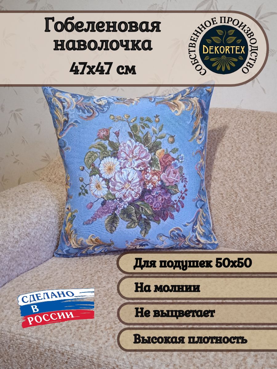 Гобеленовая наволочка для декоративной подушки. Размер наволочки: 47x47см. производство Россия. Изделие собственного производства сшито из отечественной жаккардовой ткани. Задняя часть выполнена из мебельной рогожки так же Российского производства. Все ткани используемые для производства декоративной наволочки производятся с соблюдением ТУ и ГОСТ РФ. Собственное швейное производство позволяет контролировать качество продукции на всех этапах до поступления на склад и предлагать покупателям товары высокого качества по выгодным ценам. Состав ткани 100% полиэстер. Плотность гобелена 380 г/кв.м. Наволочка подходит для подушек размером 50х50 см. Продается без подушки-наполнителя. Подушку-наполнитель так же можно купит у нас. Размер наволочки может отличаться от заявленного +/- 2 см. Допускается деликатная машинная стирка при температуре 30 градусов. Гладить при средней температуре.