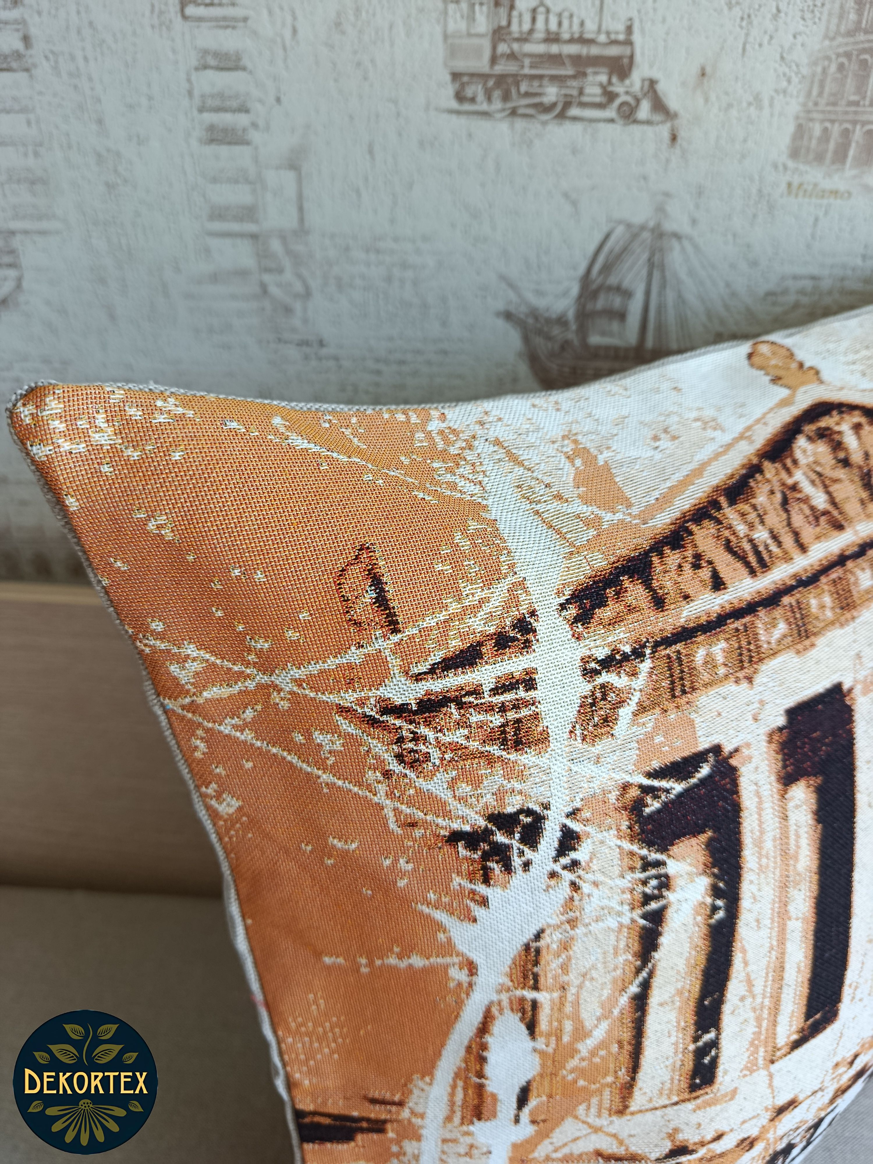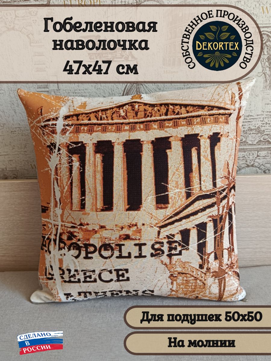 Гобеленовая наволочка для декоративной подушки. Размер наволочки: 47x47см. производство Россия. Изделие собственного производства сшито из отечественной жаккардовой ткани. Задняя часть выполнена из мебельной рогожки так же Российского производства. Все ткани используемые для производства декоративной наволочки производятся с соблюдением ТУ и ГОСТ РФ. Собственное швейное производство позволяет контролировать качество продукции на всех этапах до поступления на склад и предлагать покупателям товары высокого качества по выгодным ценам. Состав ткани 100% полиэстер. Плотность гобелена 380 г/кв.м. Наволочка подходит для подушек размером 50х50 см. Продается без подушки-наполнителя. Подушку-наполнитель так же можно купит у нас. Размер наволочки может отличаться от заявленного +/- 2 см. Допускается деликатная машинная стирка при температуре 30 градусов. Гладить при средней температуре.
