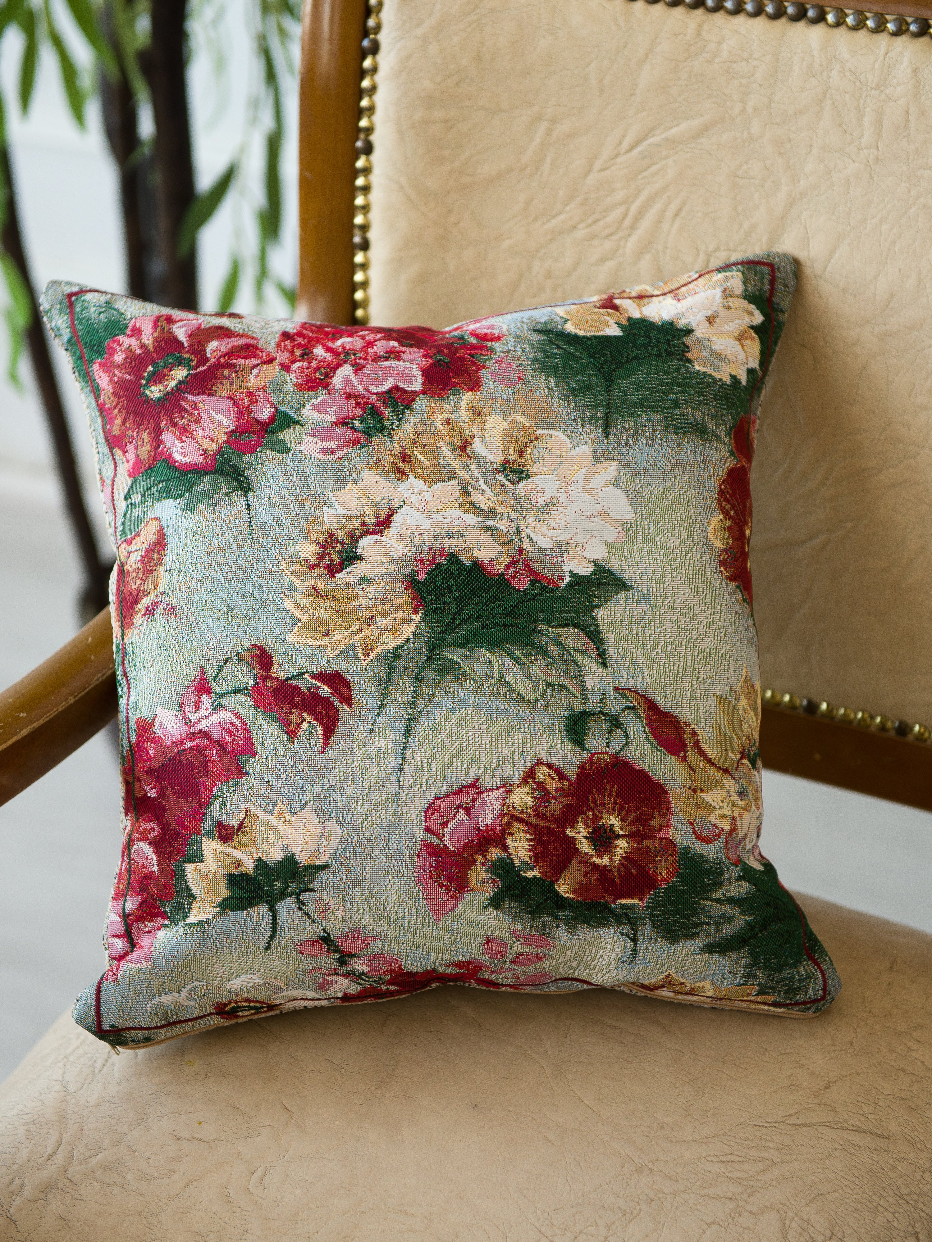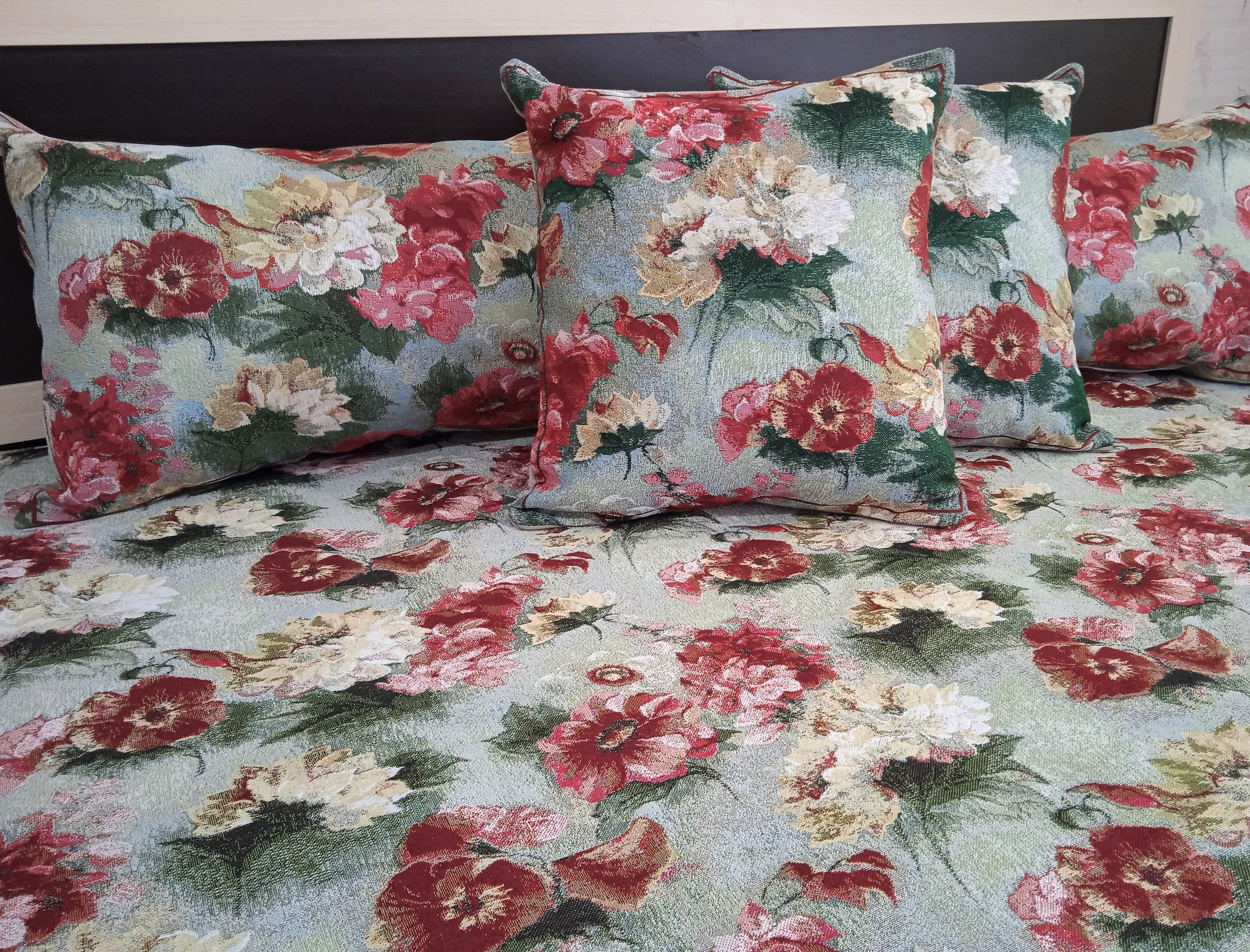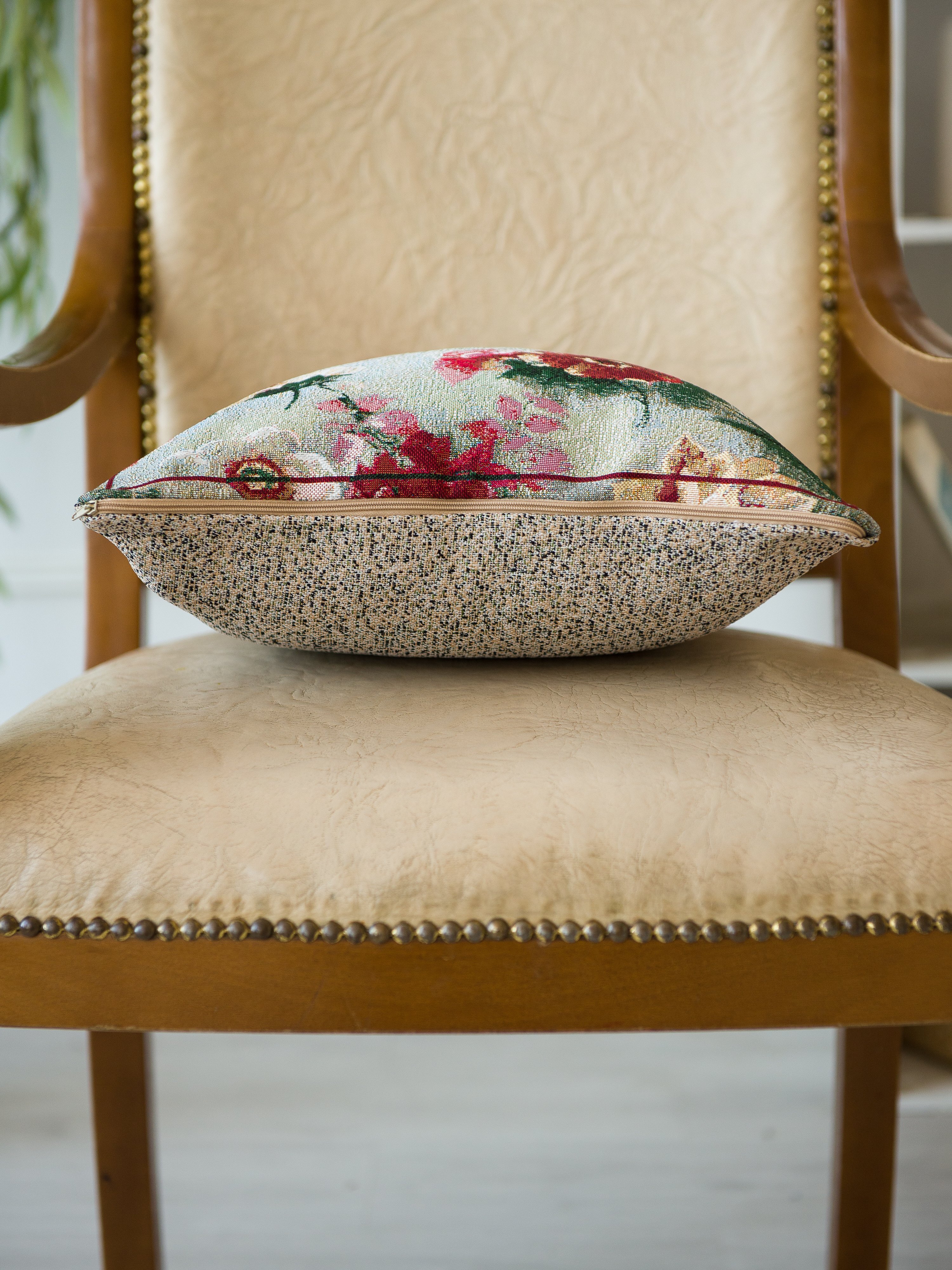 Гобеленовая наволочка для декоративной подушки. Размер наволочки: 38x38см. производство Россия. Изделие собственного производства сшито из отечественной жаккардовой ткани. Задняя часть выполнена из мебельной рогожки так же Российского производства. Все ткани используемые для производства декоративной наволочки производятся с соблюдением ТУ и ГОСТ Р.Ф. Собственное швейное производство позволяет контролировать качество продукции на всех этапах до поступления на склад и предлагать покупателям товары высокого качества по выгодным ценам. Состав ткани 100% полиэстер. Плотность гобелена 380 г/кв.м. Наволочка подходит для подушек размером от 37 до 40 см. Продается без подушки-наполнителя. Подушку-наполнитель так же можно купит у нас. Размер наволочки может отличаться от заявленного +/- 2 см. Допускается деликатная машинная стирка при температуре 30 градусов. Гладить при средней температуре