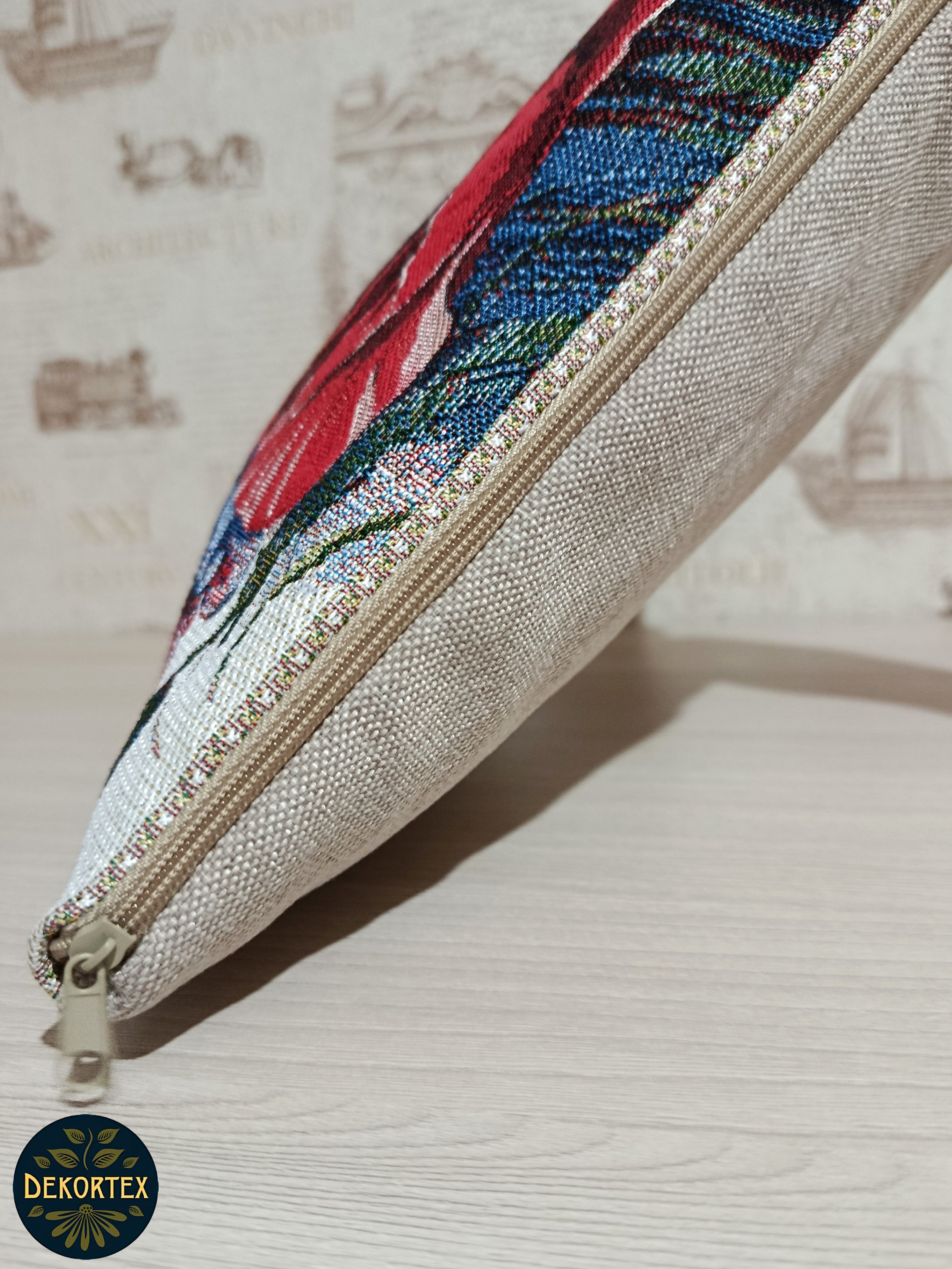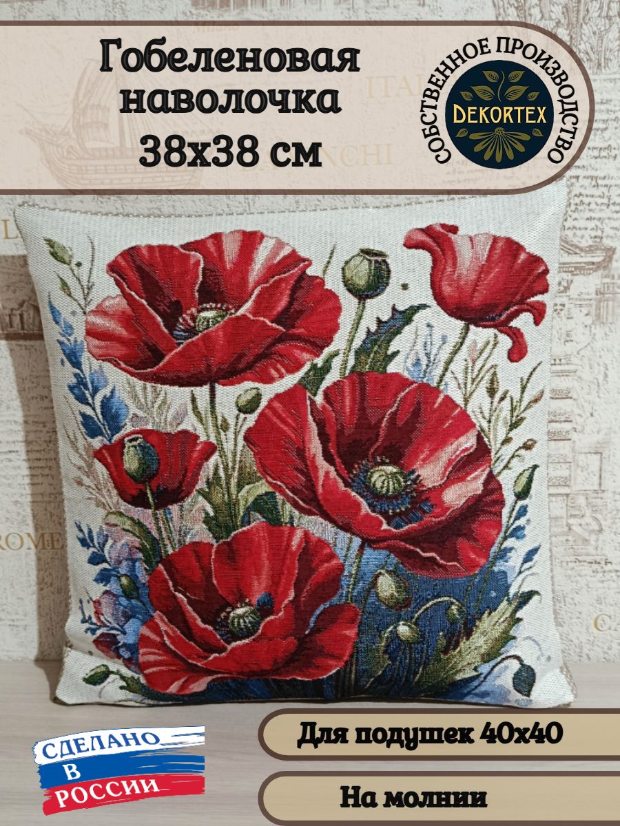 Гобеленовая наволочка для декоративной подушки. Размер наволочки: 38x38см. производство Россия. Изделие собственного производства сшито из отечественной жаккардовой ткани. Задняя часть выполнена из мебельной рогожки так же Российского производства. Все ткани используемые для производства декоративной наволочки производятся с соблюдением ТУ и ГОСТ Р.Ф. Собственное швейное производство позволяет контролировать качество продукции на всех этапах до поступления на склад и предлагать покупателям товары высокого качества по выгодным ценам. Состав ткани 100% полиэстер. Плотность гобелена 380 г/кв.м. Наволочка подходит для подушек размером от 36 до 40 см. Продается без подушки-наполнителя. Подушку-наполнитель так же можно купит у нас. Размер наволочки может отличаться от заявленного +/- 2 см. Допускается деликатная машинная стирка при температуре 30 градусов. Гладить при средней температуре.