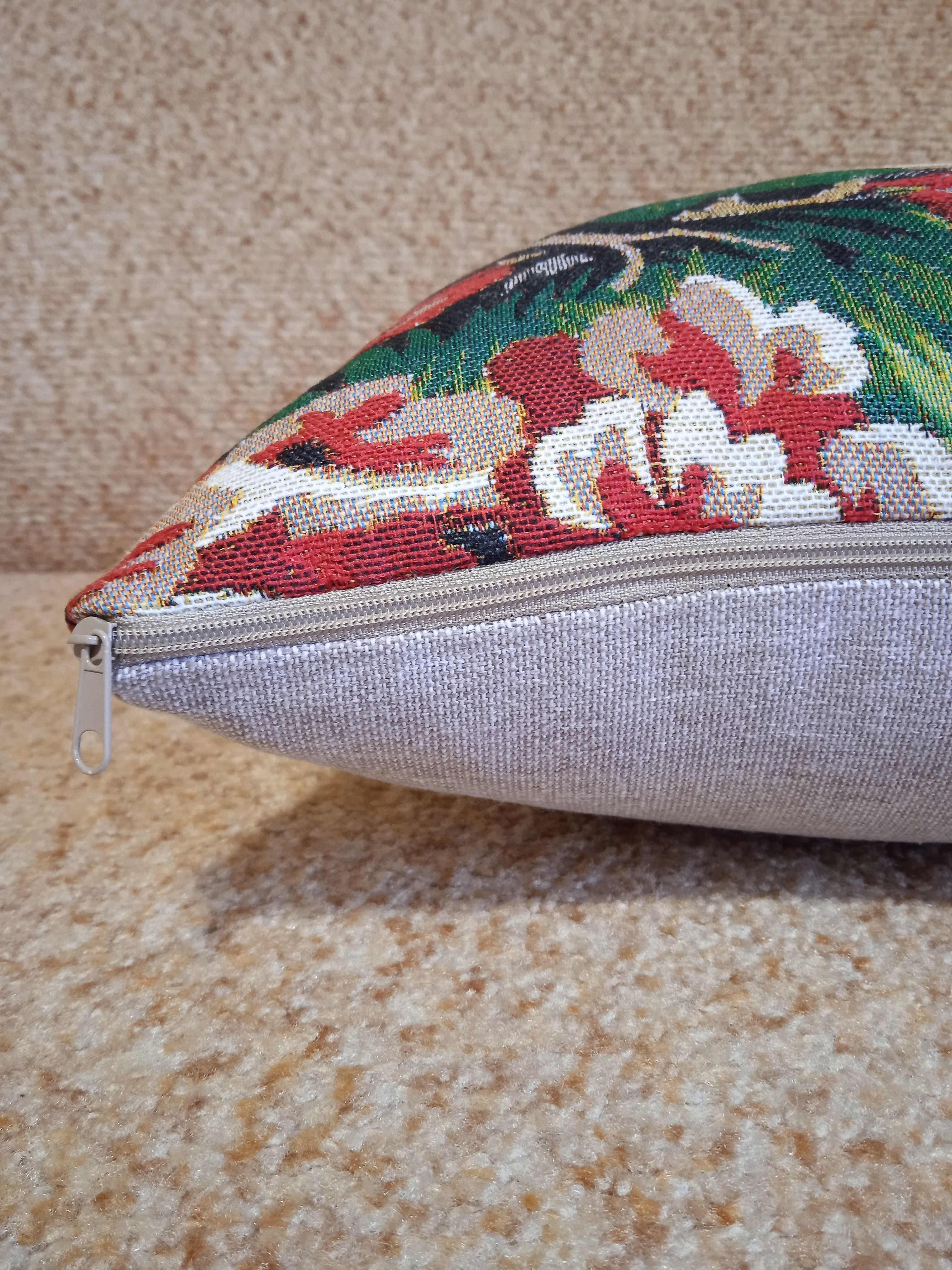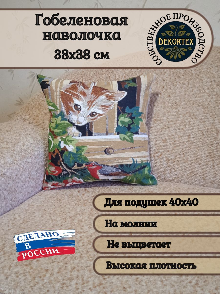 Гобеленовая наволочка для декоративной подушки. Размер наволочки: 38x38см. производство Россия. Изделие собственного производства сшито из отечественной жаккардовой ткани. Задняя часть выполнена из мебельной рогожки так же Российского производства. Все ткани используемые для производства декоративной наволочки производятся с соблюдением ТУ и ГОСТ РФ. Собственное швейное производство позволяет контролировать качество продукции на всех этапах до поступления на склад и предлагать покупателям товары высокого качества по выгодным ценам. Состав ткани 100% полиэстер. Плотность гобелена 380 г/кв.м. Наволочка подходит для подушек размером 40х40 см. Продается без подушки-наполнителя. Подушку-наполнитель так же можно купит у нас. Размер наволочки может отличаться от заявленного +/- 2 см. Допускается деликатная машинная стирка при температуре 30 градусов. Гладить при средней температуре.