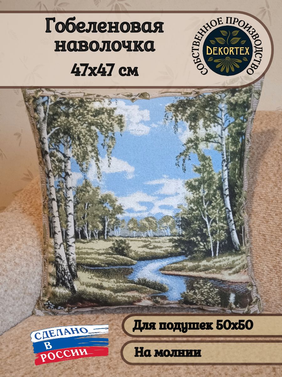 Гобеленовая наволочка для декоративной подушки. Размер наволочки: 47x47см. производство Россия. Изделие собственного производства сшито из отечественной жаккардовой ткани. Задняя часть выполнена из мебельной рогожки так же Российского производства. Все ткани используемые для производства декоративной наволочки производятся с соблюдением ТУ и ГОСТ Р.Ф. Собственное швейное производство позволяет контролировать качество продукции на всех этапах до поступления на склад и предлагать покупателям товары высокого качества по выгодным ценам. Состав ткани 100% полиэстер. Плотность гобелена 380 г/кв.м. Наволочка подходит для подушек размером 50х50 см. Продается без подушки-наполнителя. Подушку-наполнитель так же можно купит у нас. Размер наволочки может отличаться от заявленного +/- 2 см. Допускается деликатная машинная стирка при температуре 30 градусов. Гладить при средней температуре.
