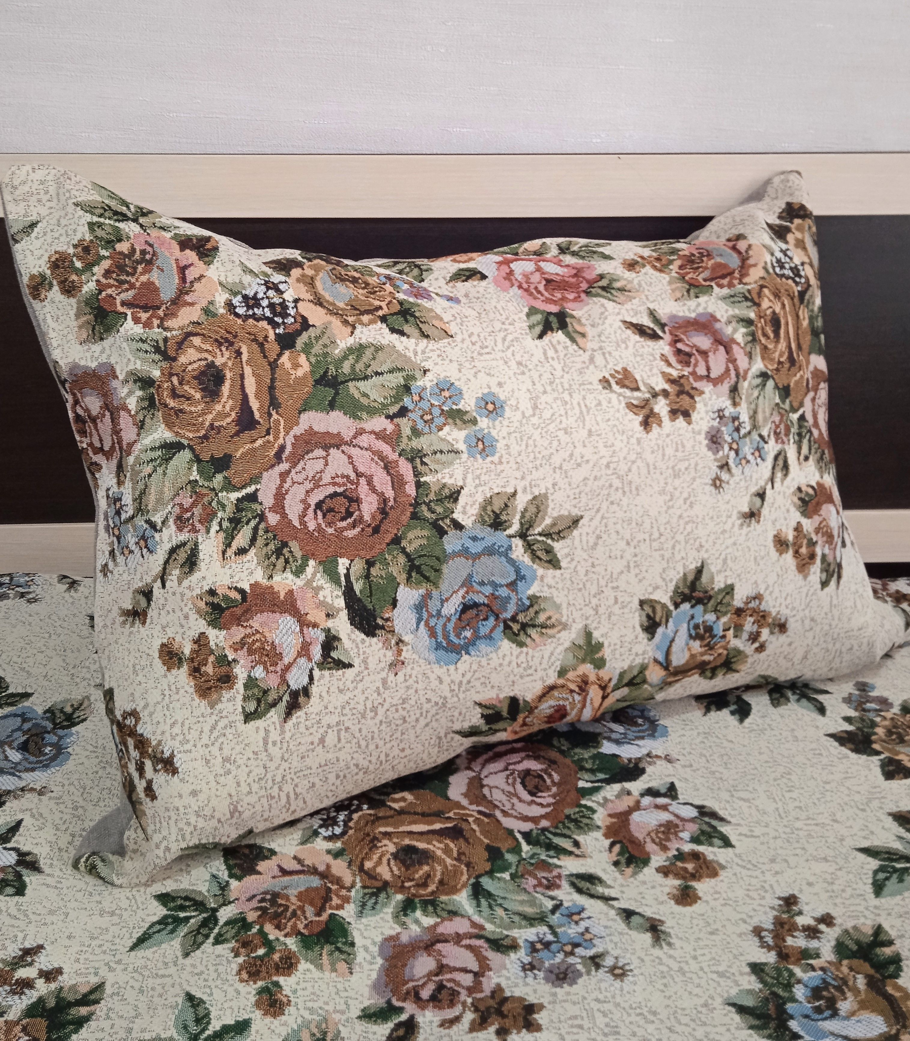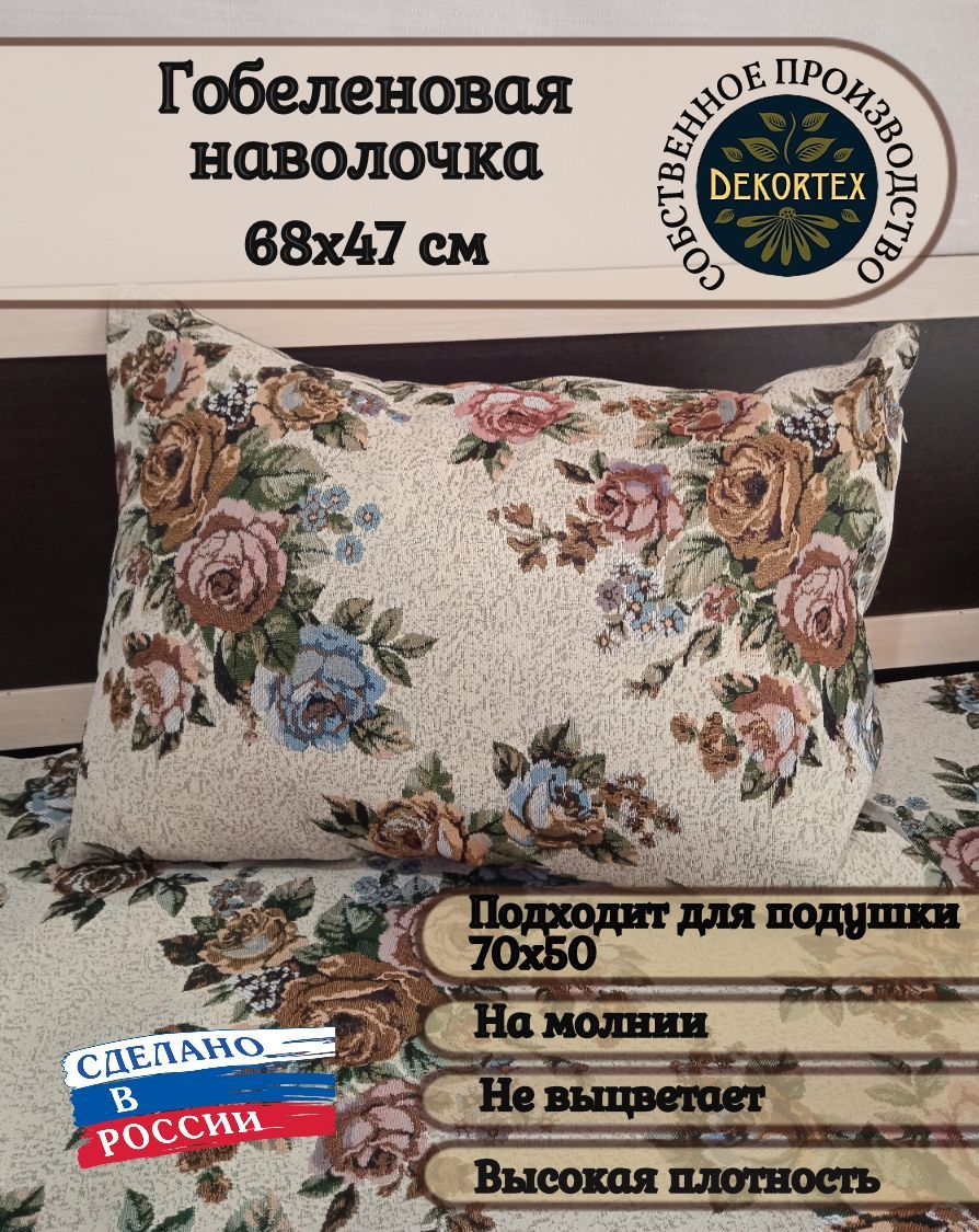 Гобеленовый чехол для декоративной подушки. Размер чехла: 68x47 см. производство Россия. Изделие собственного производства сшито из отечественной жаккардовой ткани. Задняя часть выполнена из мебельной рогожки так же Российского производства. Все ткани используемые для производства декоративного чехла производятся с соблюдением ТУ и ГОСТ Р.Ф. Собственное швейное производство позволяет контролировать качество продукции на всех этапах до поступления на склад и предлагать покупателям товары высокого качества по выгодным ценам. Состав ткани 100% полиэстер. Плотность гобелена 380 г/кв.м. Продается без подушки-наполнителя. Подушку-наполнитель так же можно купить у нас. Размер чехла может отличаться от заявленного +/- 2 см. Допускается деликатная машинная стирка при температуре 30 градусов. Гладить при средней температуре.